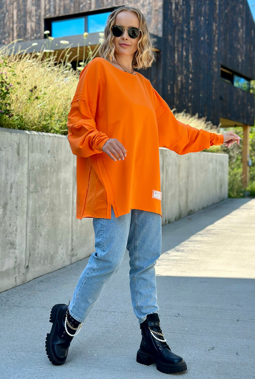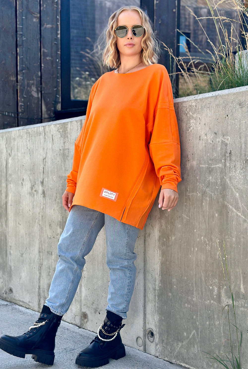 Oversizowa bluza o minimalistycznym designie. Model o suwowym wykończeniu, podsiada delikatne rozcięcia na bokach. Produkt wykonany został z wysokiej jakości materiału, dostępny jest w kilku wariantach kolorystycznych.