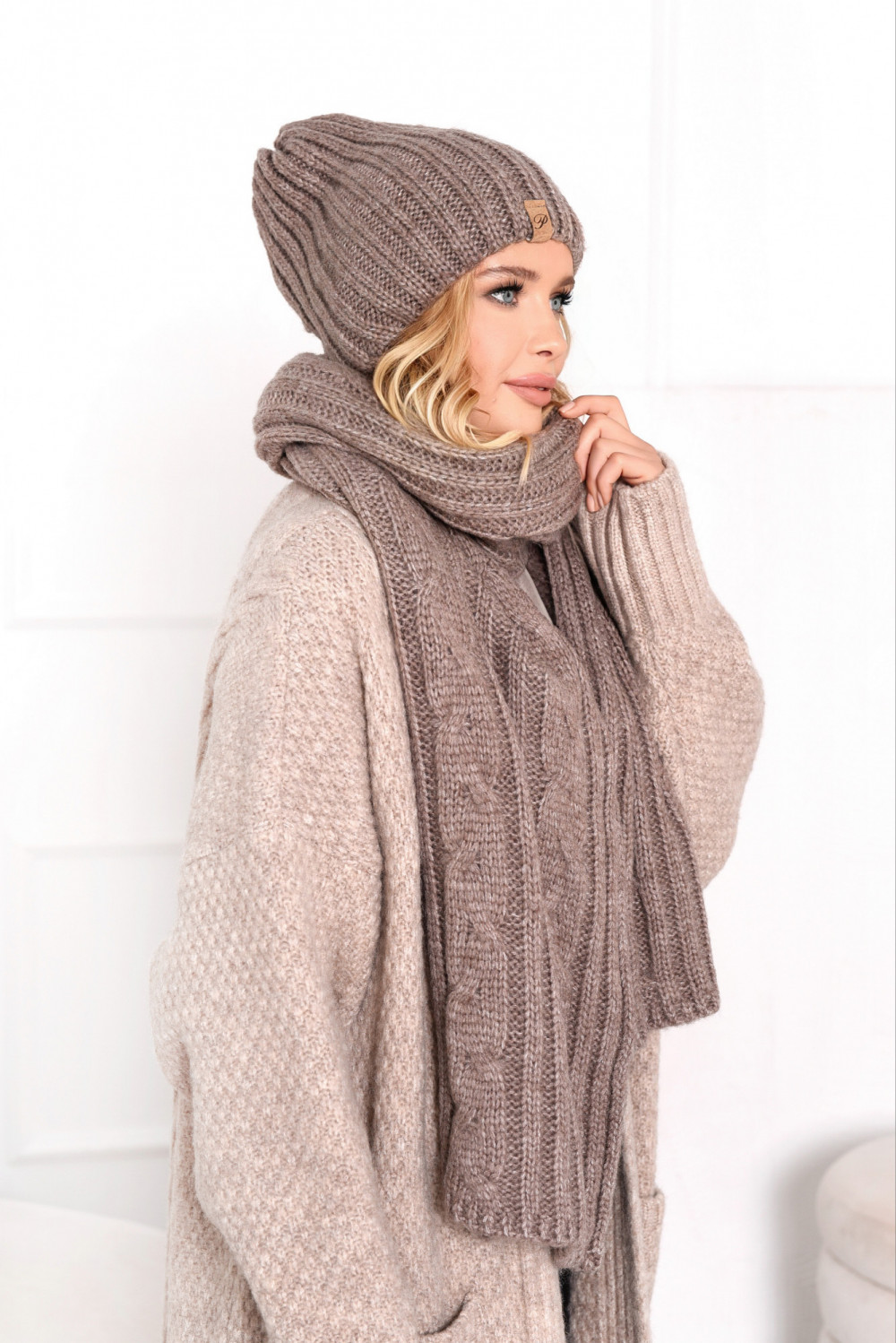 Komplet Cosy Czapka + Szal Kakao