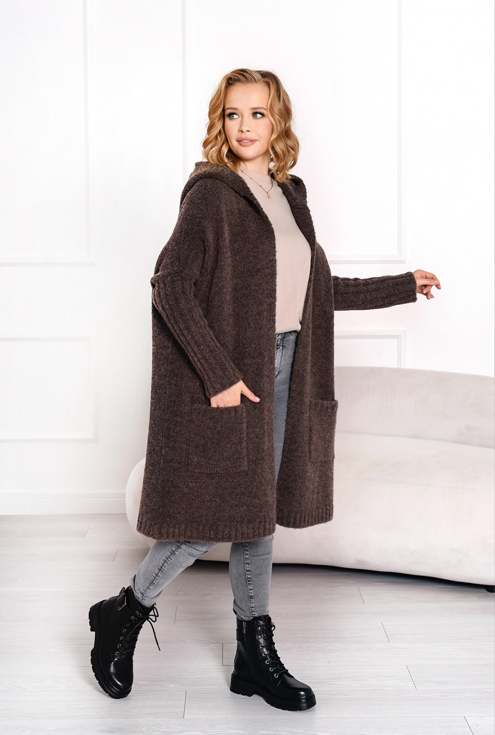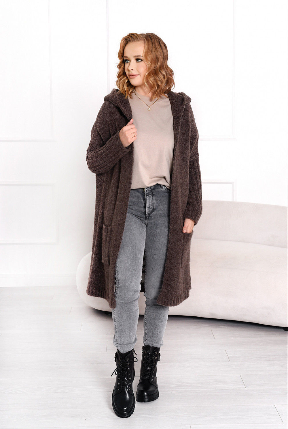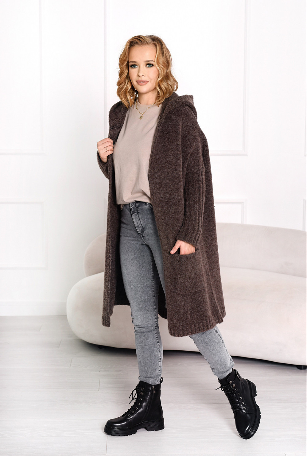Kardigan z napisem Simply Latte