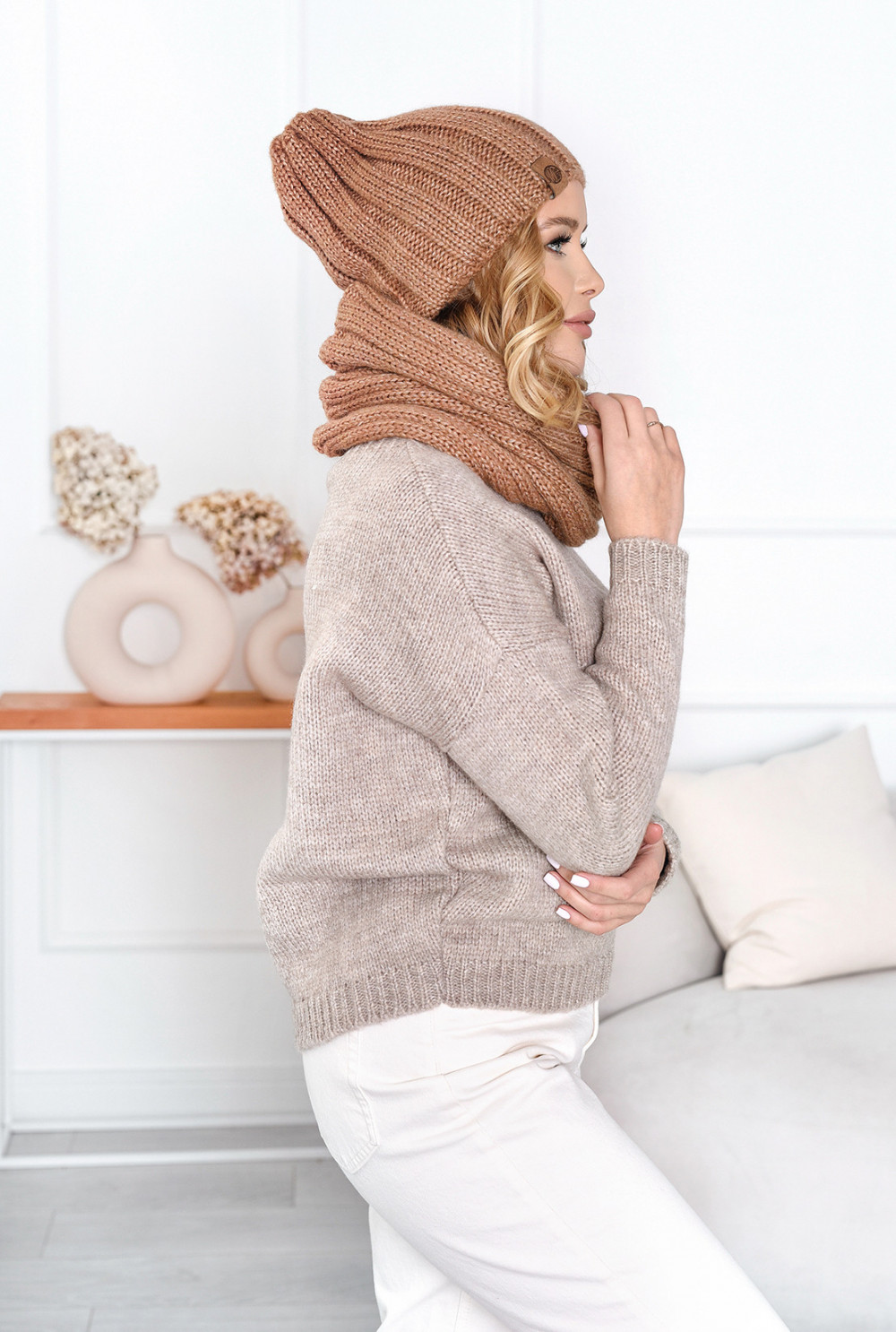 Miękki komplet wykonany z niezwykle przyjemnego w dotyku materiału to świetny dodatek do looków na zimne dni. Składa się z czapki i komina. Produkt dostępny jest w wielu wariantach kolorystycznych!