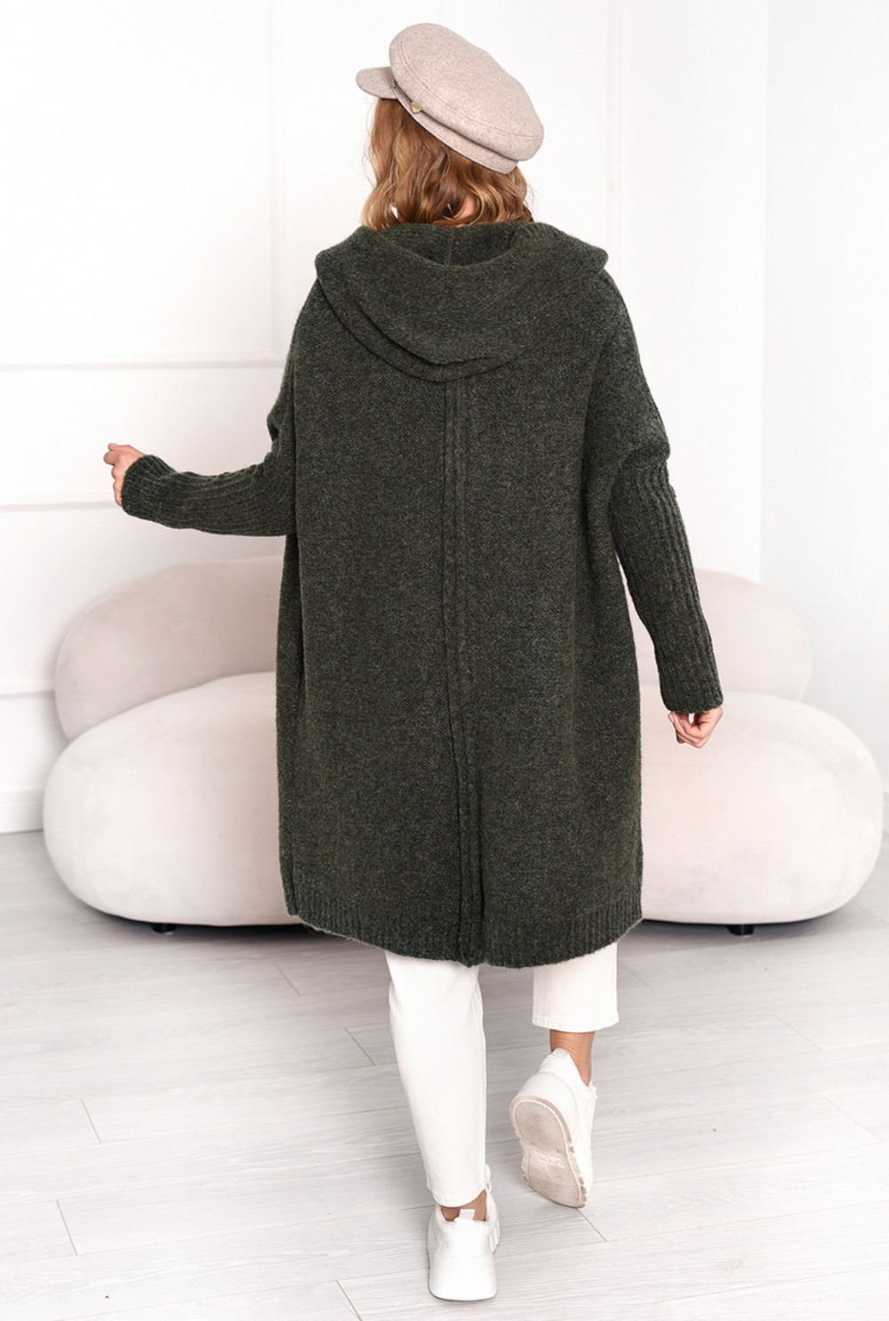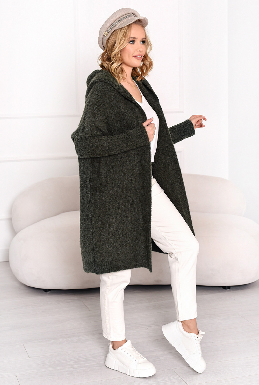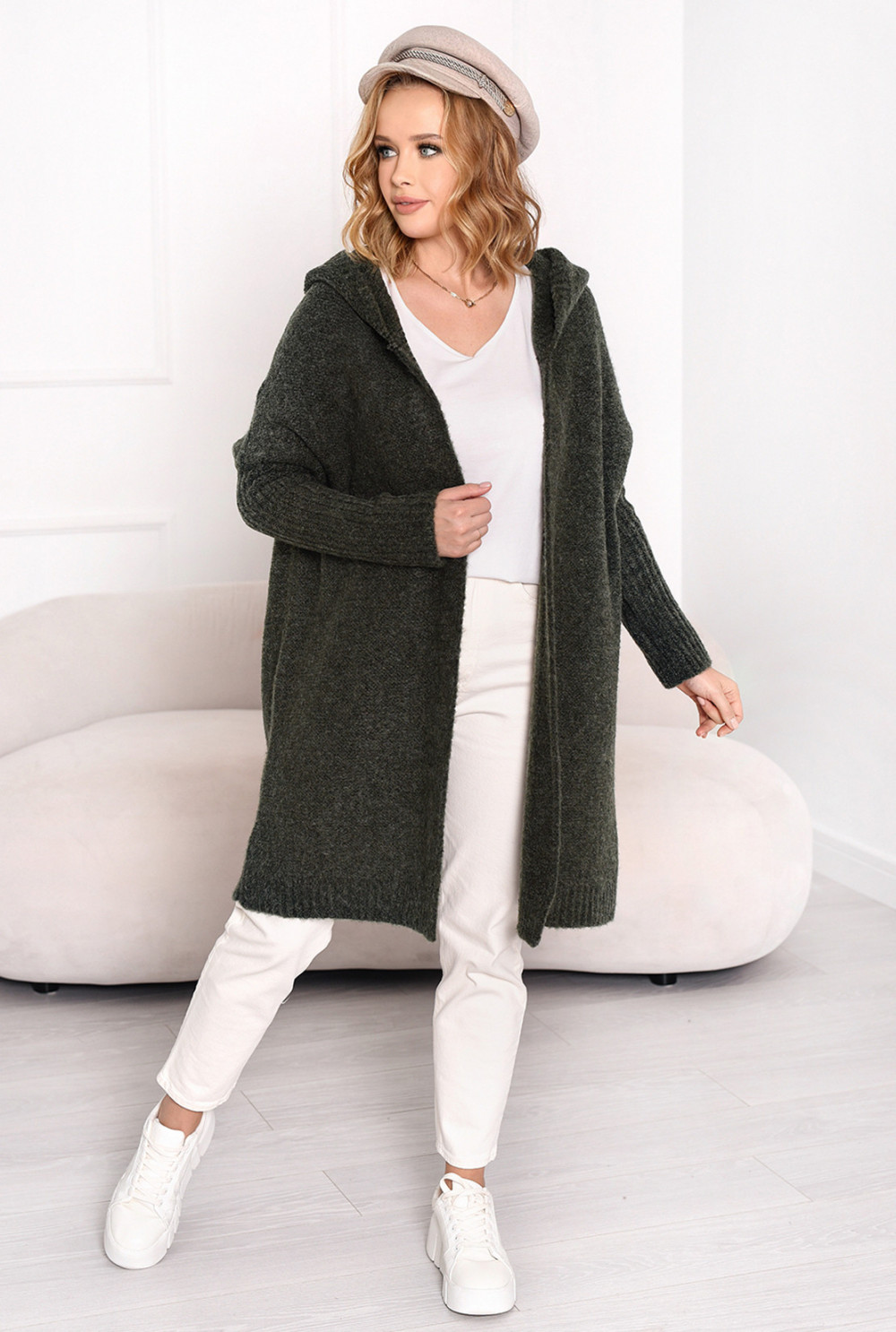 Kardigan z kapturem to propozycja, która koniecznie powinna znaleźć się w każdej garderobie! Model o prostym kroju, posiada przeszycie na plecach. Zakończony dłuższymi ściągaczami na rękawach. Dostępny w wielu kolorach!