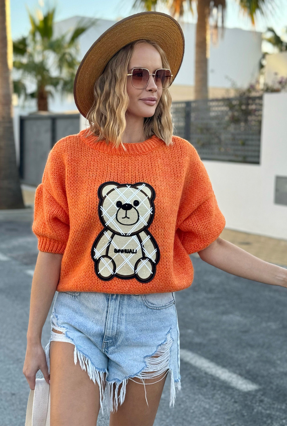 Sweter z misiem Bruno Pomarańcz