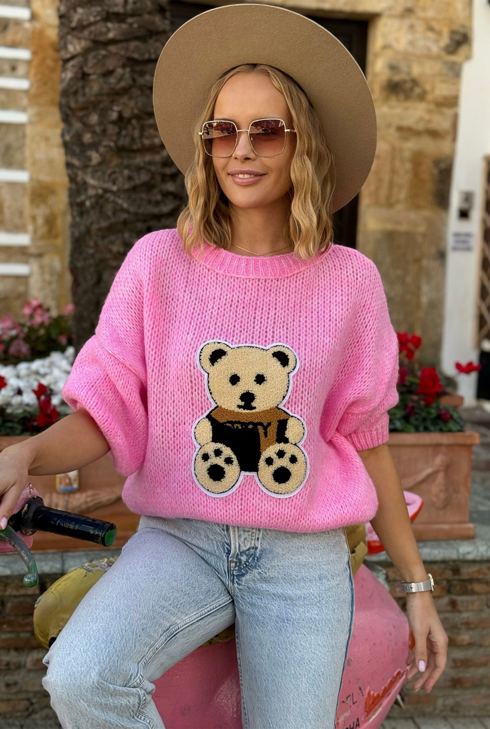 Miękki sweter w dziewczęcym wydaniu to propozycja doskonała na co dzień. Wyróżnia się ozdobnym misiem. To model o klasycznym fasonie z zaokrąglonym dekoltem, zakończony ściągaczami. Dostępny w wielu kolorach.