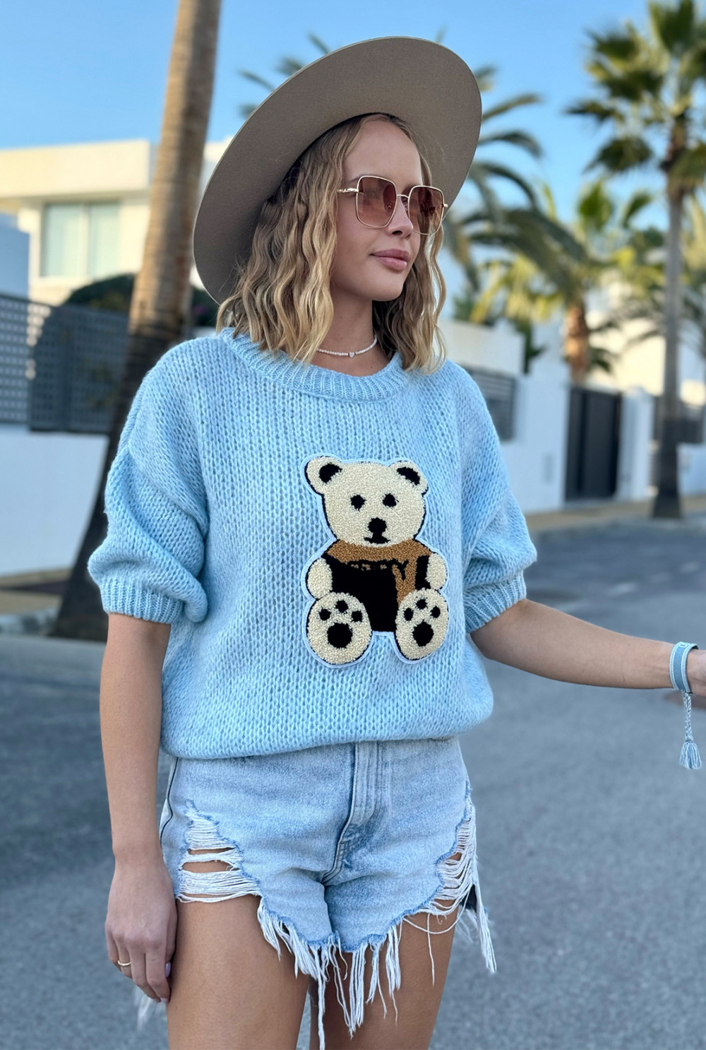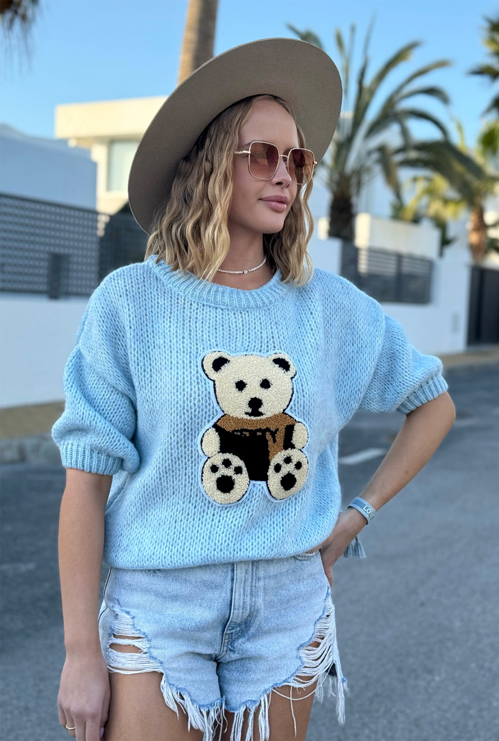 Miękki sweter w dziewczęcym wydaniu to propozycja doskonała na co dzień. Wyróżnia się ozdobnym misiem. To model o klasycznym fasonie z zaokrąglonym dekoltem, zakończony ściągaczami. Dostępny w wielu kolorach.