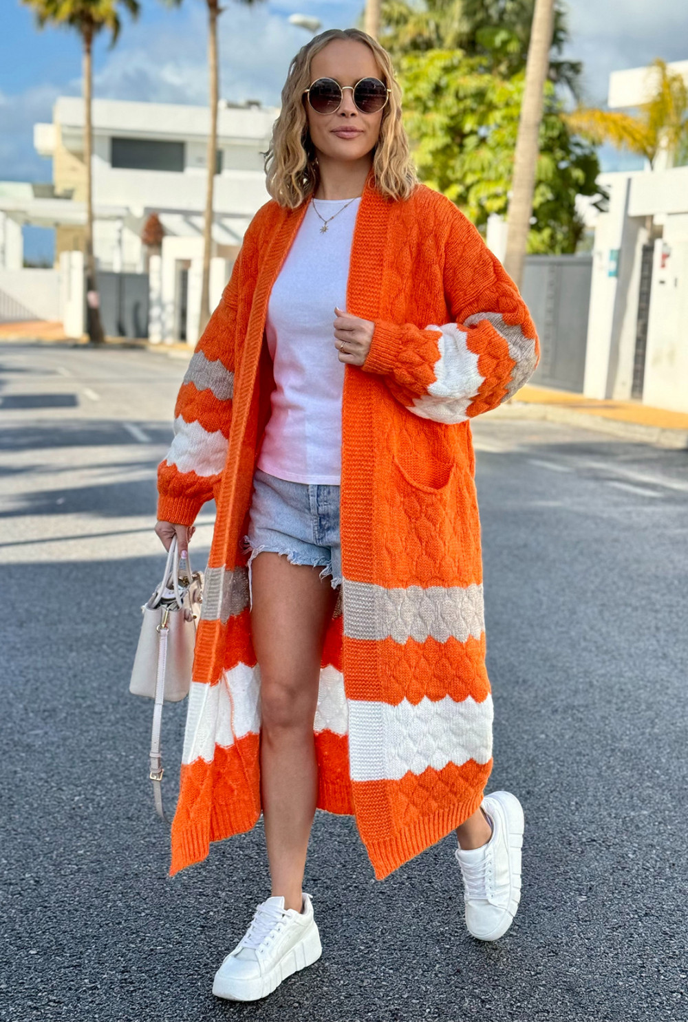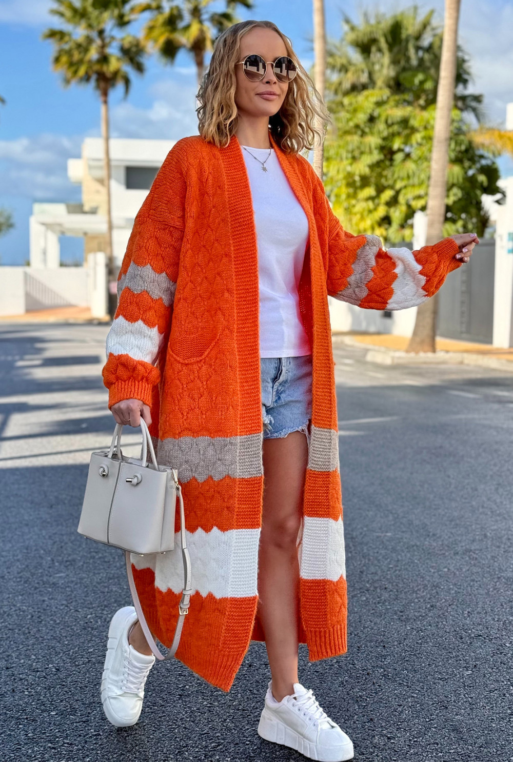 Długi kolorowy kardigan z kieszeniami Lucy Pomarańcz