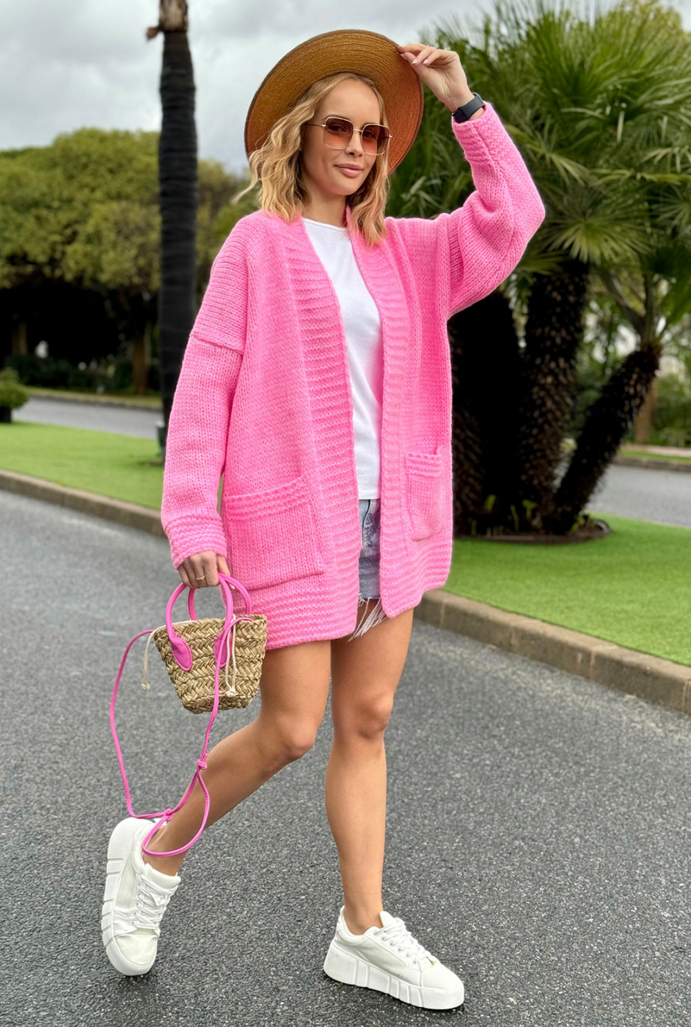 Kardigan oversize z kieszeniami Diana Baby Róż