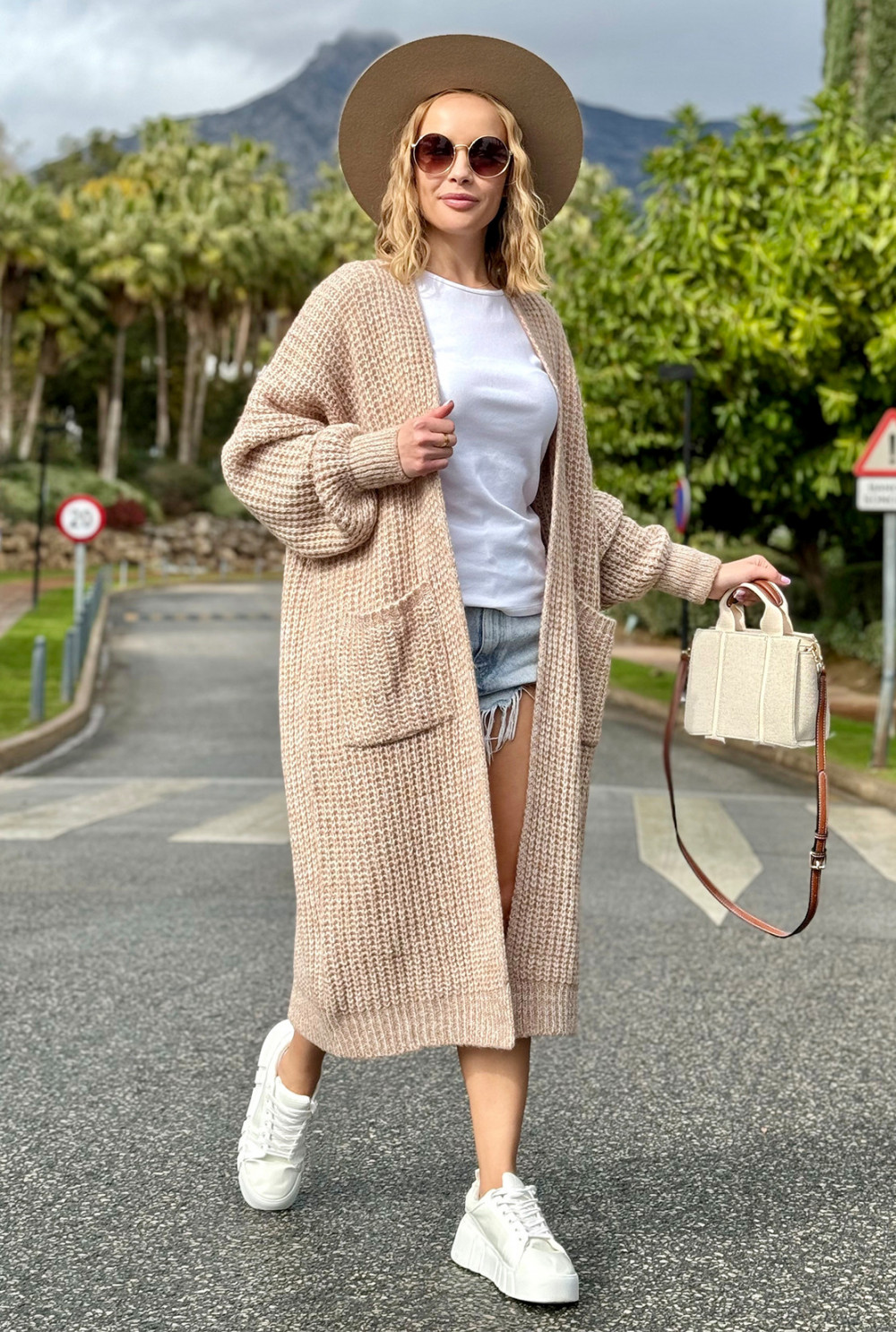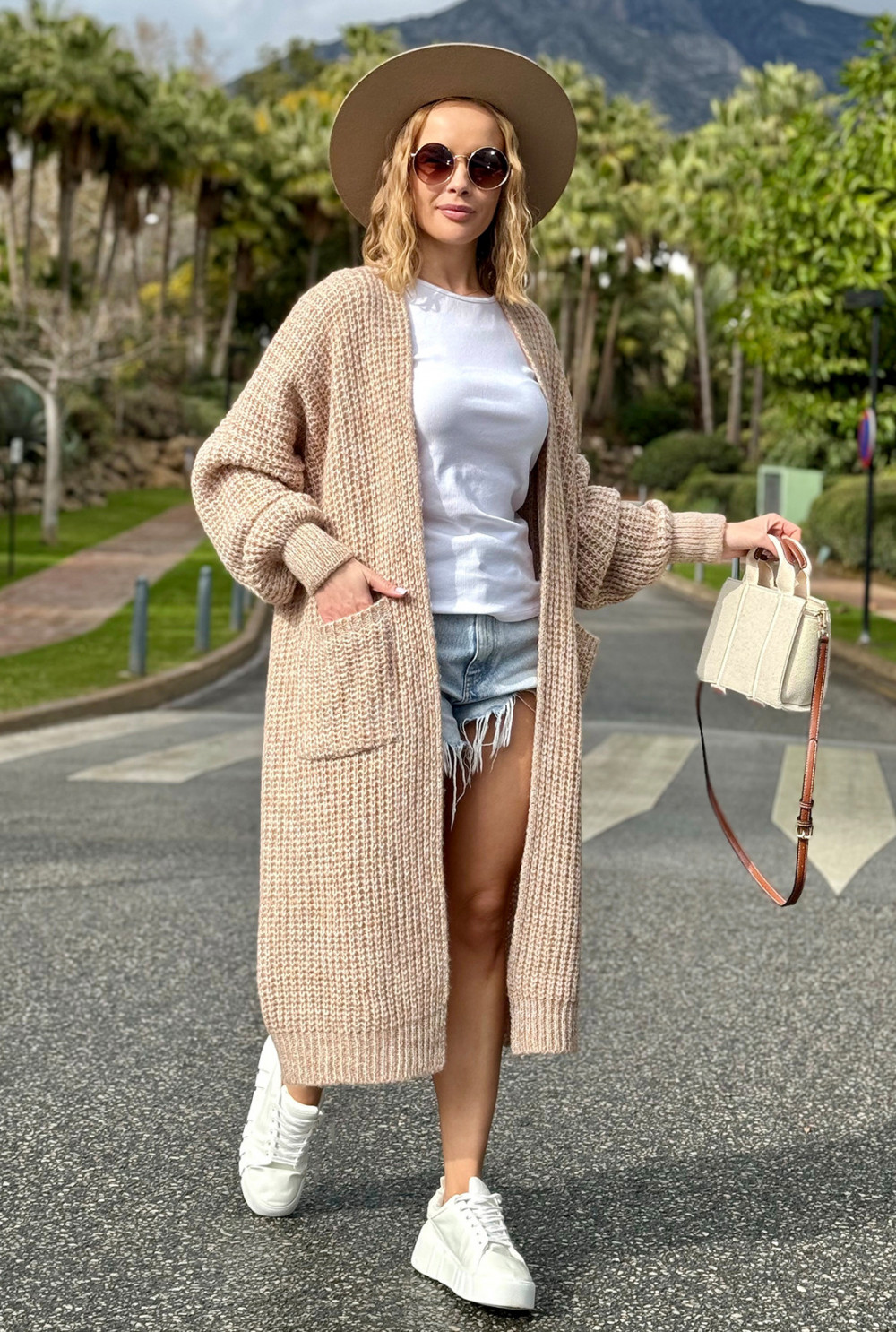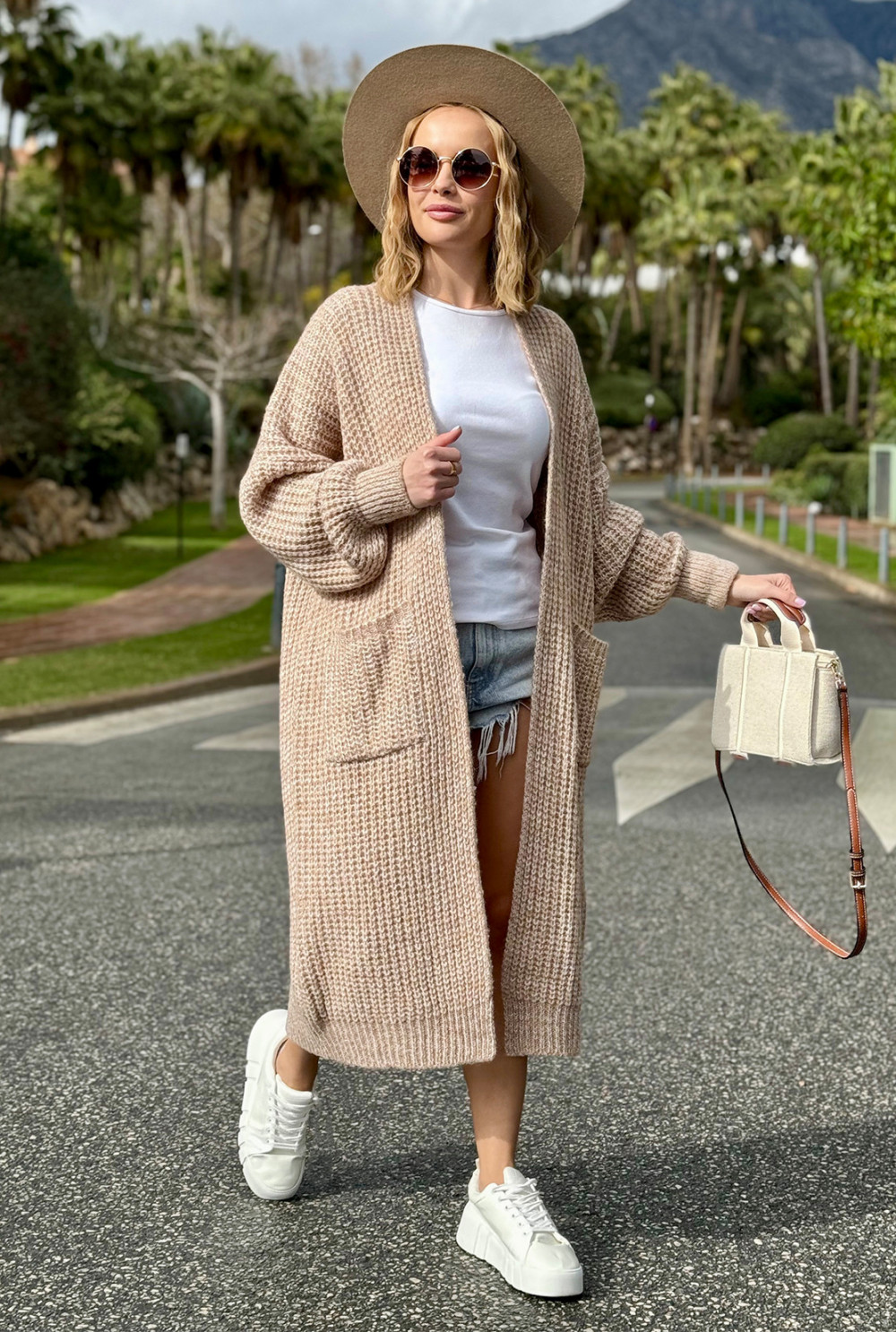 Długi kardigan oversize z kieszeniami Multicolor Beż