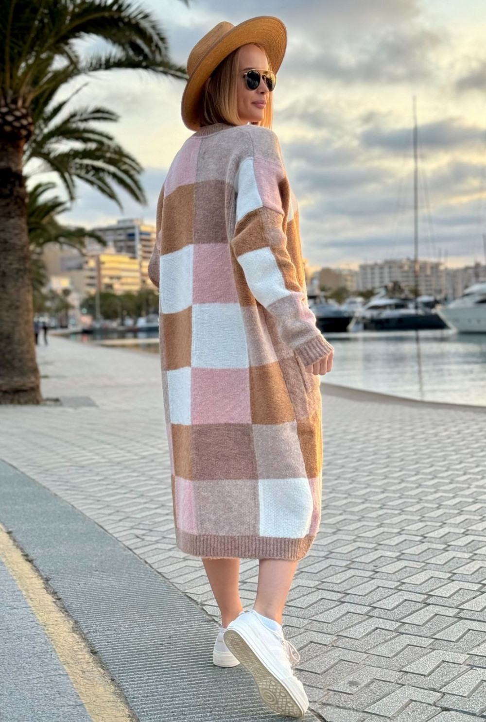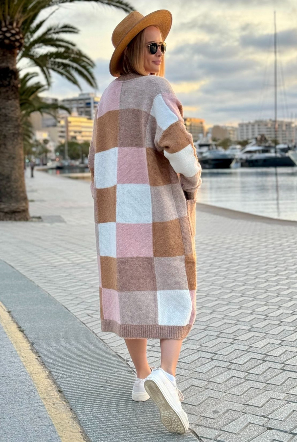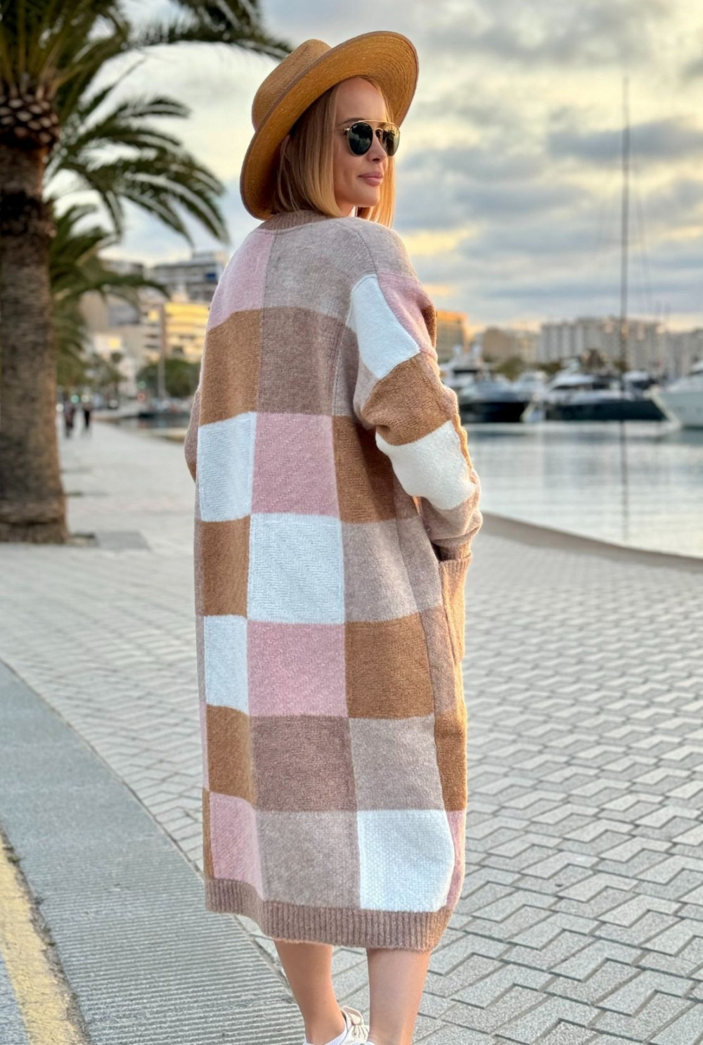 Długi kolorowy kardigan z kieszeniami Valeria Latte-beż