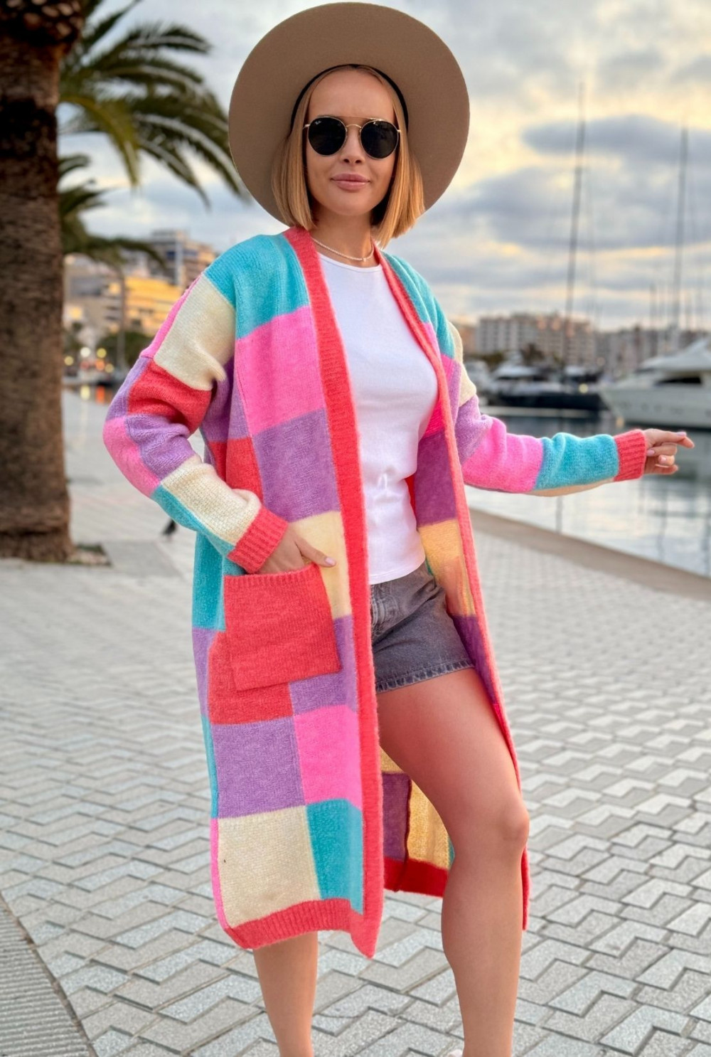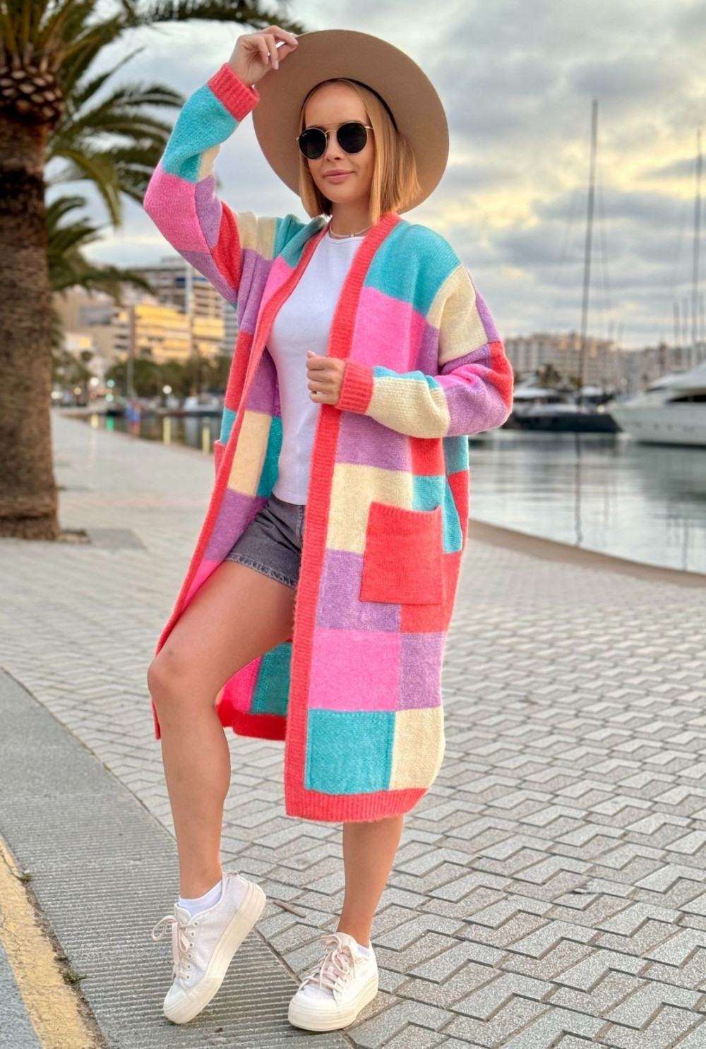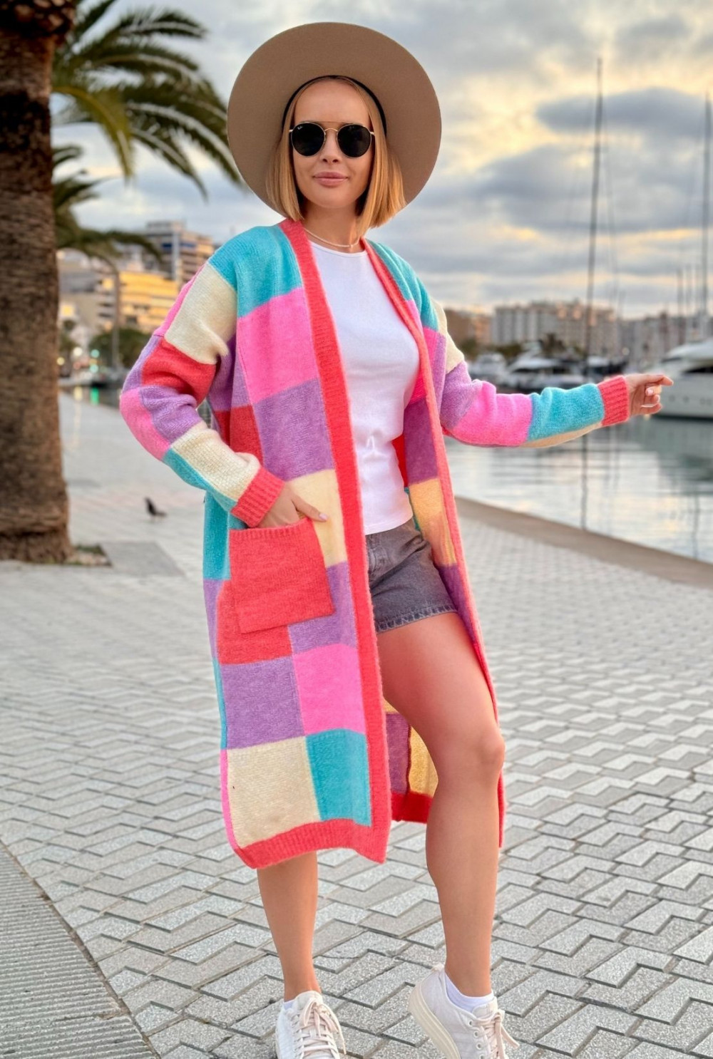 Długi kolorowy kardigan z kieszeniami Valeria Koral-niebo