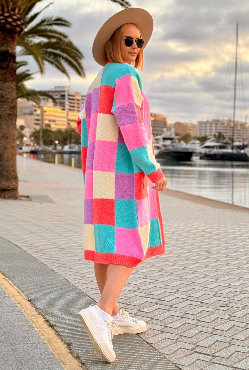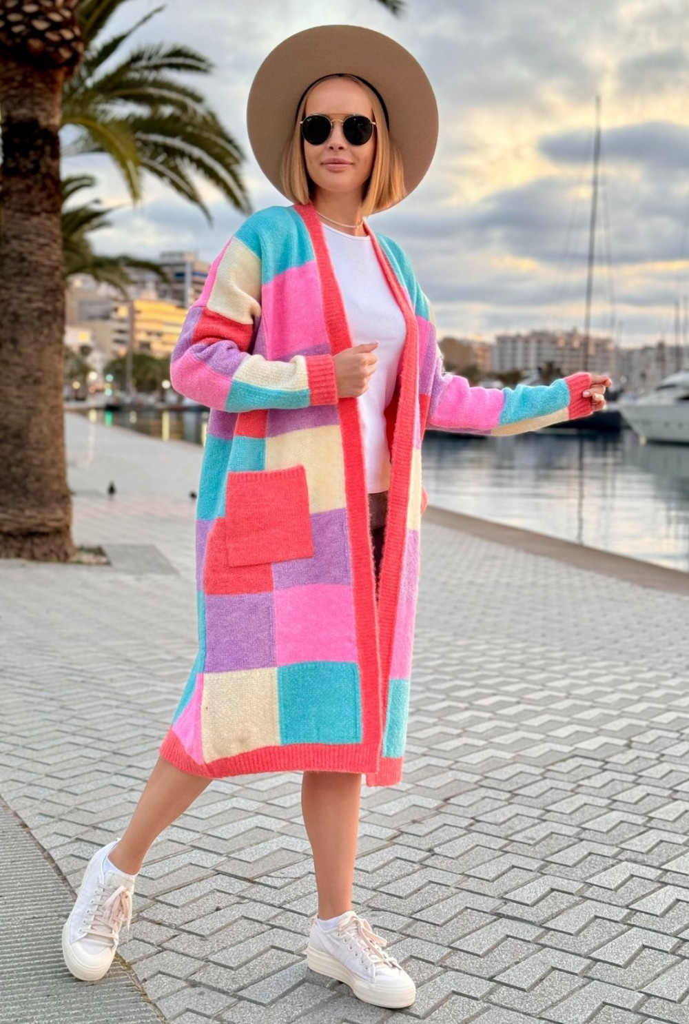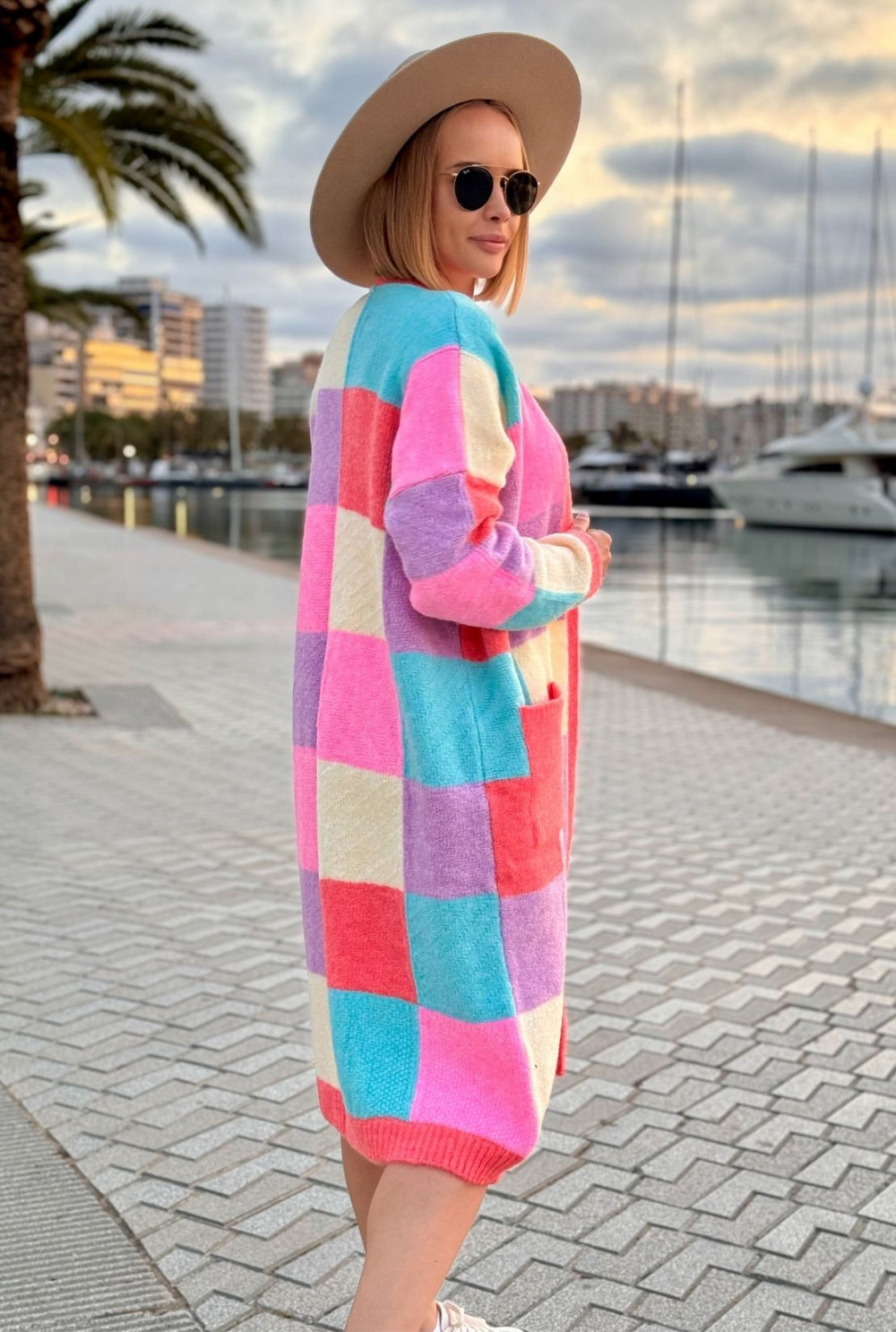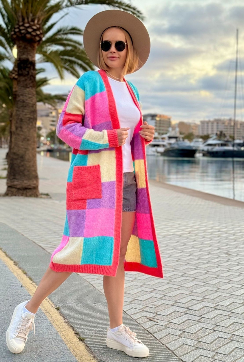 Długi kolorowy kardigan z kieszeniami Valeria Koral-niebo