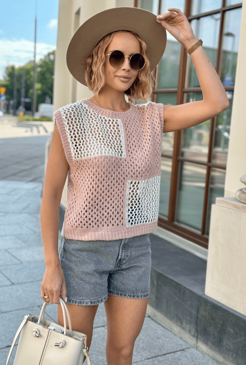 Sweterkowa kamizelka wykonana z łączonych materiałów to dokonała opcja do codziennych stylizacji. To model na ramiączkach z zaokrąglonym dekoltem. Dostępny w wielu wariantach kolorystycznych!