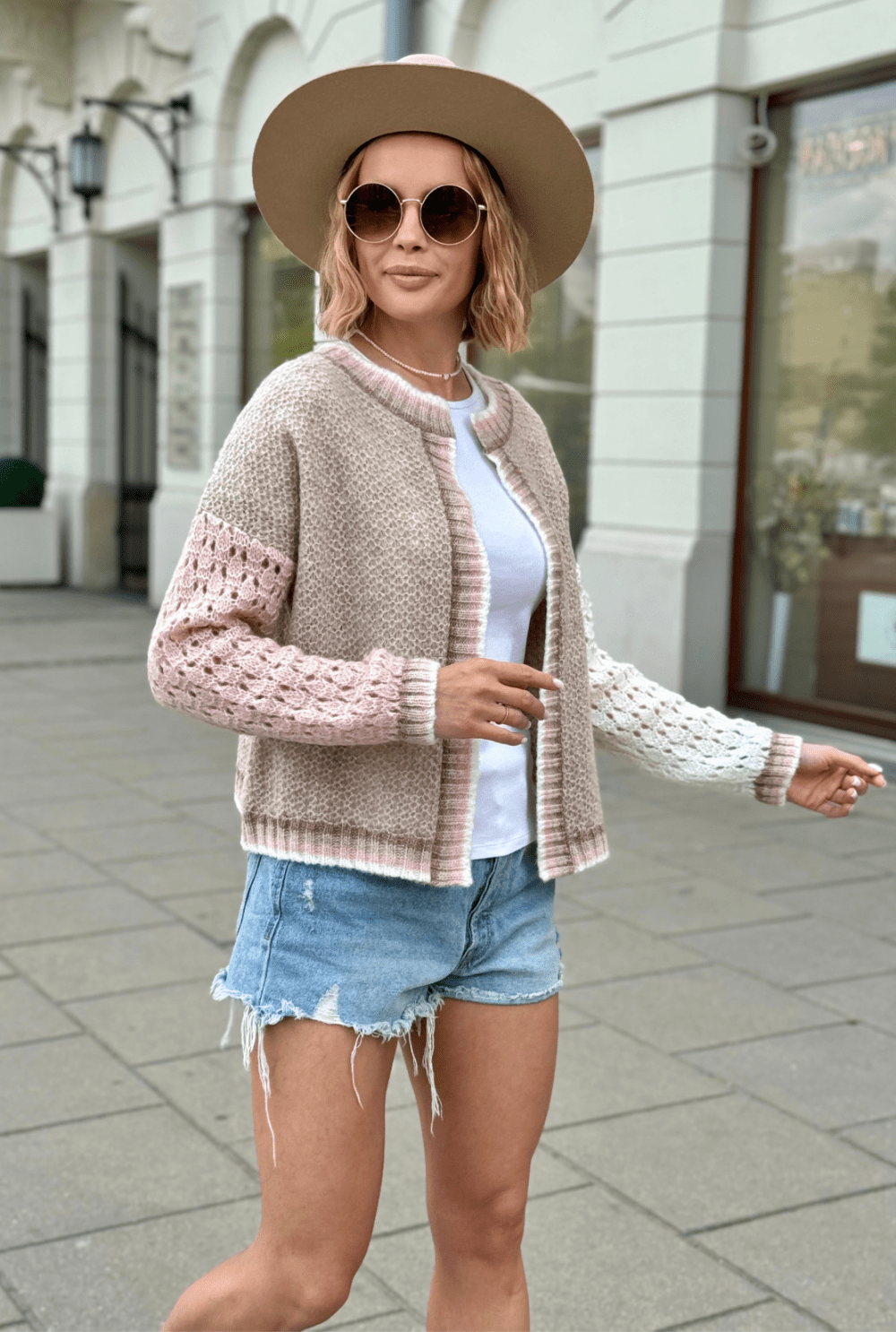Krótki kardigan Alice Beż-puder róż