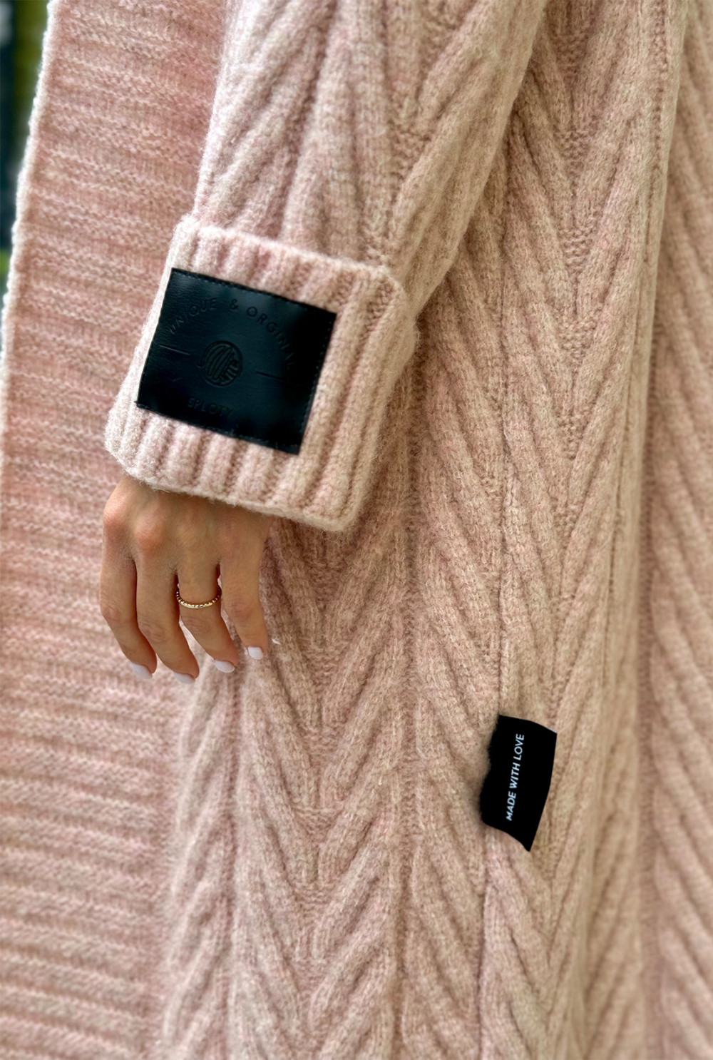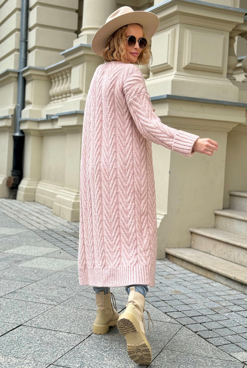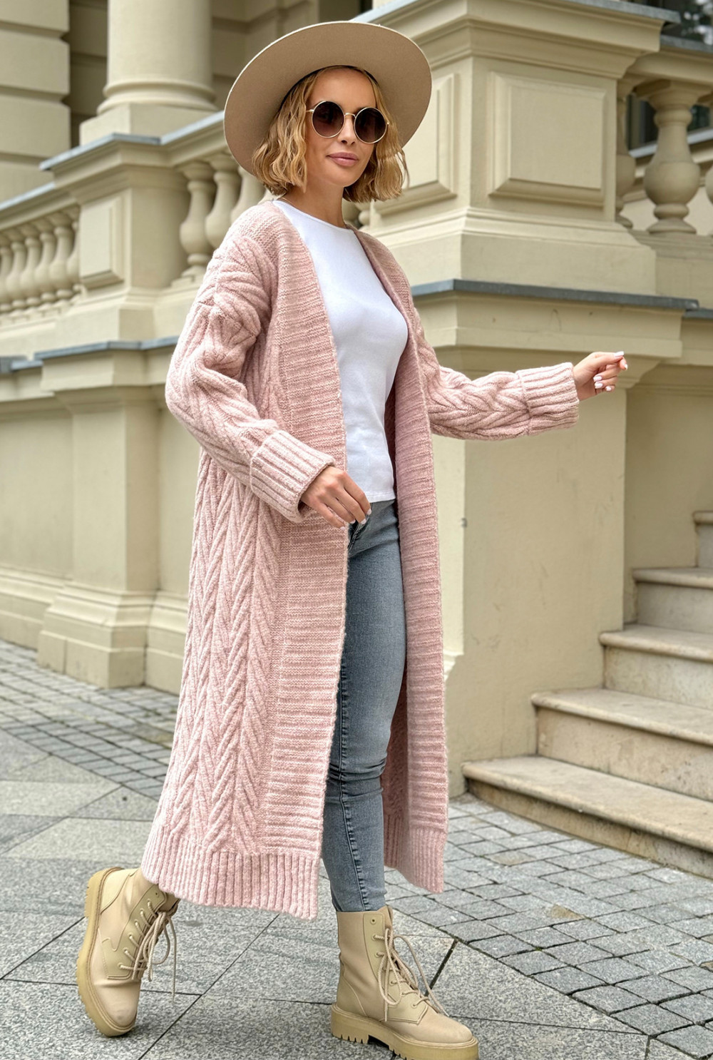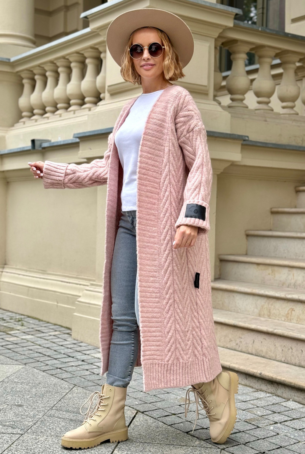 Długi kardigan z ozdobnym splotem Kris Puder Róż