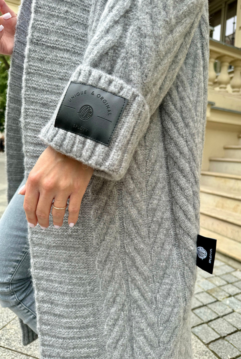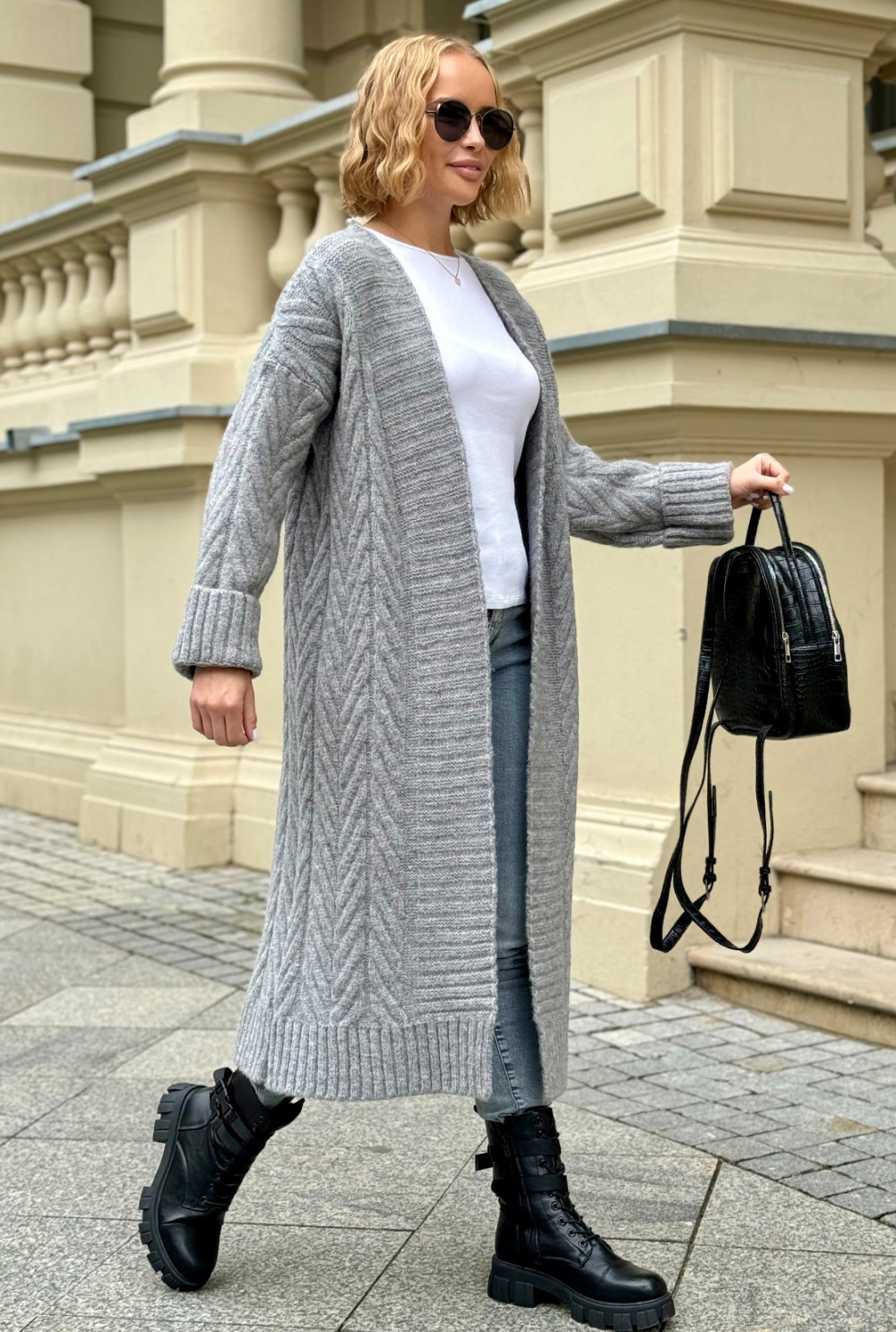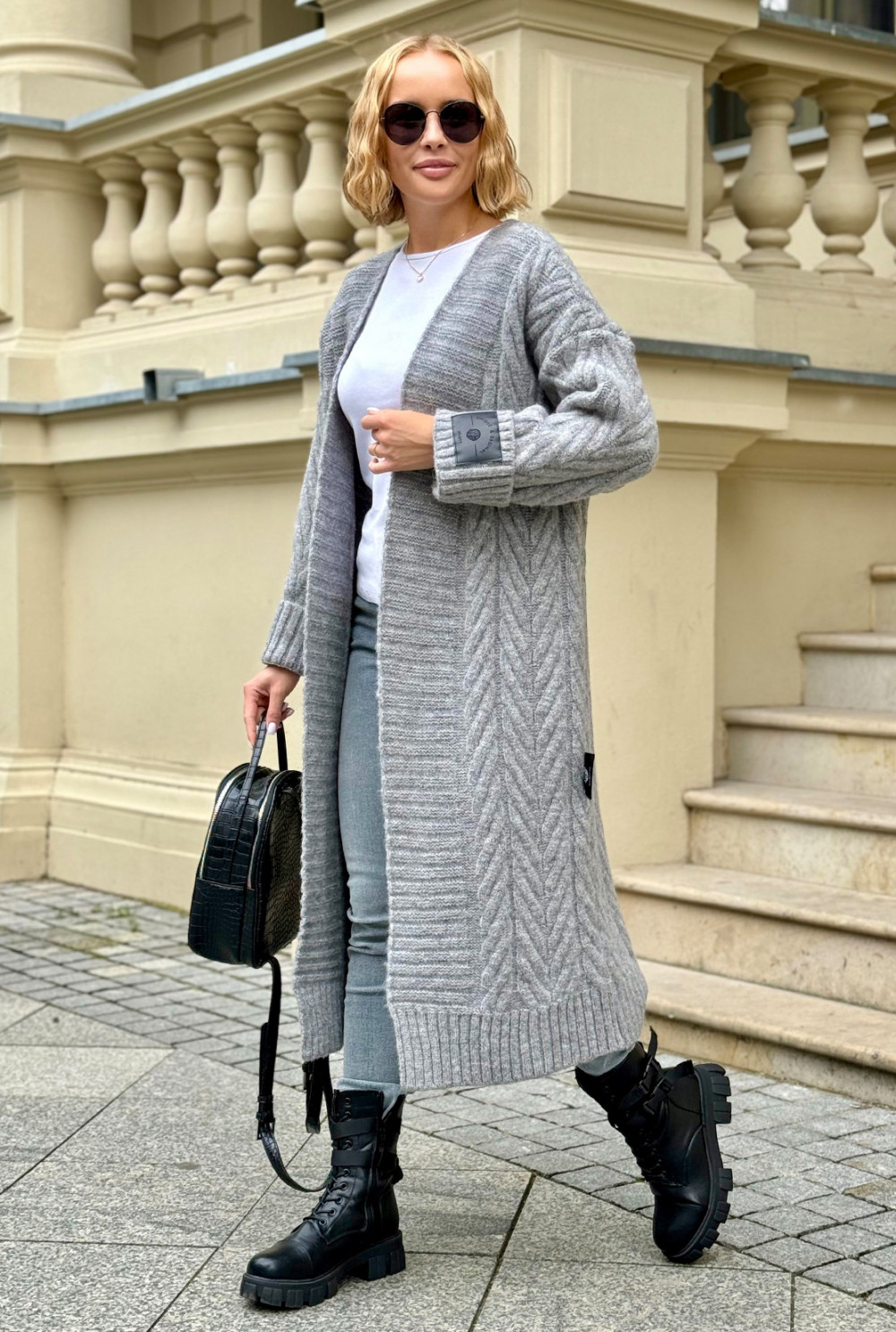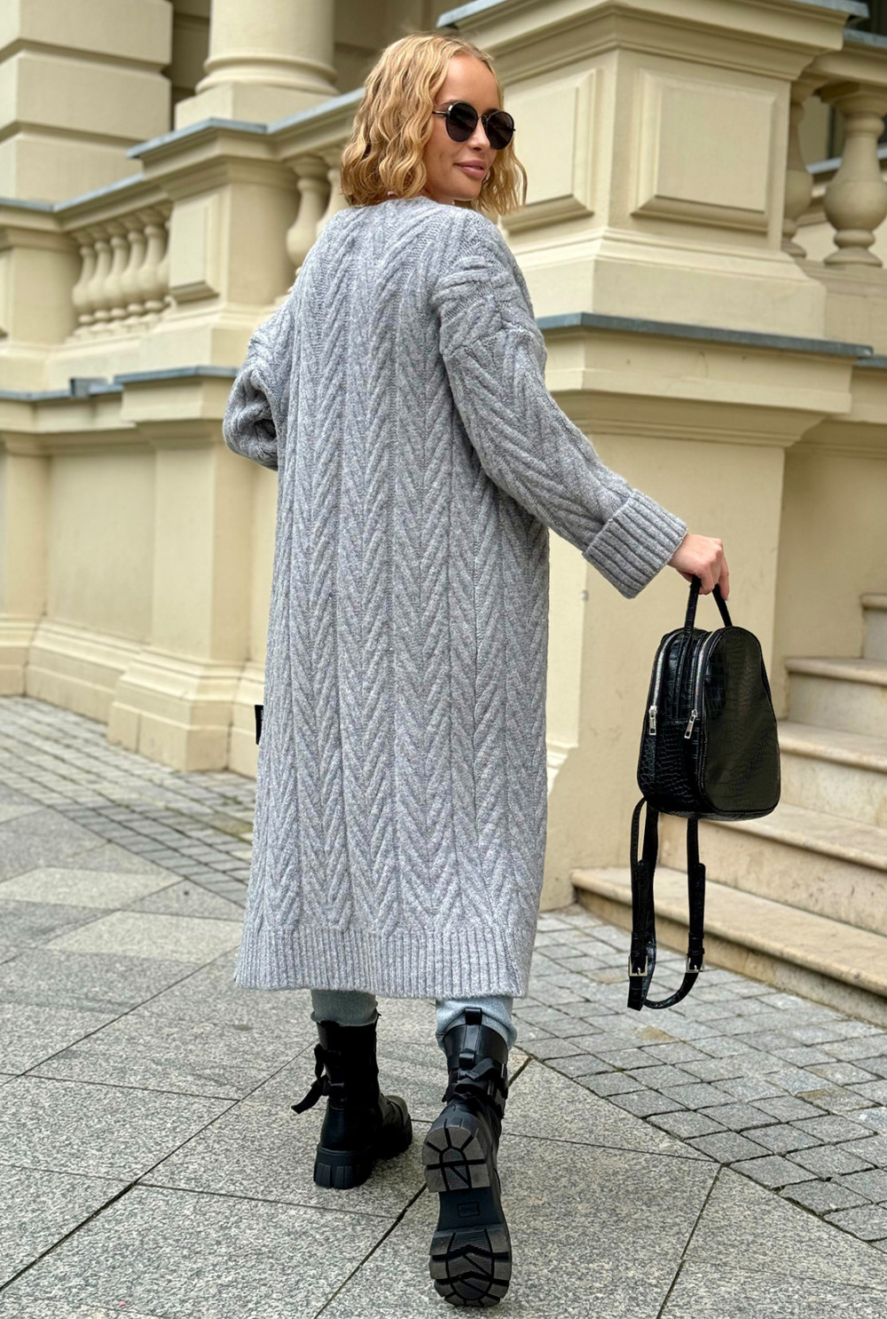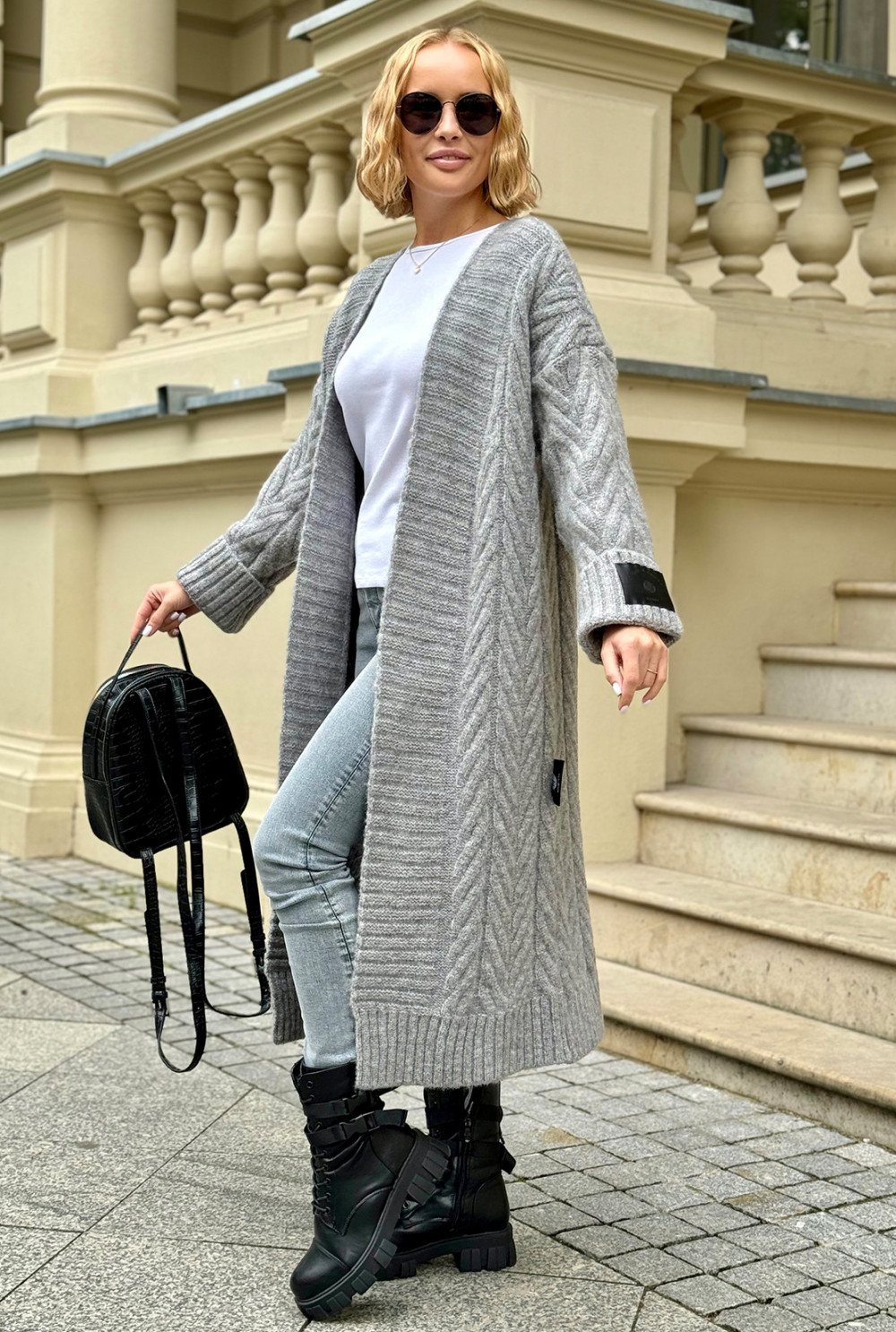 Długi kardigan z ozdobnym splotem Kris Ciemny Szary
