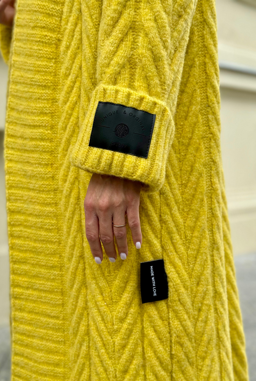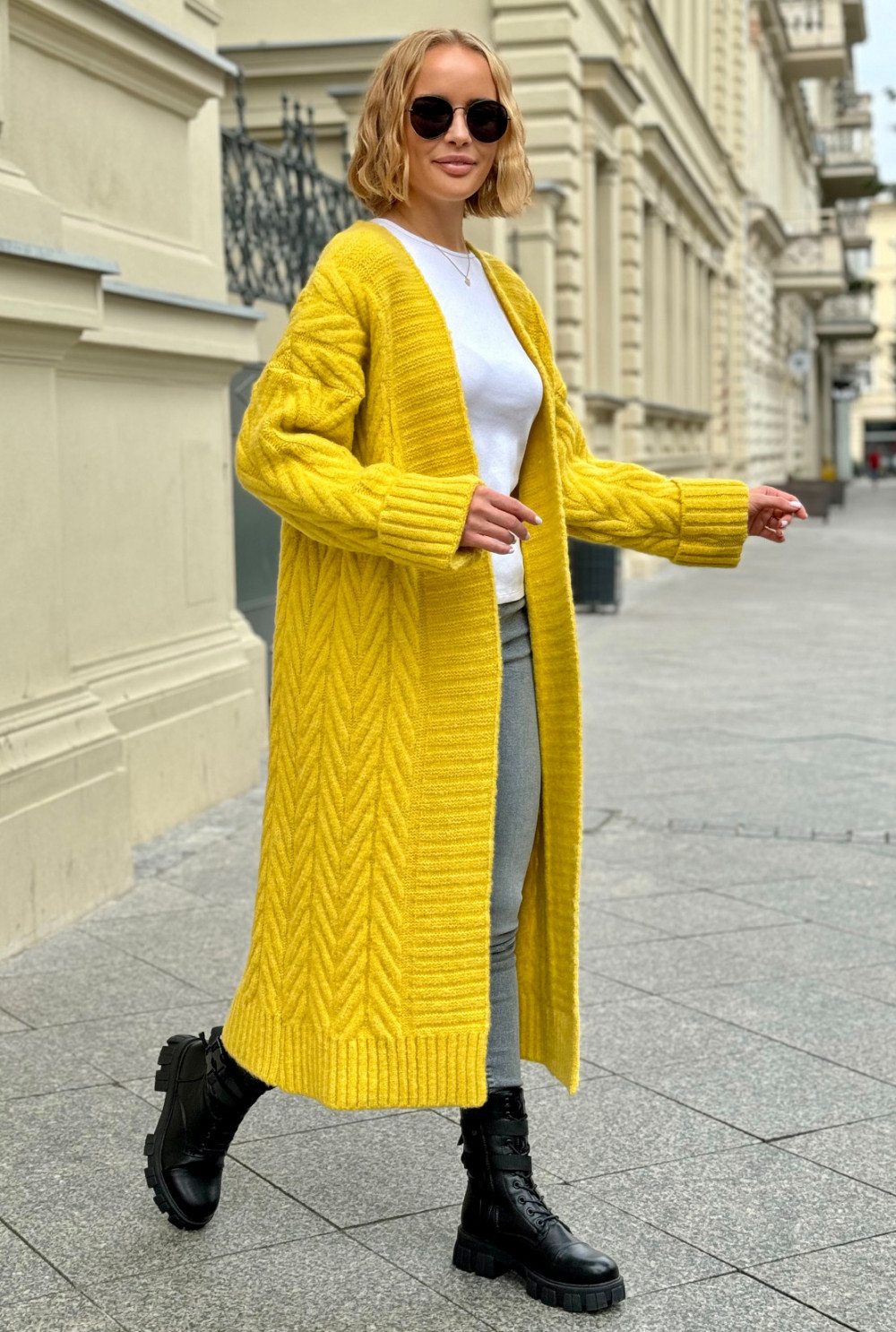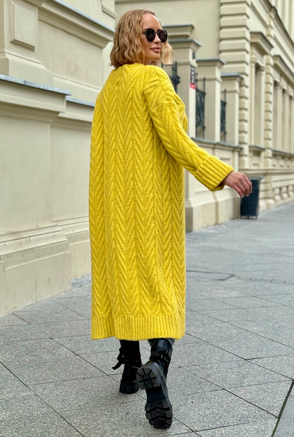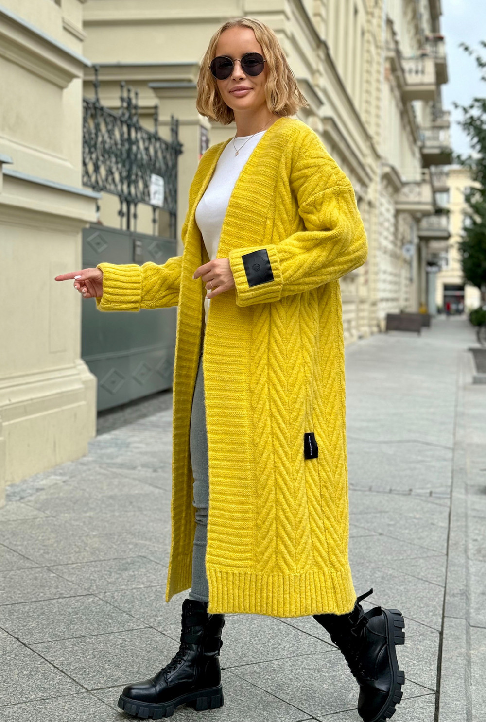Długi kardigan z ozdobnym splotem Kris Cytryna