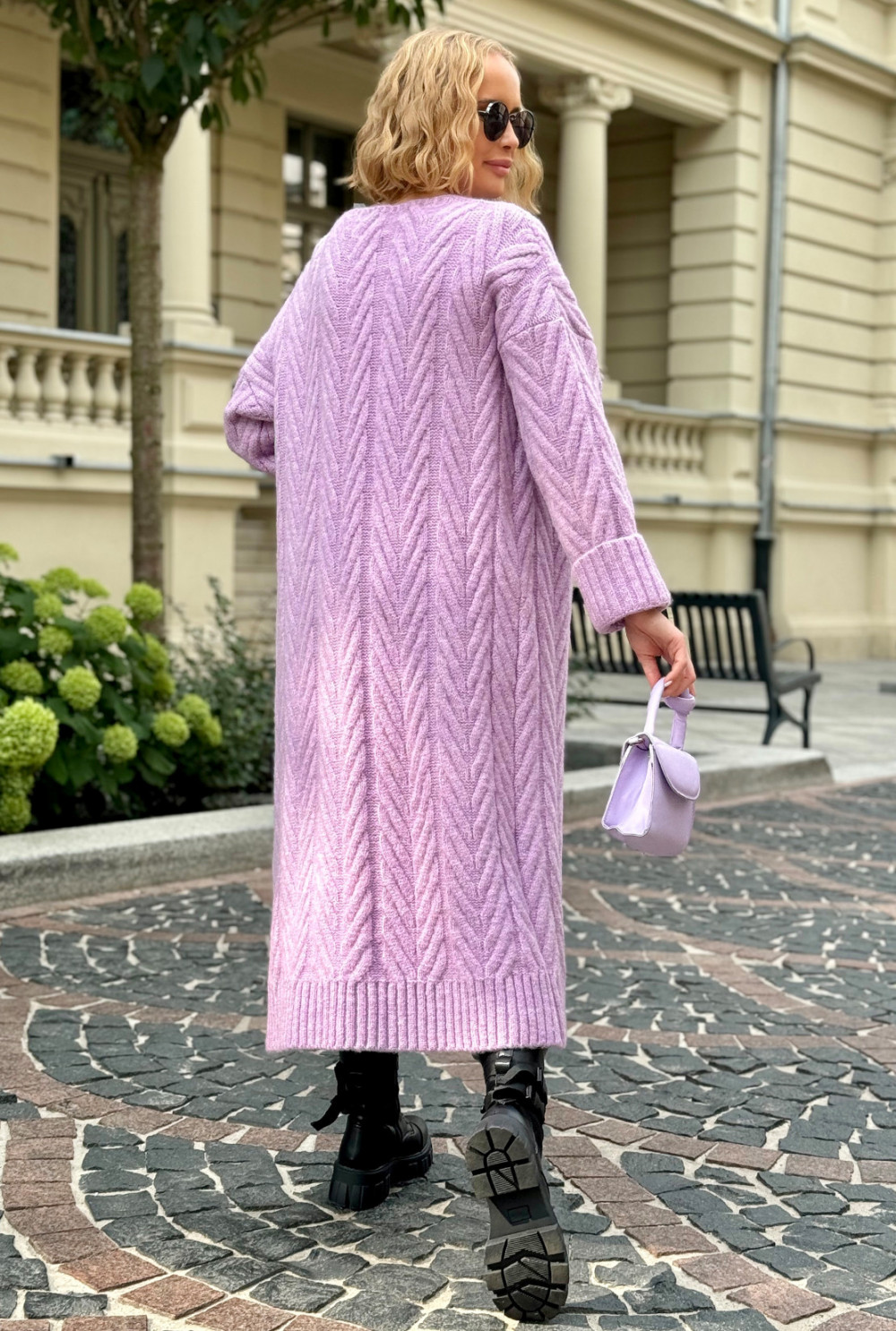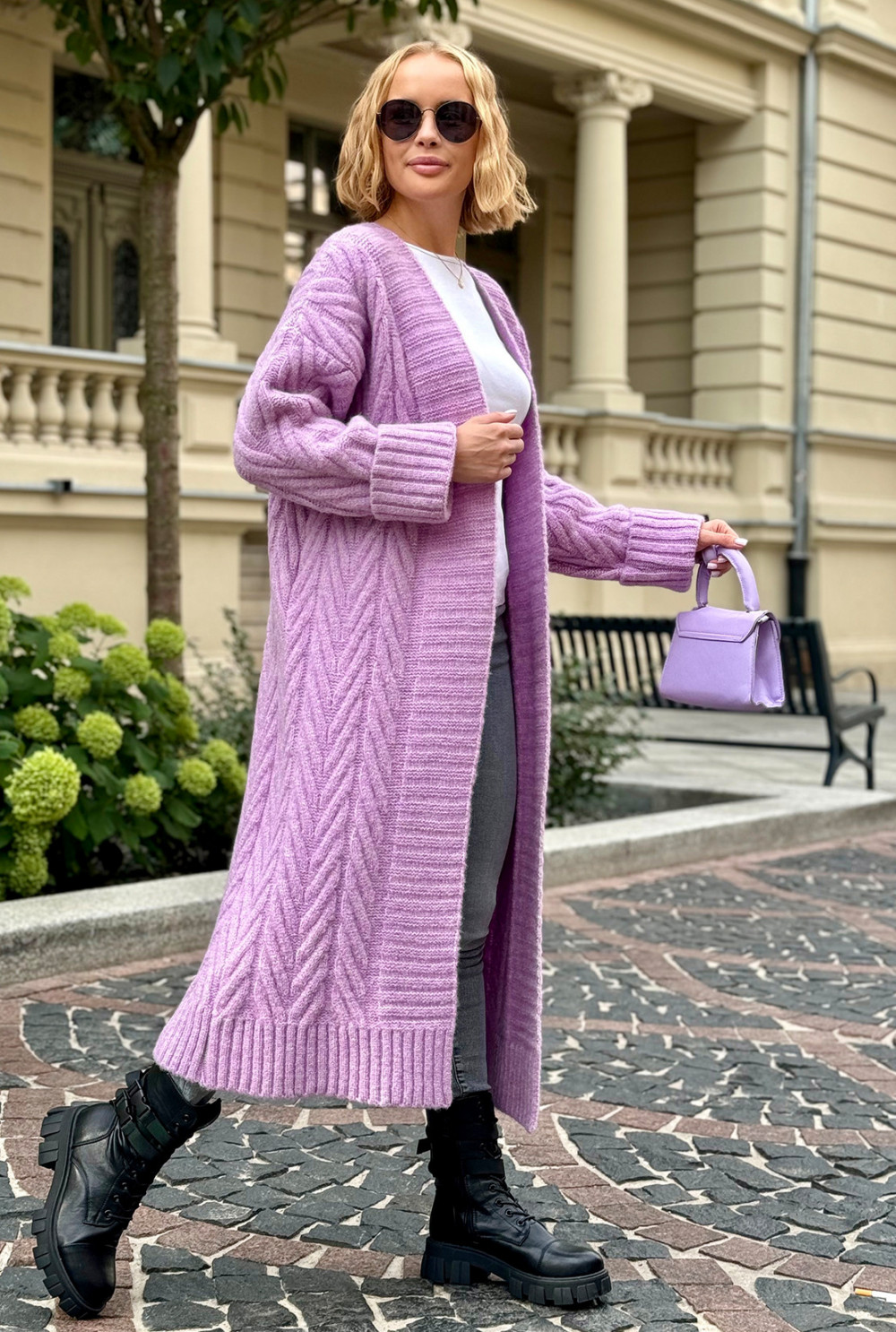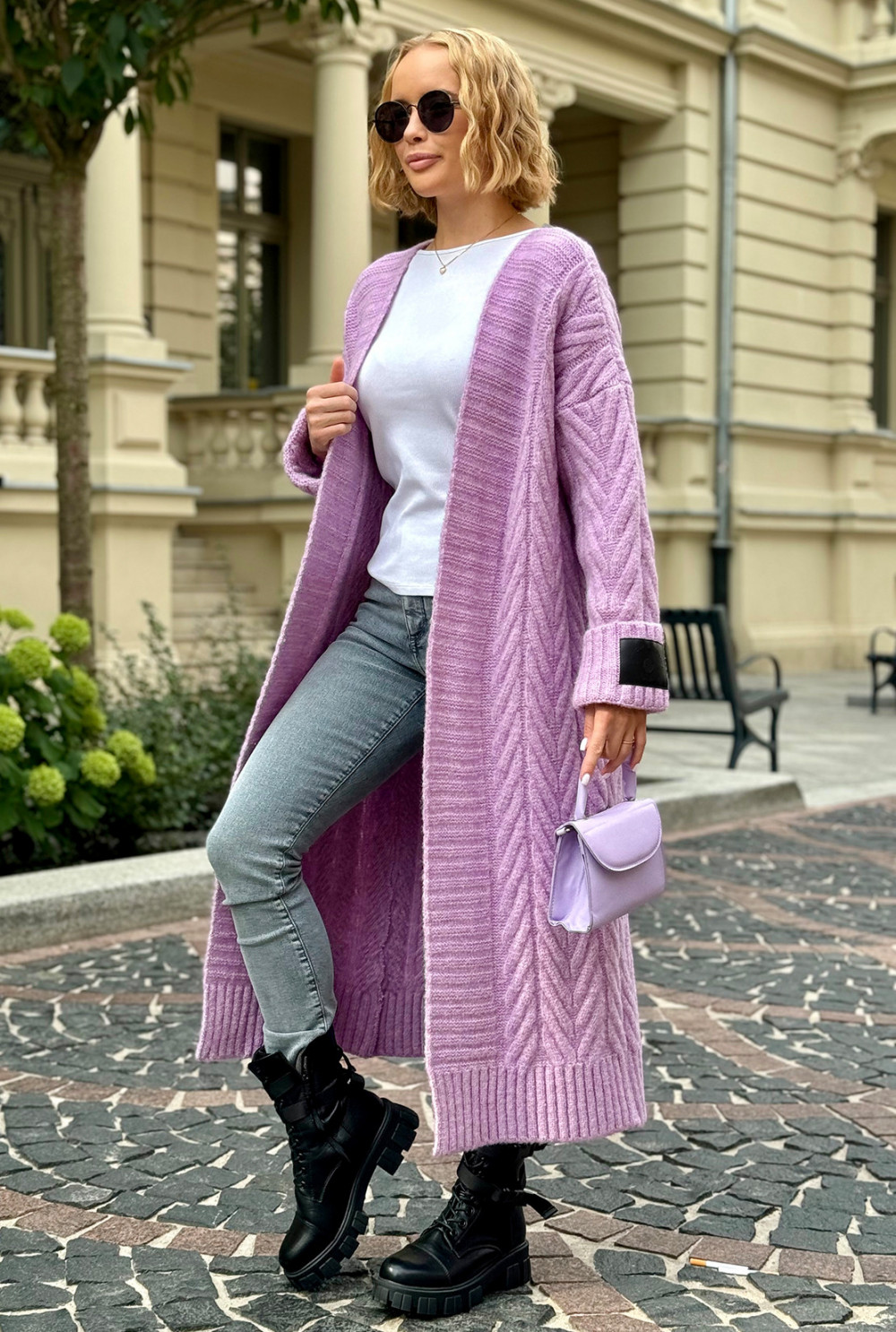 Długi kardigan z ozdobnym splotem Kris Lila