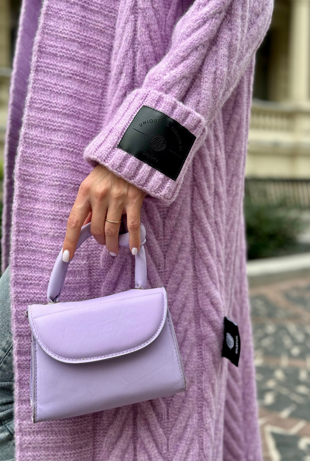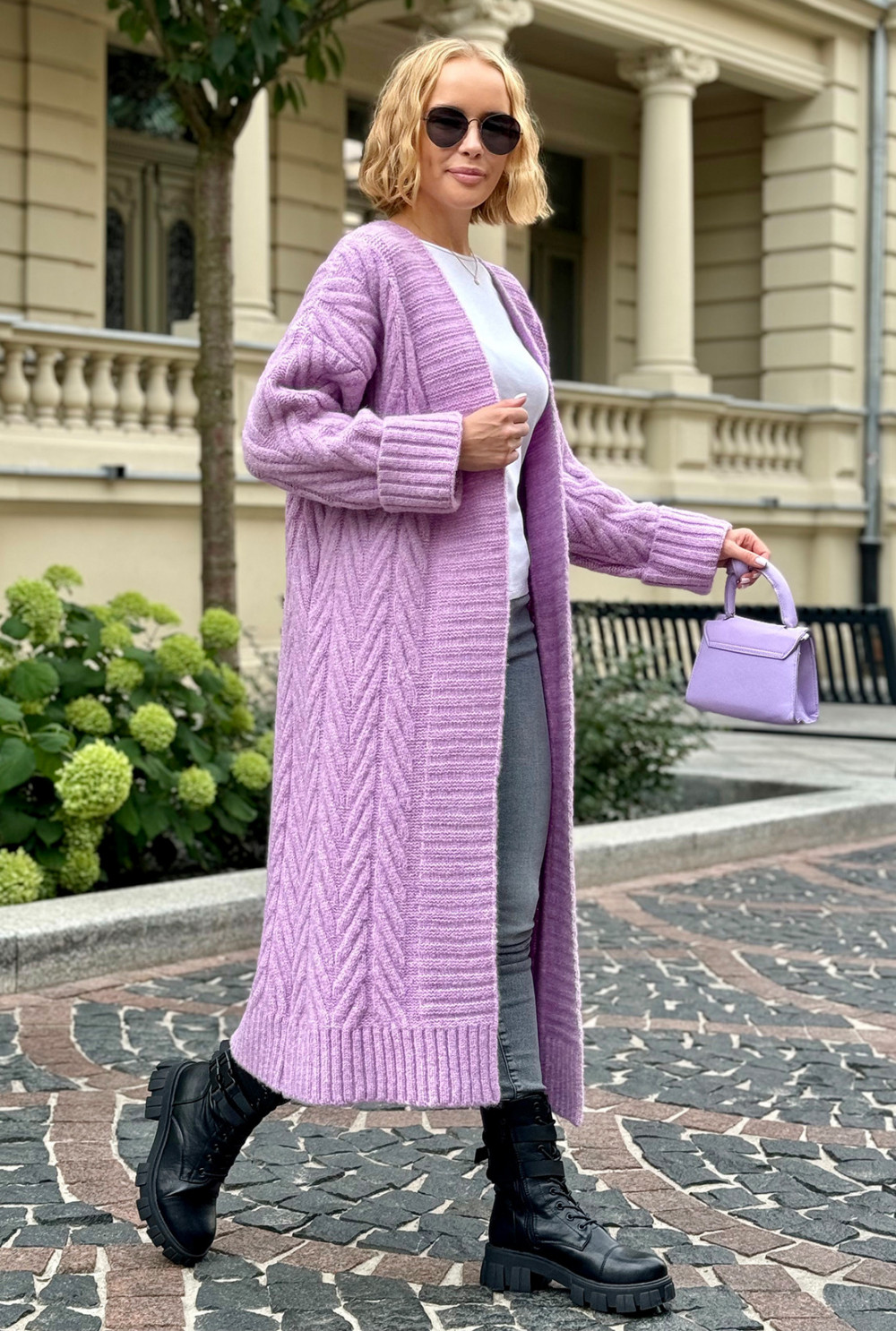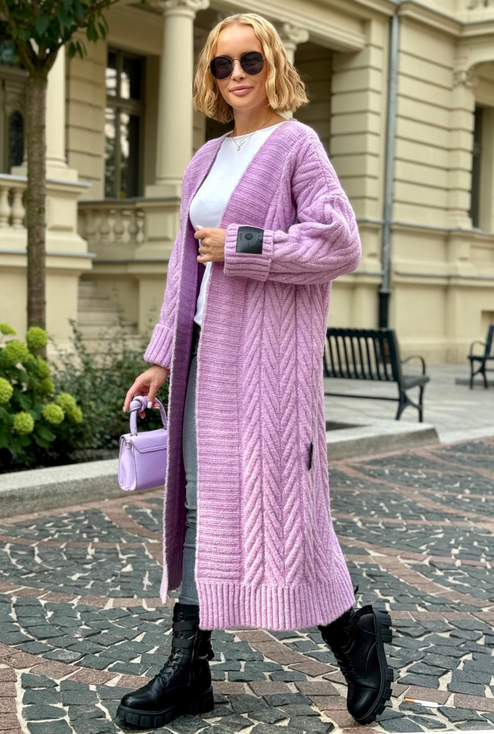 Długi kardigan z ozdobnym splotem Kris Lila