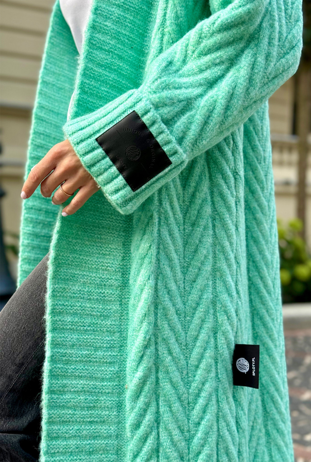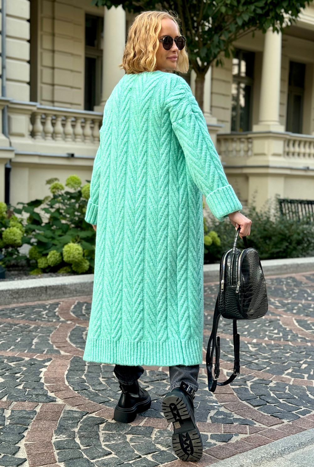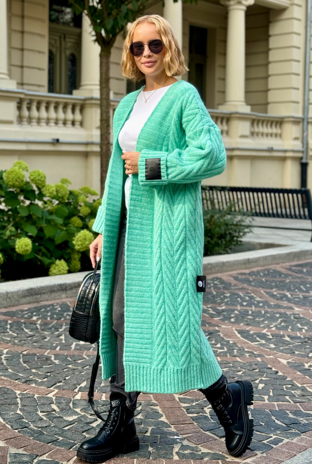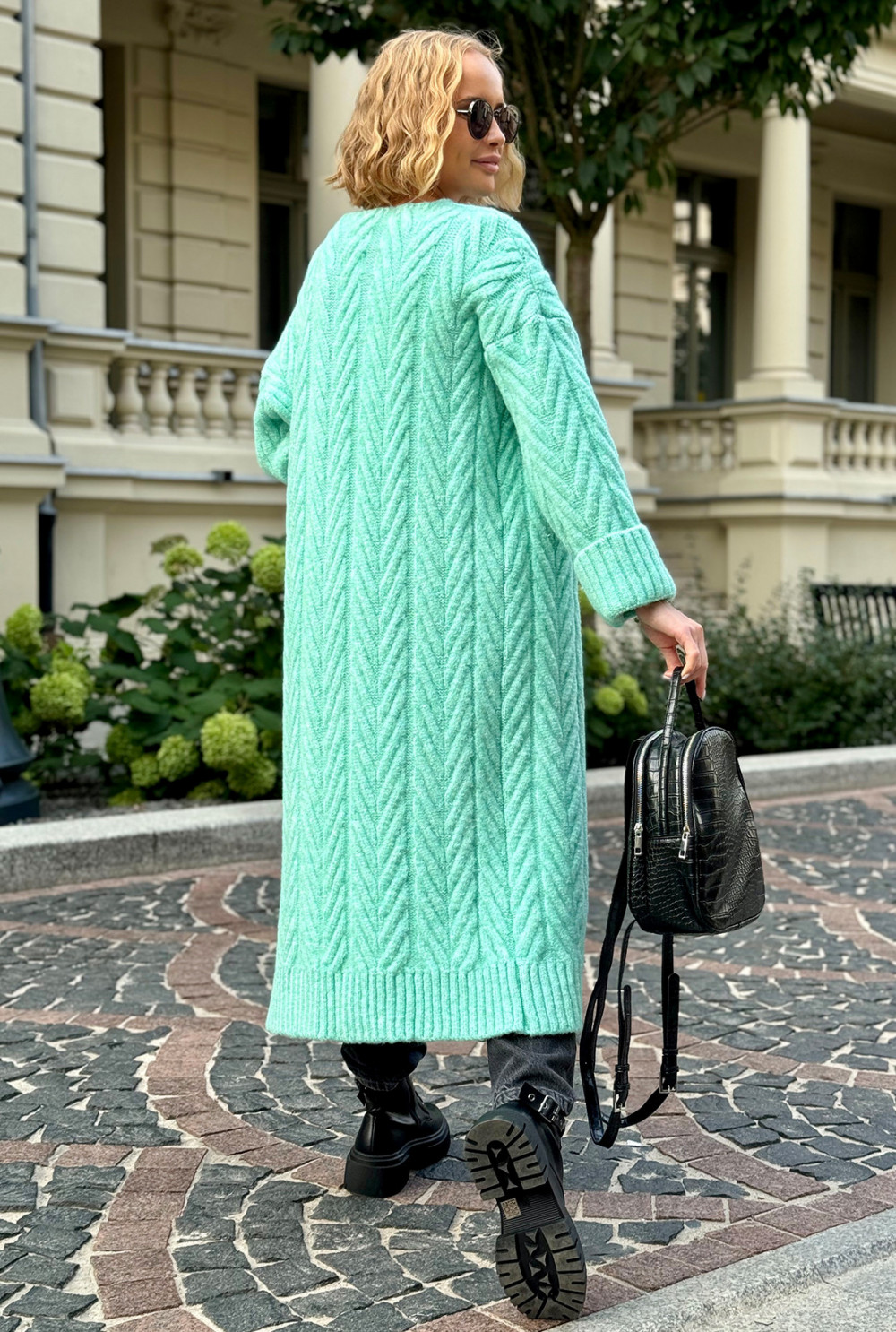 Długi kardigan z ozdobnym splotem Kris Seledyn