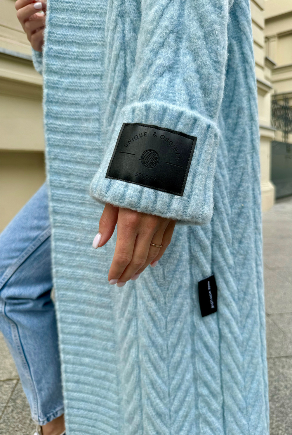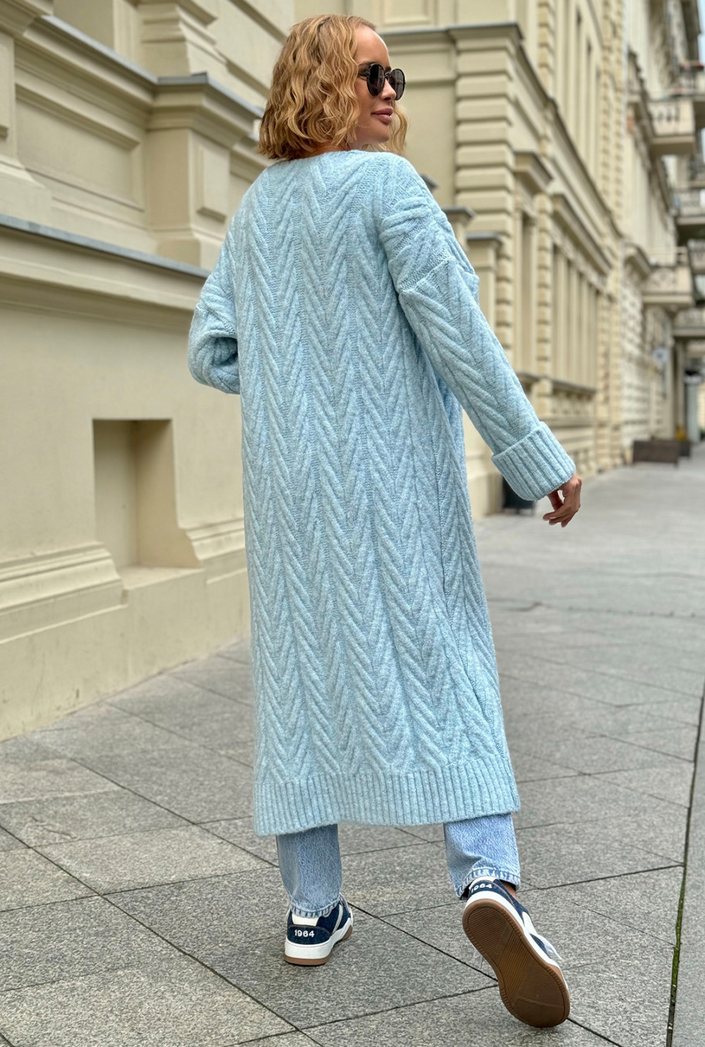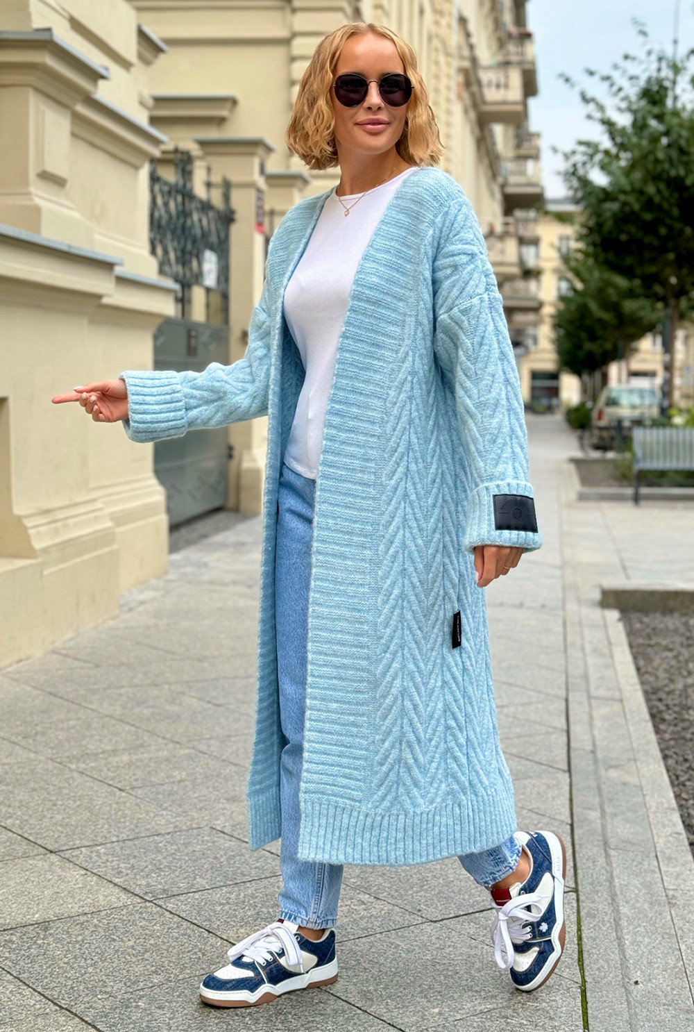 Długi kardigan z ozdobnym splotem Kris Błękit