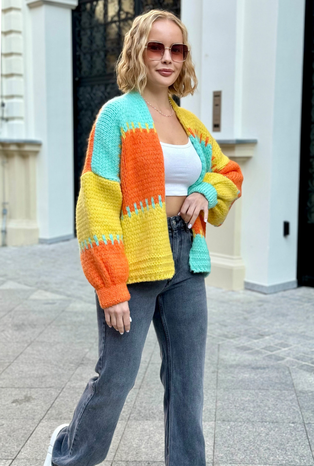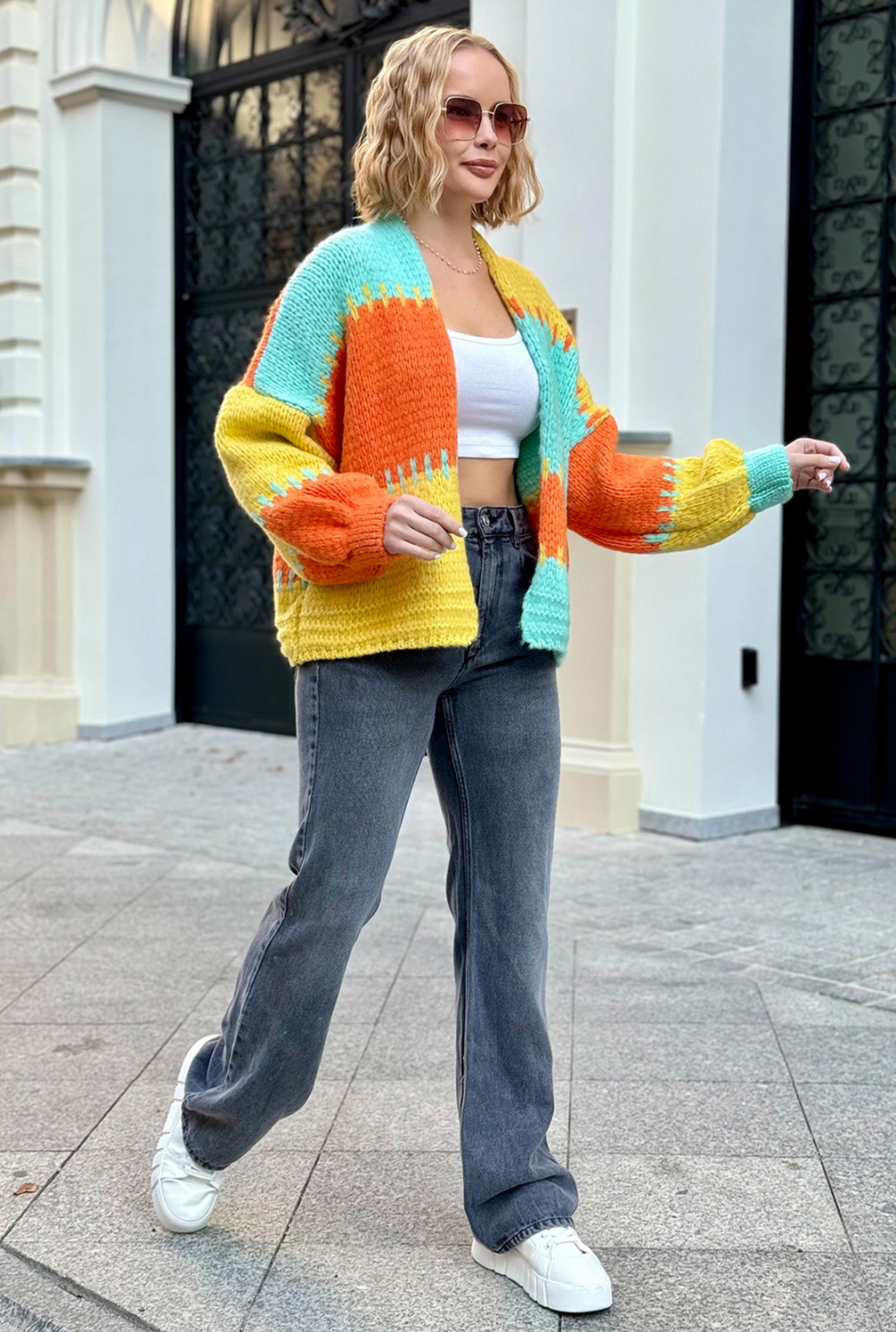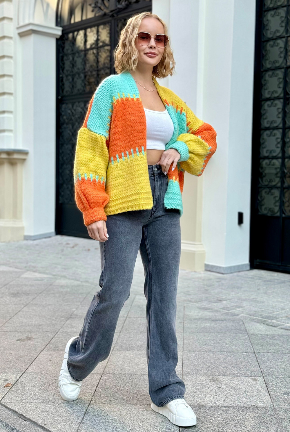 Krótki kardigan oversize Aurora Seledyn-cytryna