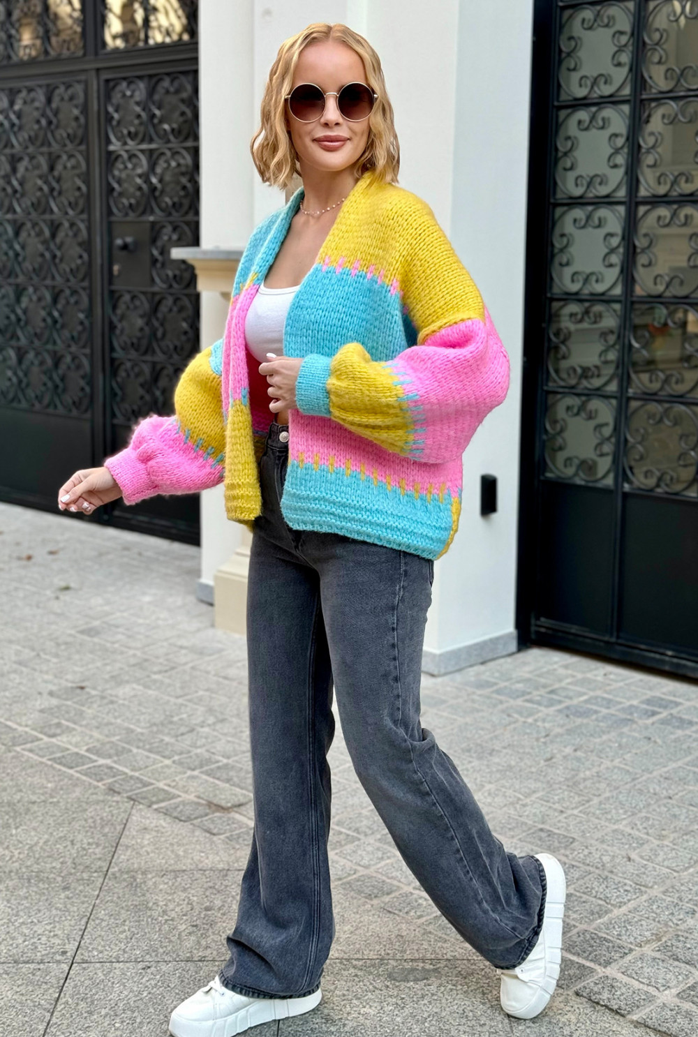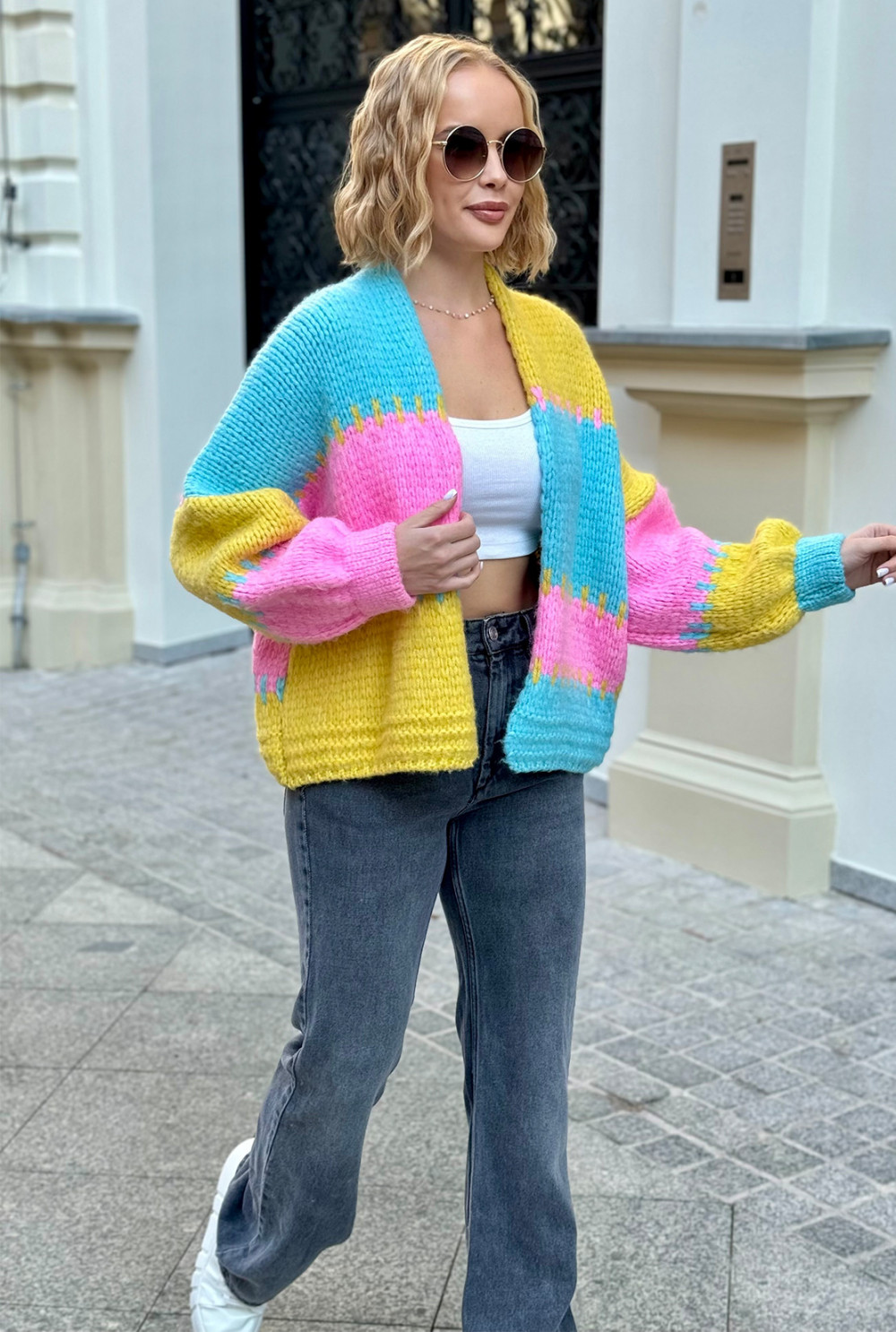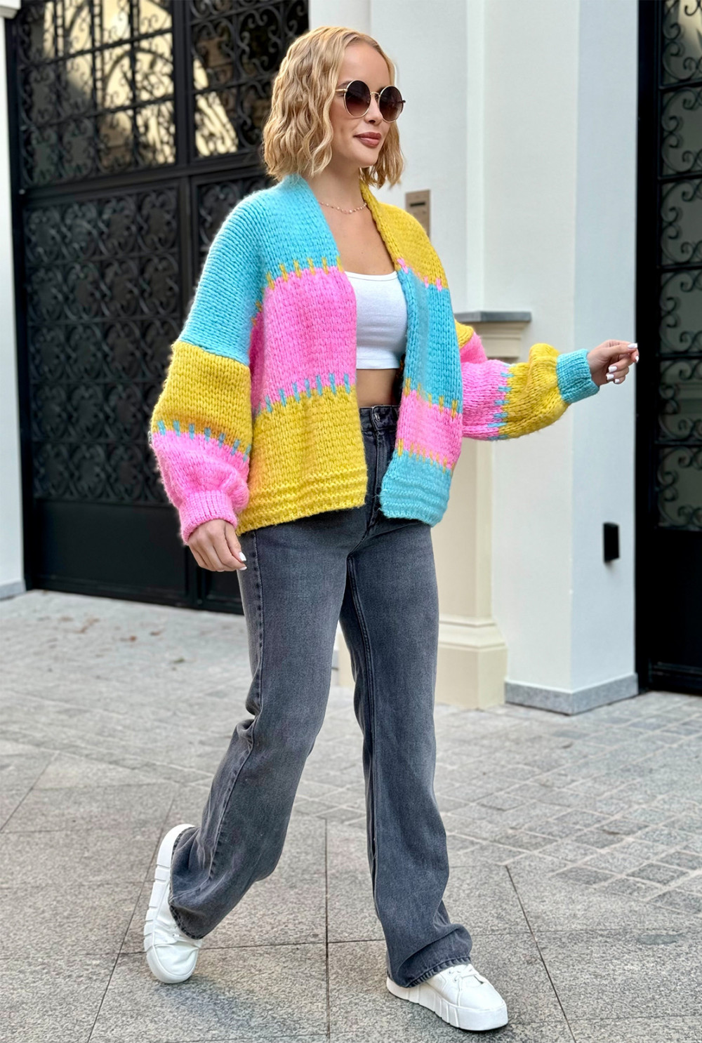 Krótki kardigan oversize Aurora Niebo-cytryna
