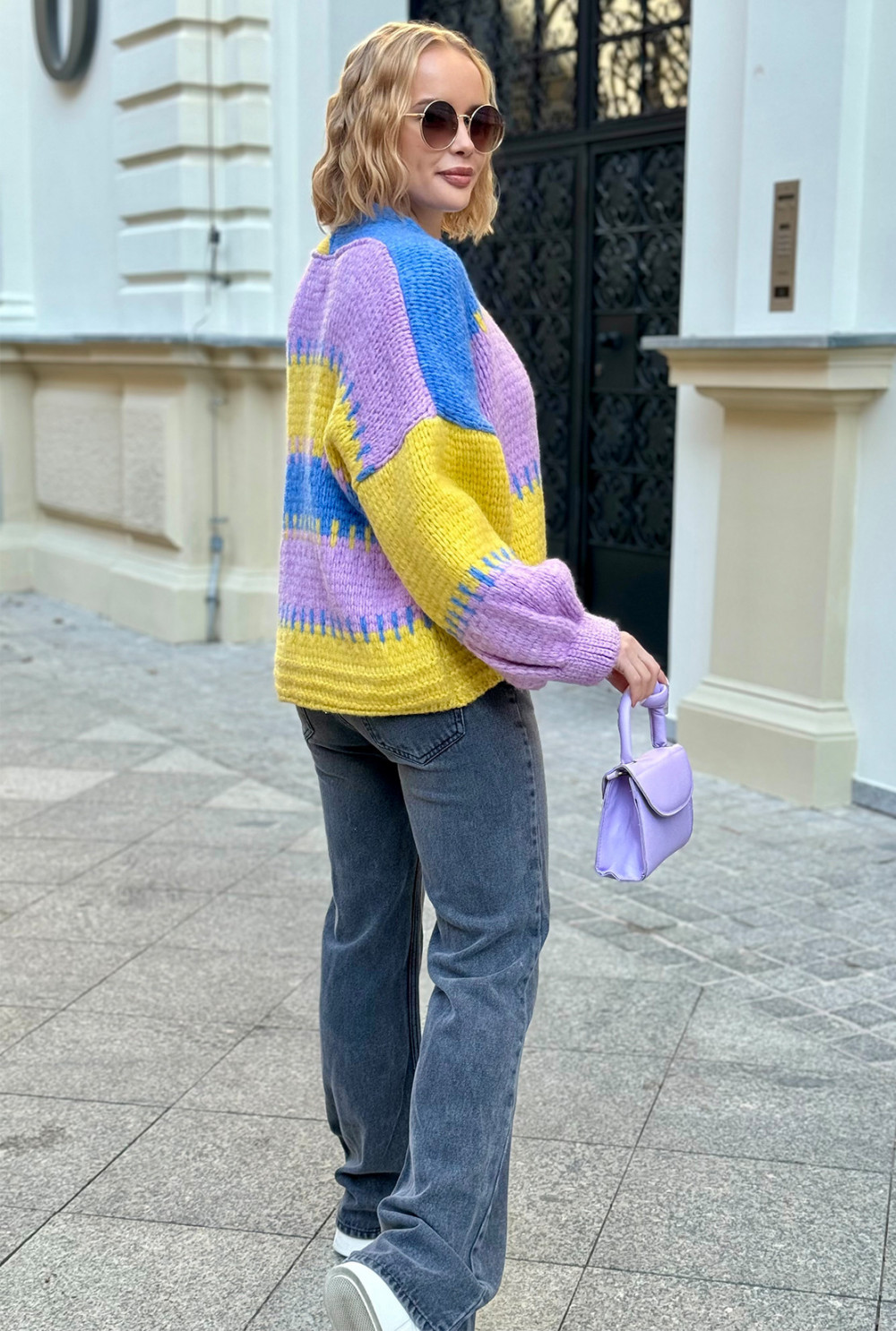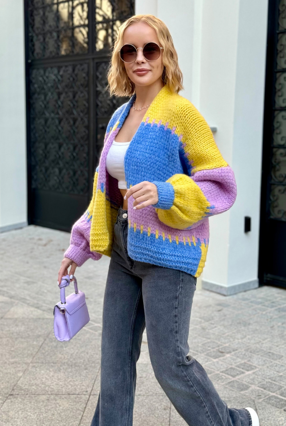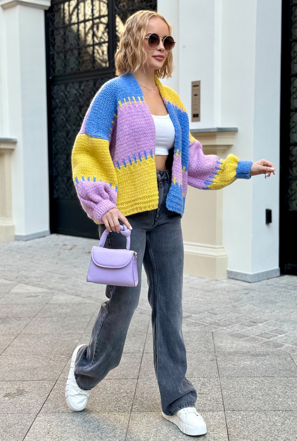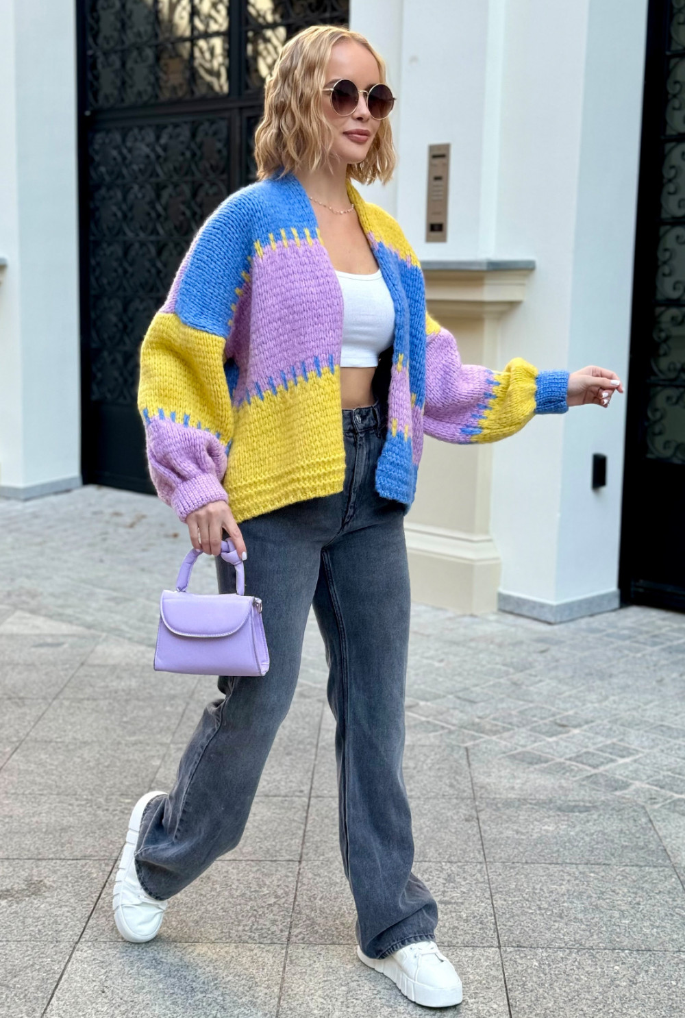 Krótki kardigan oversize Aurora Niebieski-cytryna