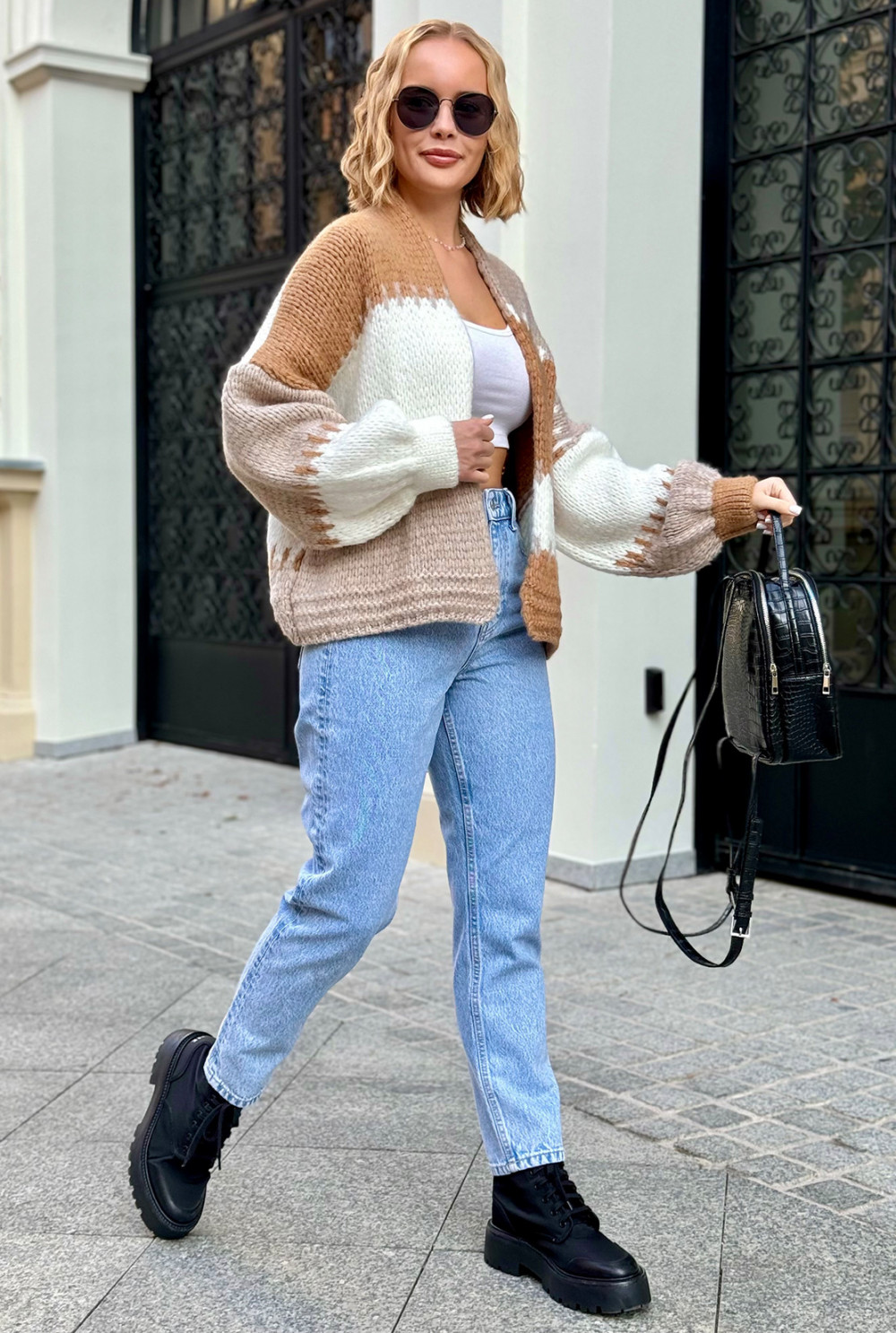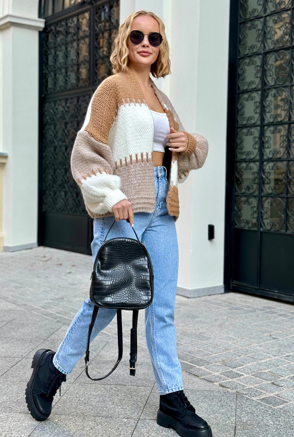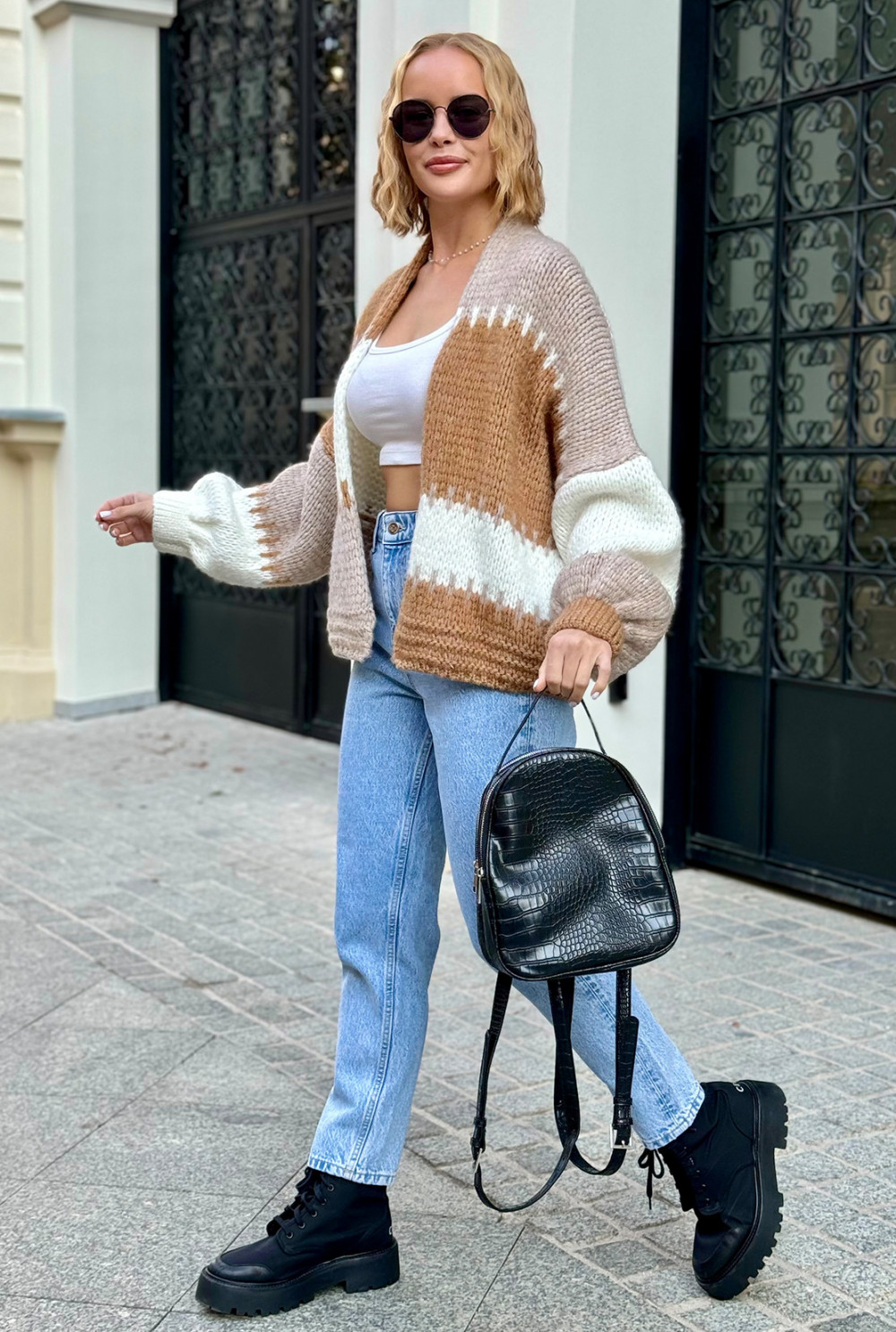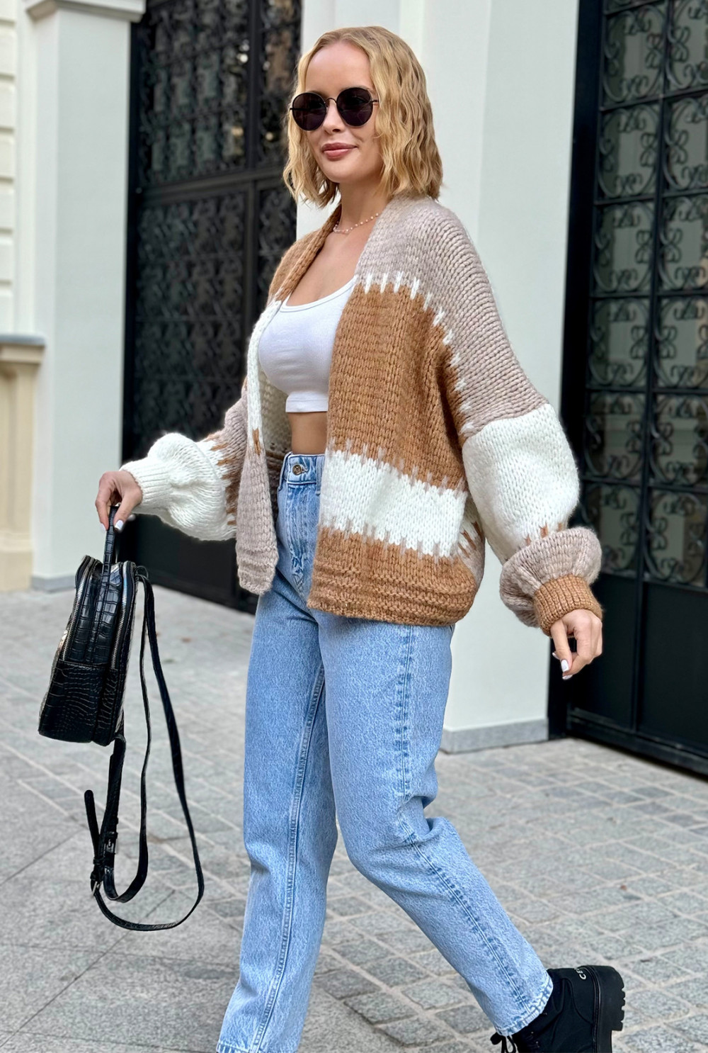Krótki kardigan oversize Aurora Karmel-beż