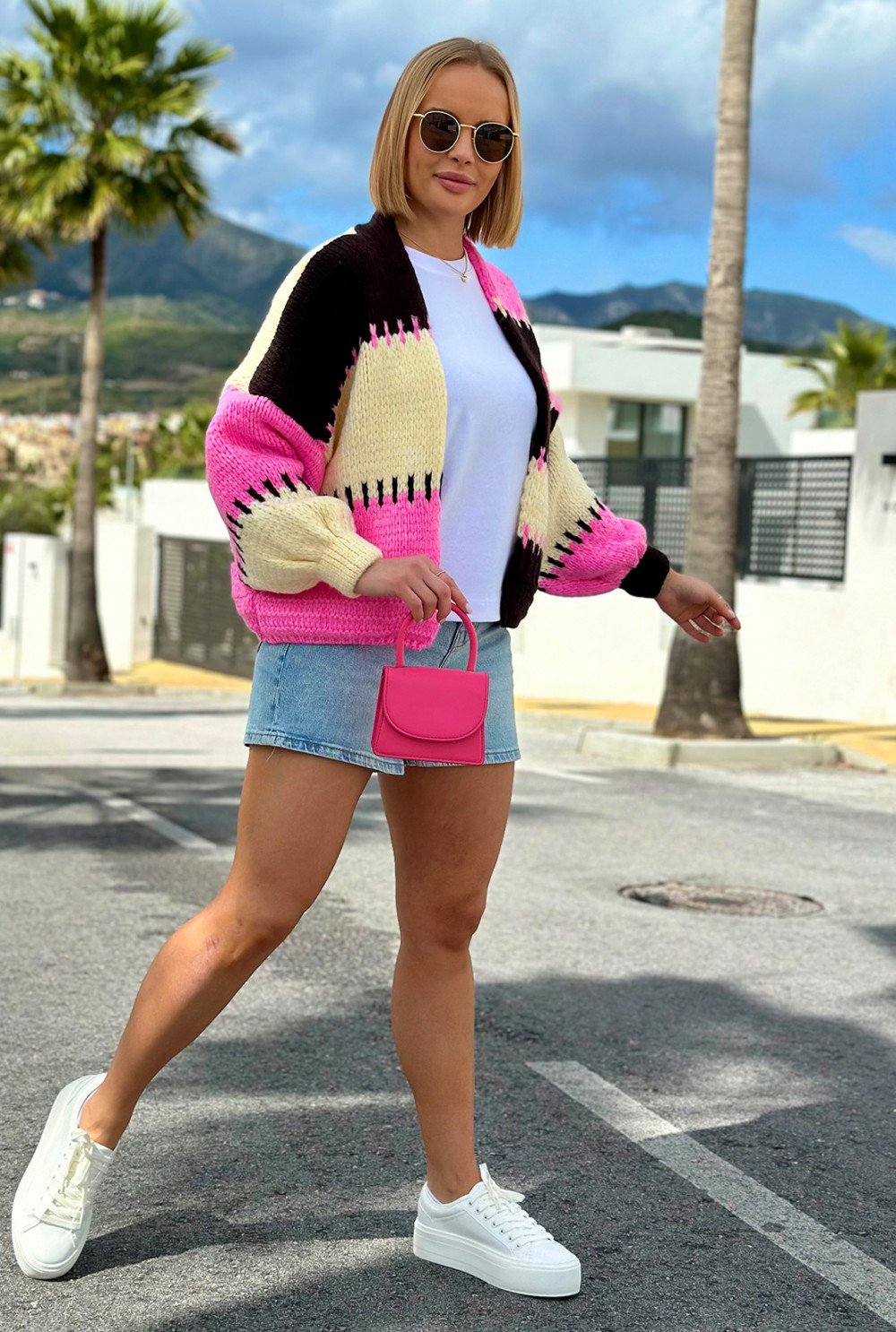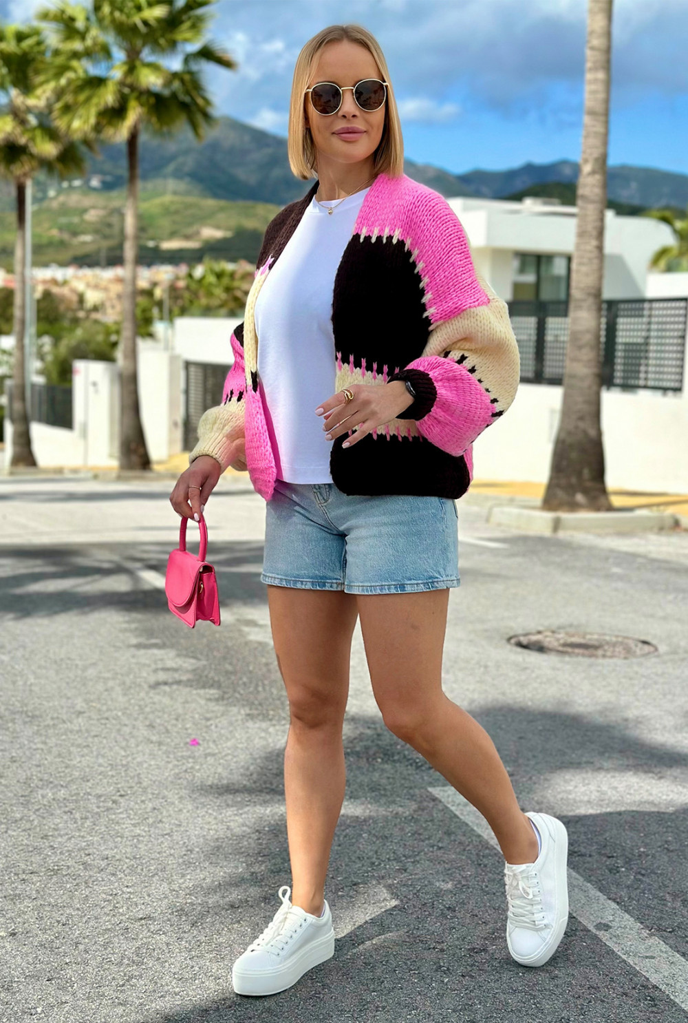 Krótki kardigan oversize Aurora Czekolada-wanilia