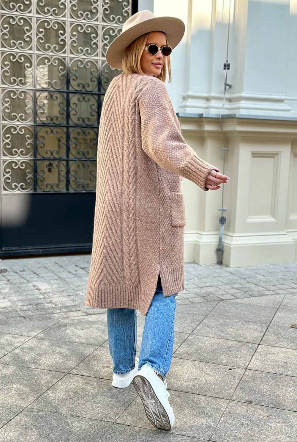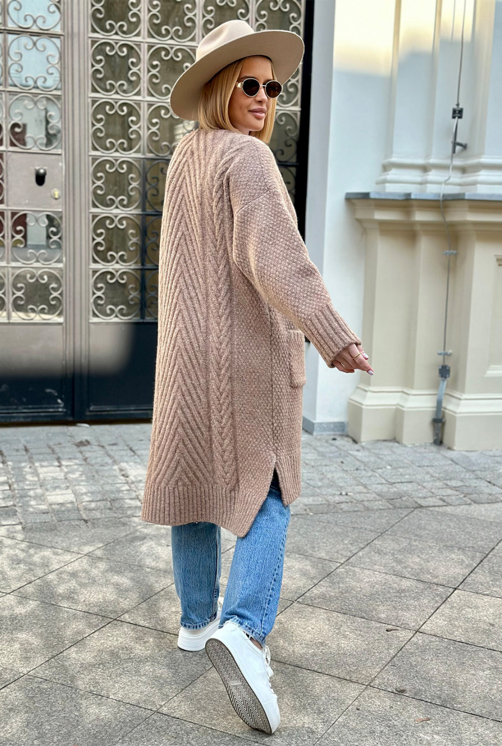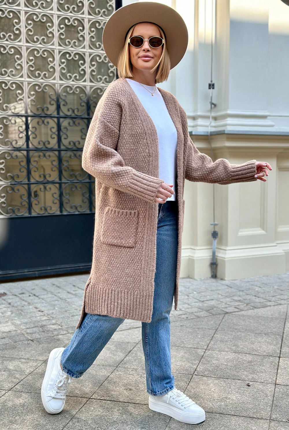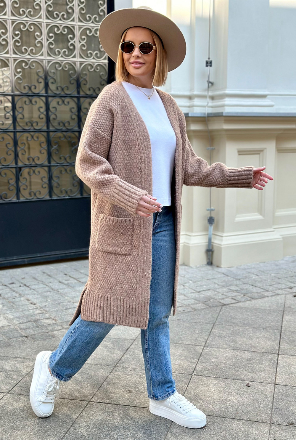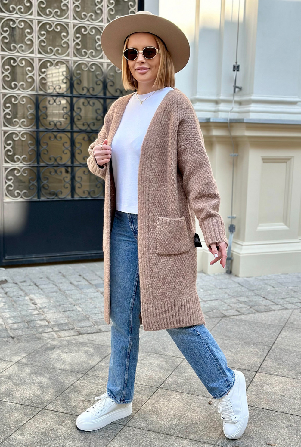 Długi kardigan z kieszeniami Aron Latte