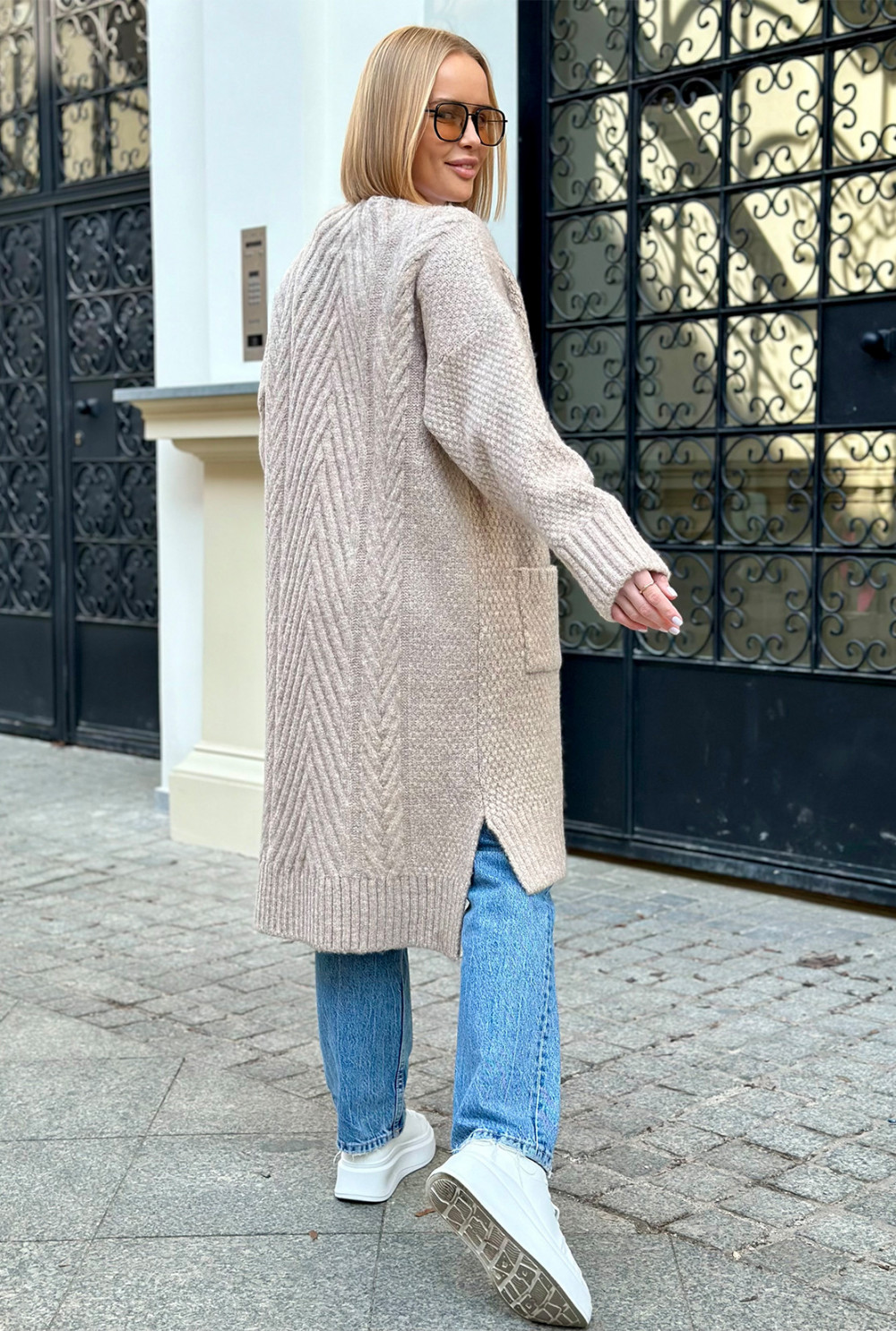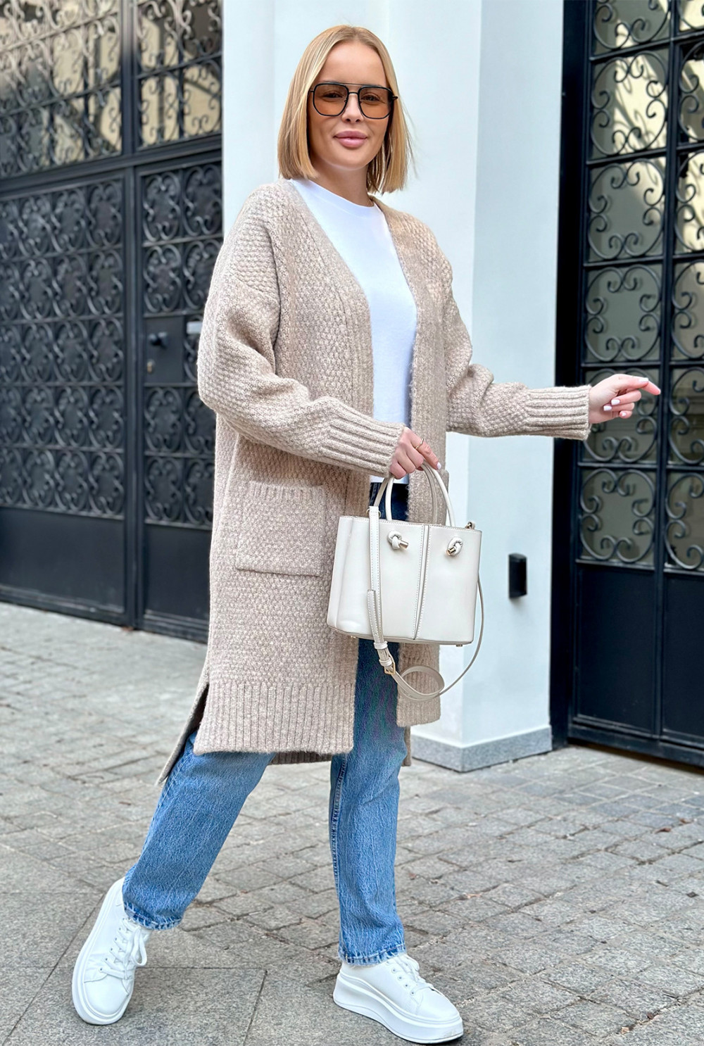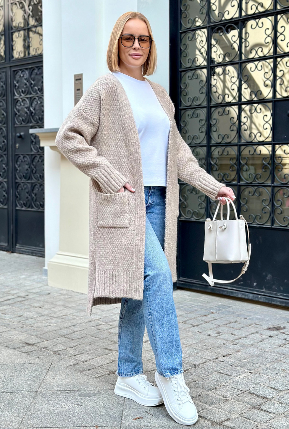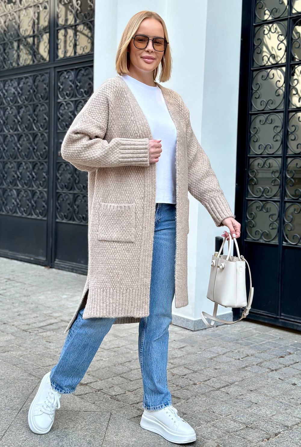 Długi kardigan z kieszeniami Aron Beż