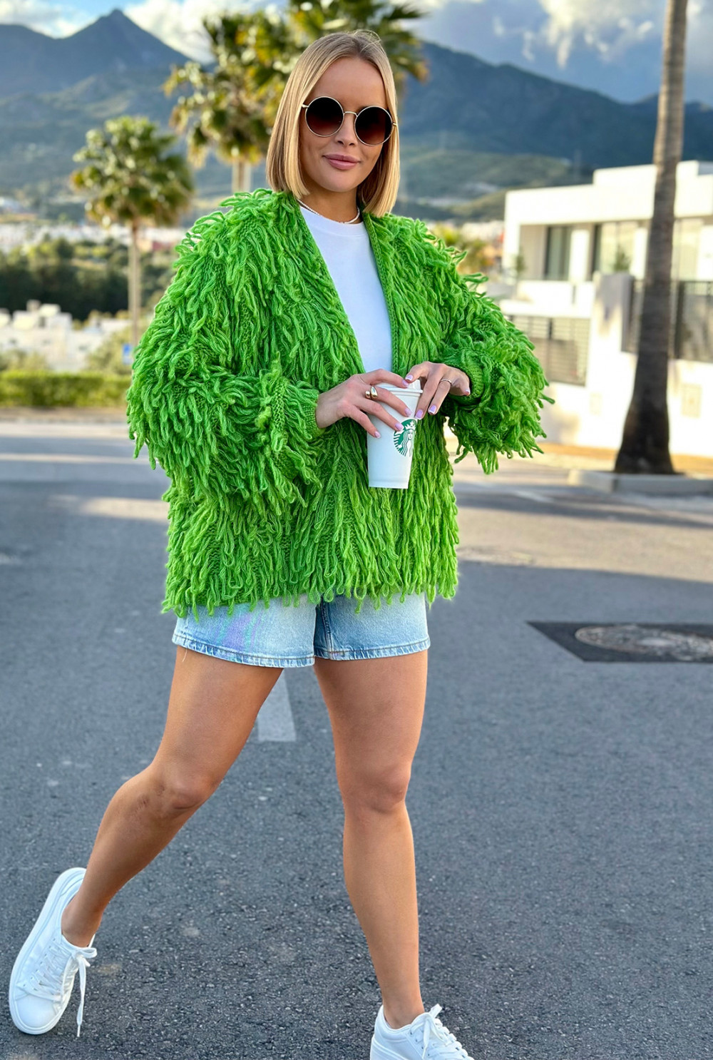 Krótki kardigan z frędzlami to propozycja, która świetnie dopełni looki na chłodniejsze dni. Model jest niezapinany, rękawy wykończone zostały ściągaczami. Kardigan zaprezentuje się fenomenalnie w codziennych stylizacjach. Dostępny w wielu wersjach kolorystycznych.