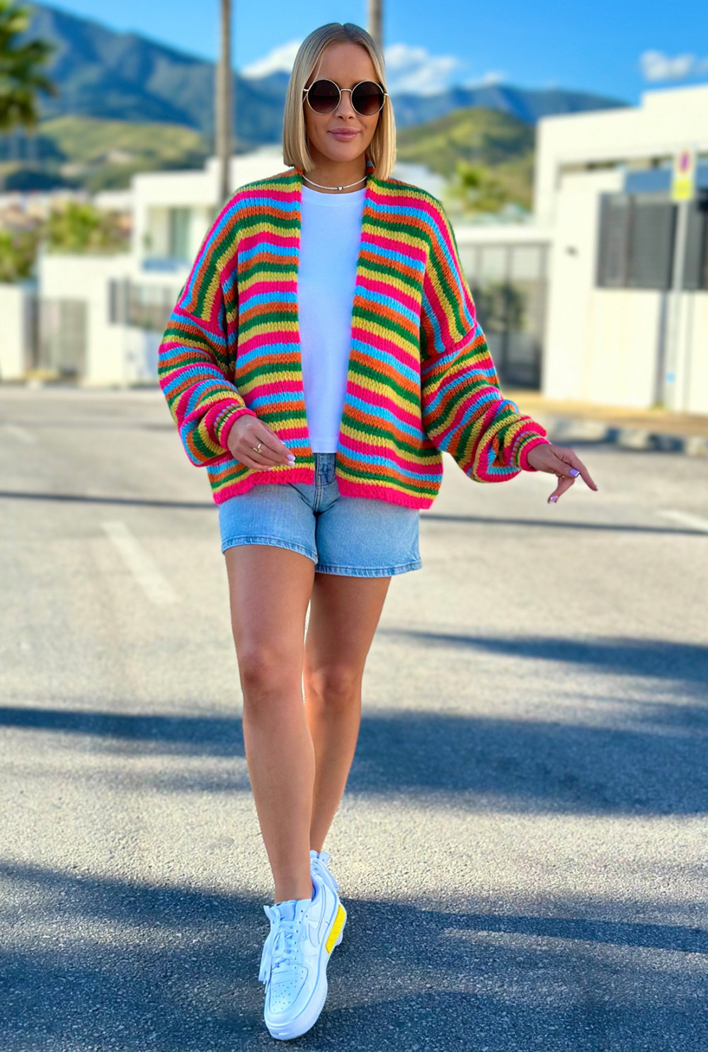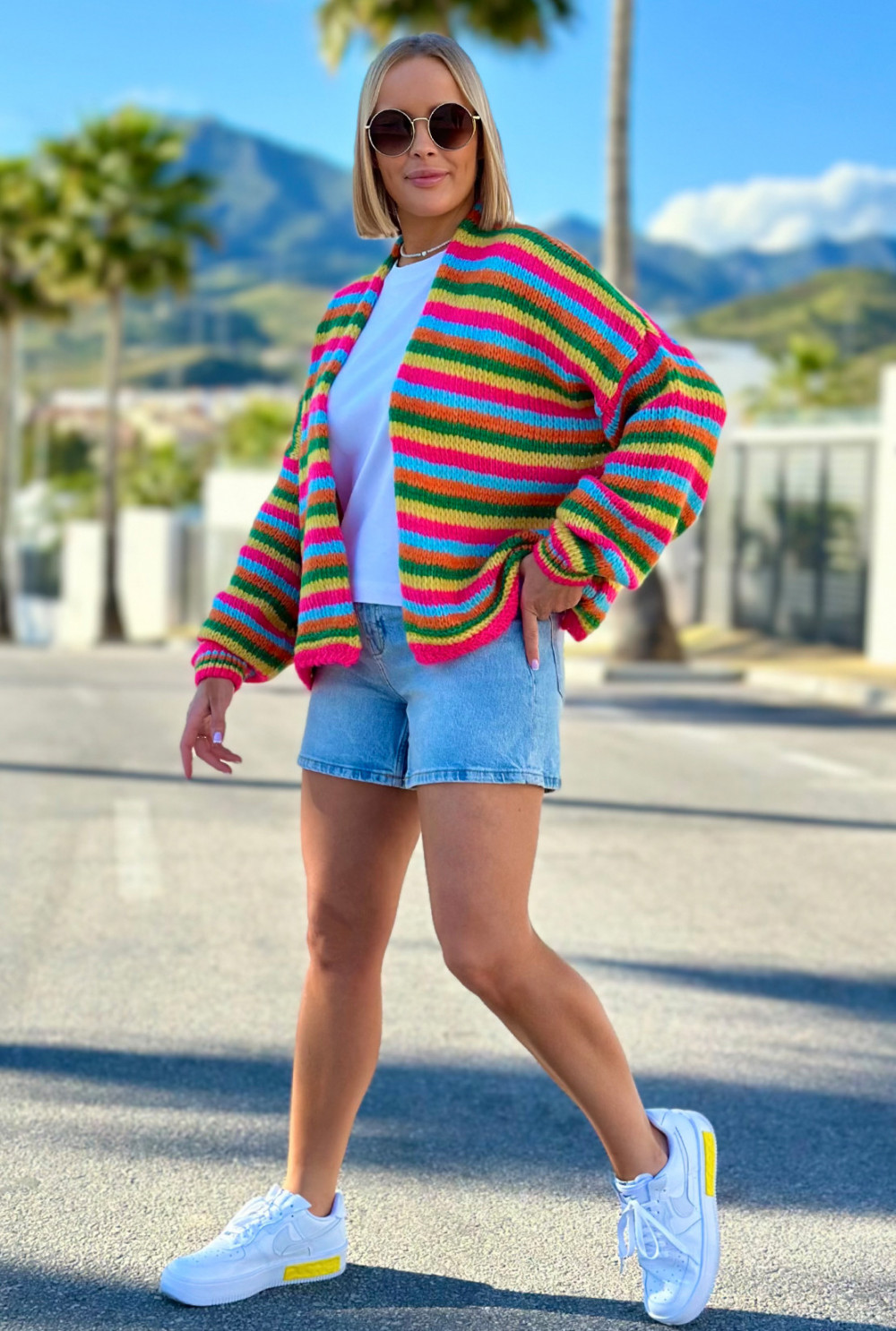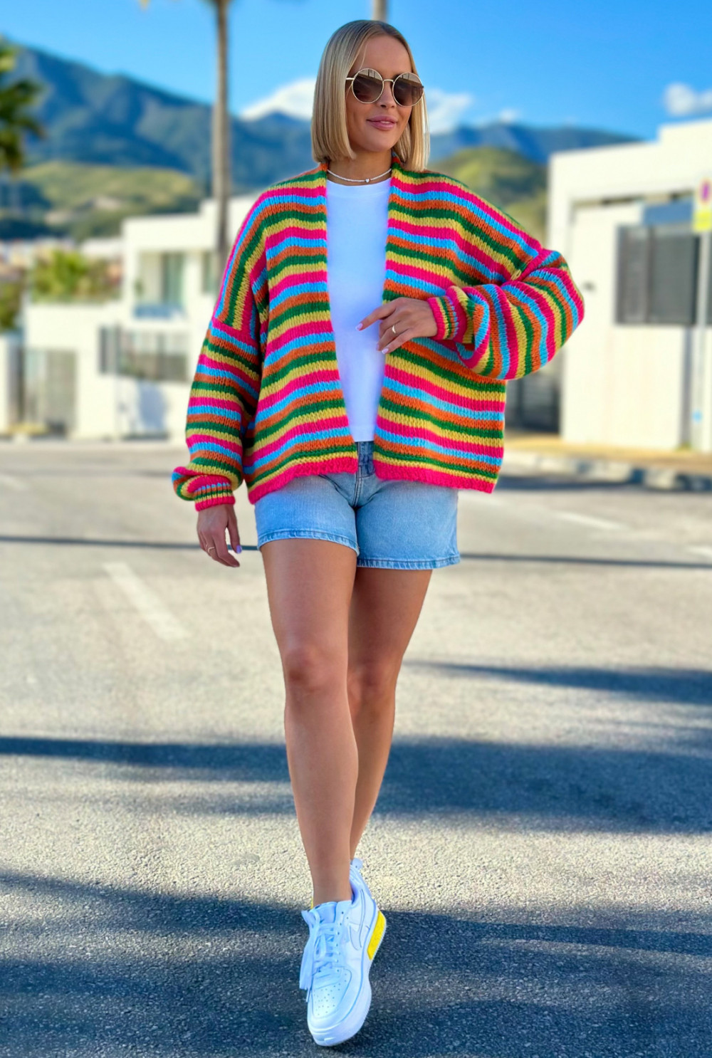 Krótki kardigan Pinacolada Fuksja-cytryna-zielony