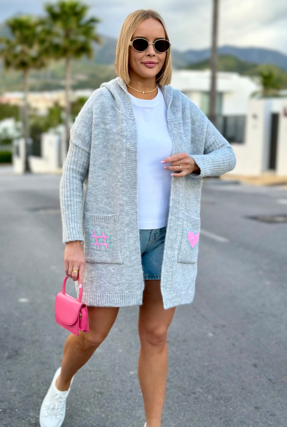 Kardigan oversize z kapturem Marbella x Sploty Szary