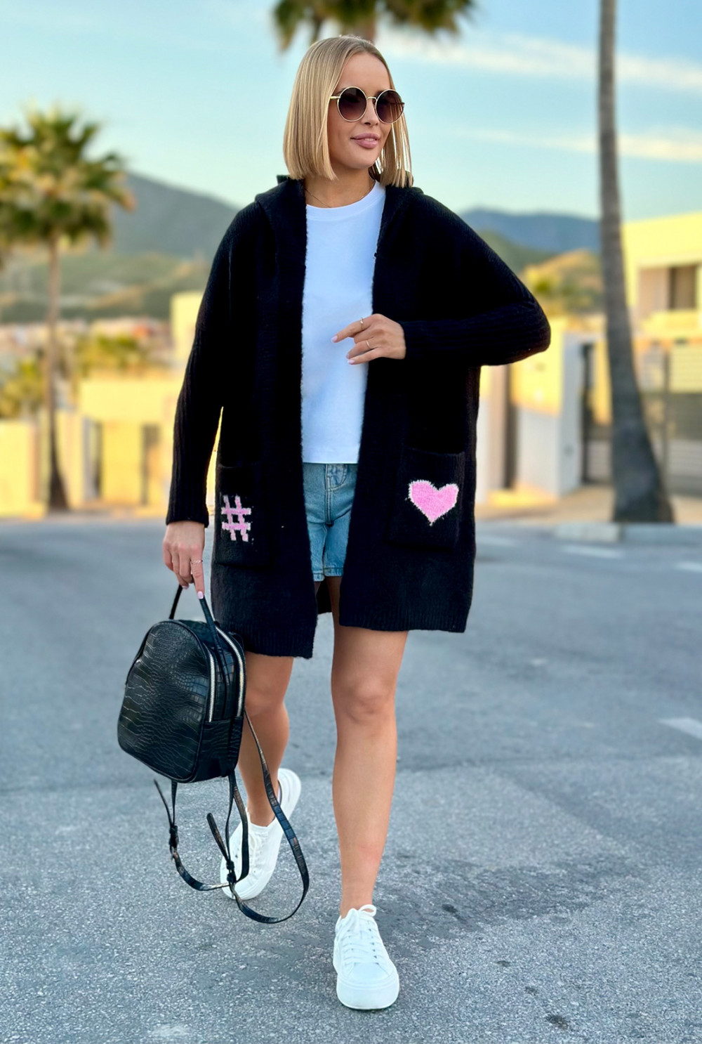 Kardigan oversize z kapturem Marbella x Sploty Czarny-baby róż