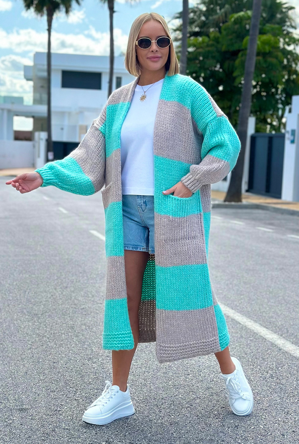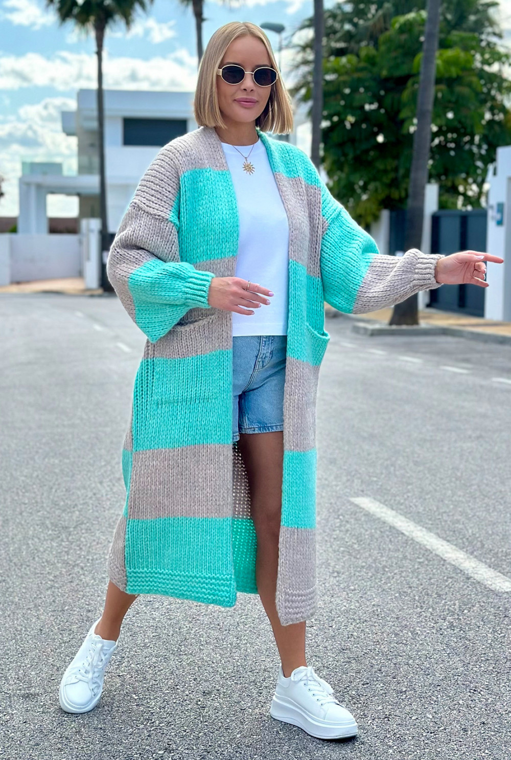 Wyjątkowo miękki kardigan to propozycja, która koniecznie powinna znaleźć się w każdej garderobie! Wyróżnia się szerokimi rękawami, które wykończone zostały ściągaczami. Wyraziste kolory nadają całości charakteru i świetnie wpisują się w codzienny luz. Produkt wykonany został z wysokiej jakości materiału, dostępny jest w wielu wariantach kolorystycznych.