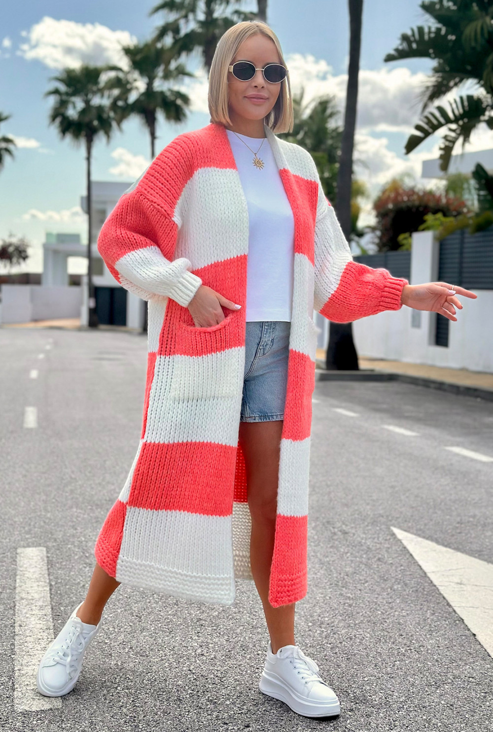 Wyjątkowo miękki kardigan to propozycja, która koniecznie powinna znaleźć się w każdej garderobie! Wyróżnia się szerokimi rękawami, które wykończone zostały ściągaczami. Wyraziste kolory nadają całości charakteru i świetnie wpisują się w codzienny luz. Produkt wykonany został z wysokiej jakości materiału, dostępny jest w wielu wariantach kolorystycznych.