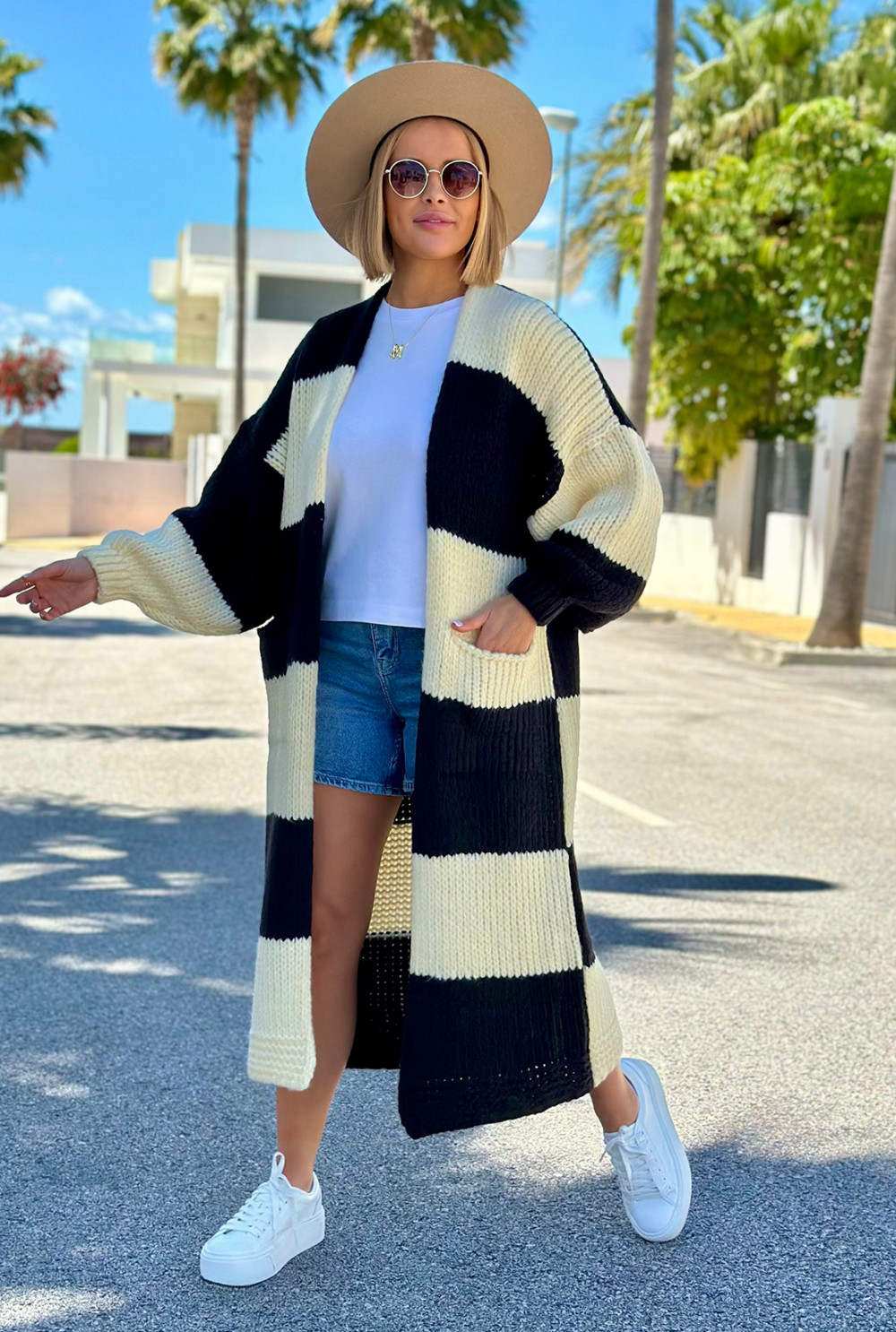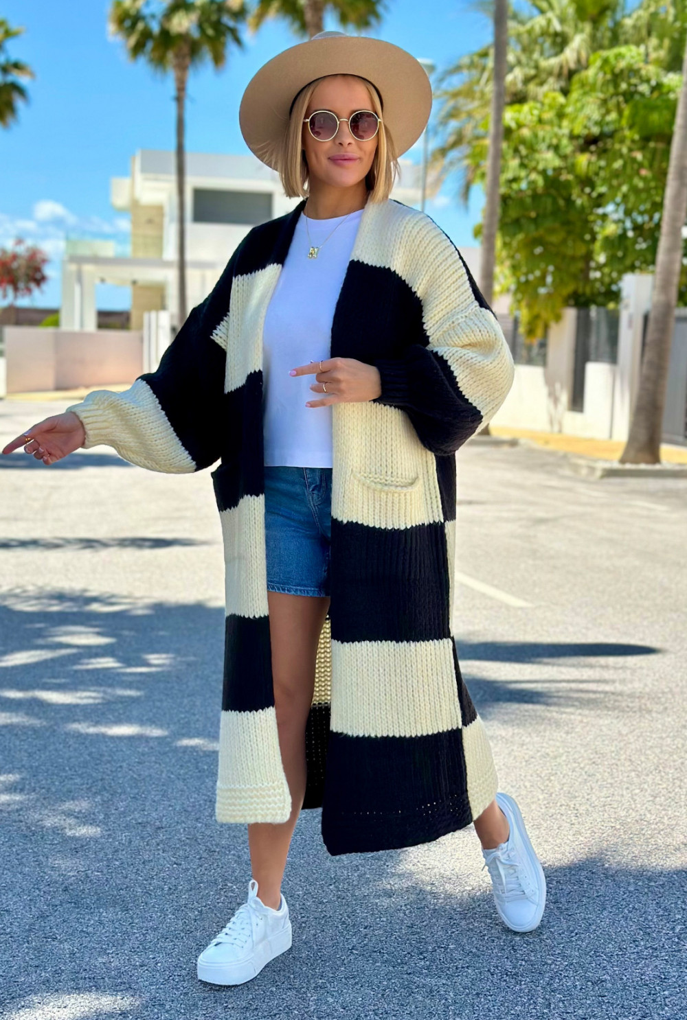 Długi kardigan oversize Agnes Wanilia-czarny