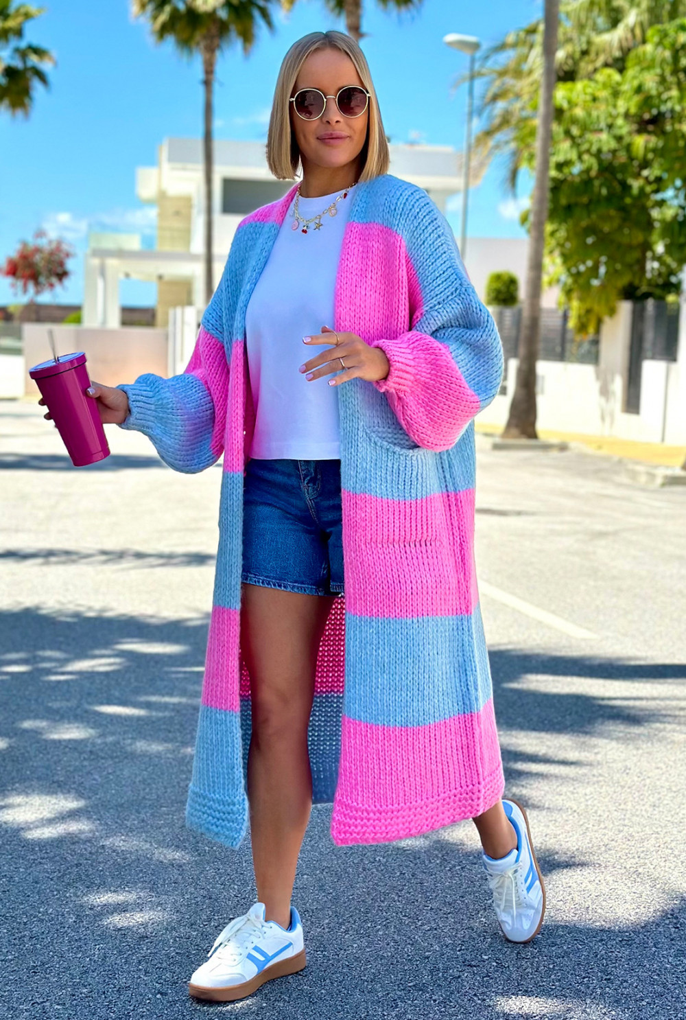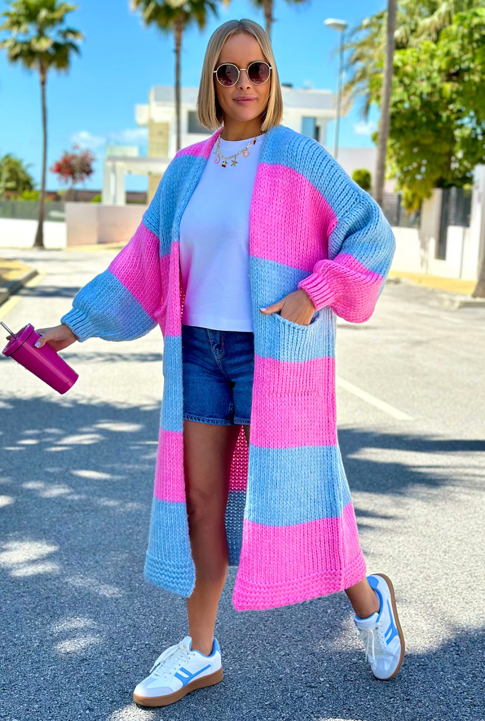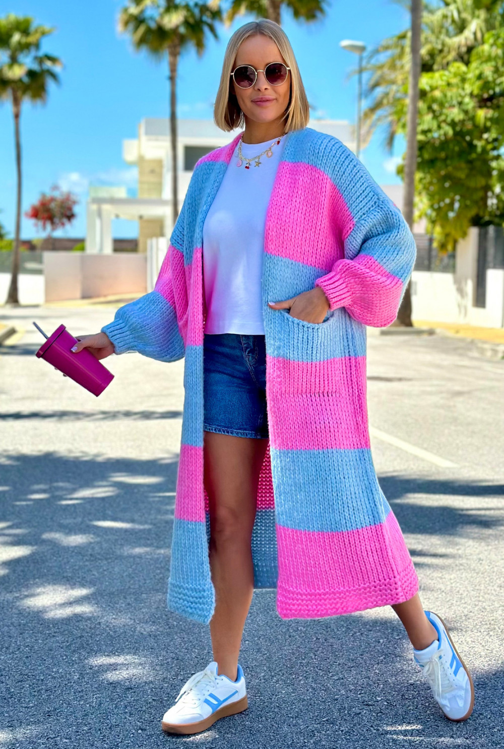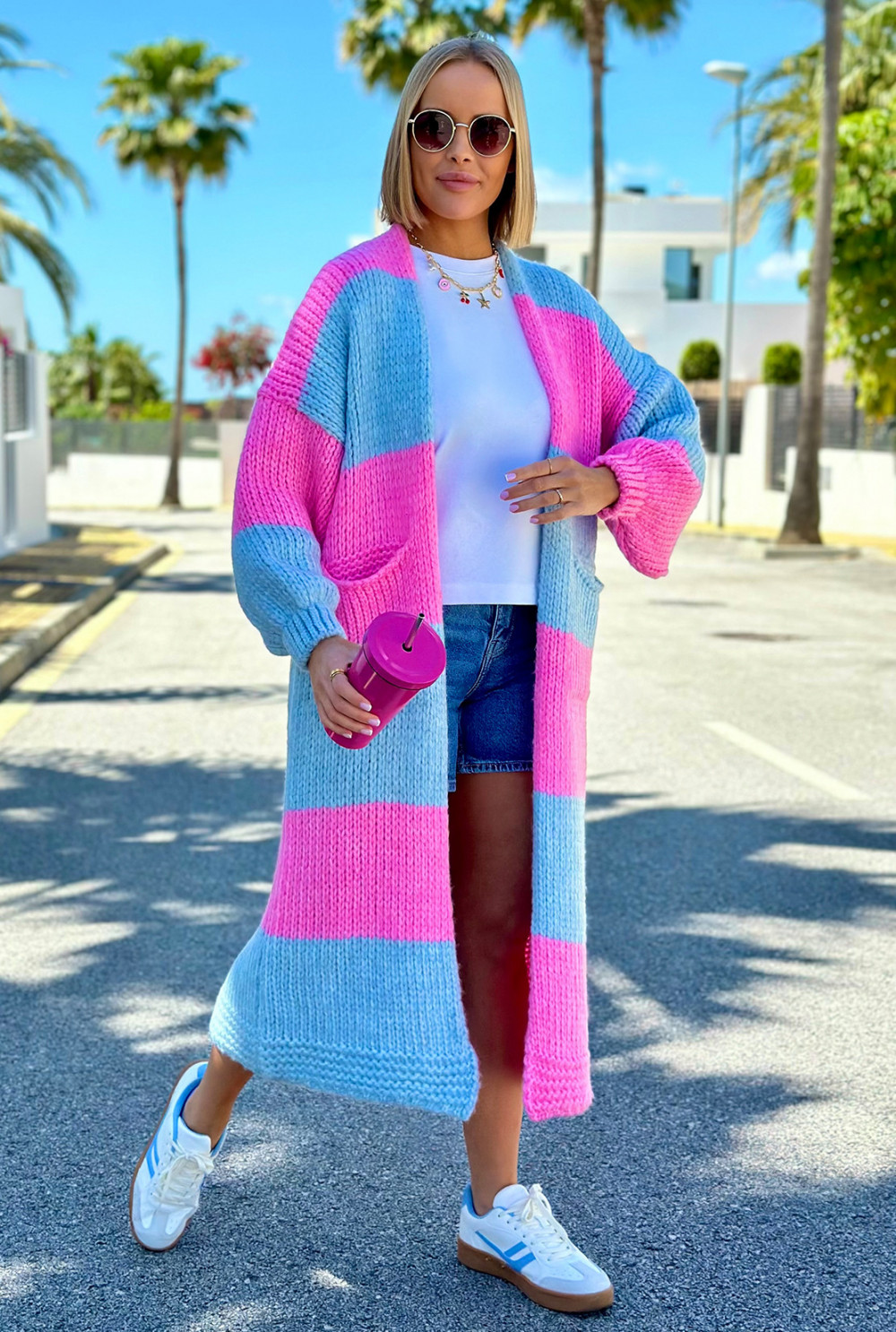 Wyjątkowo miękki kardigan to propozycja, która koniecznie powinna znaleźć się w każdej garderobie! Wyróżnia się szerokimi rękawami, które wykończone zostały ściągaczami. Wyraziste kolory nadają całości charakteru i świetnie wpisują się w codzienny luz. Produkt wykonany został z wysokiej jakości materiału, dostępny jest w wielu wariantach kolorystycznych.