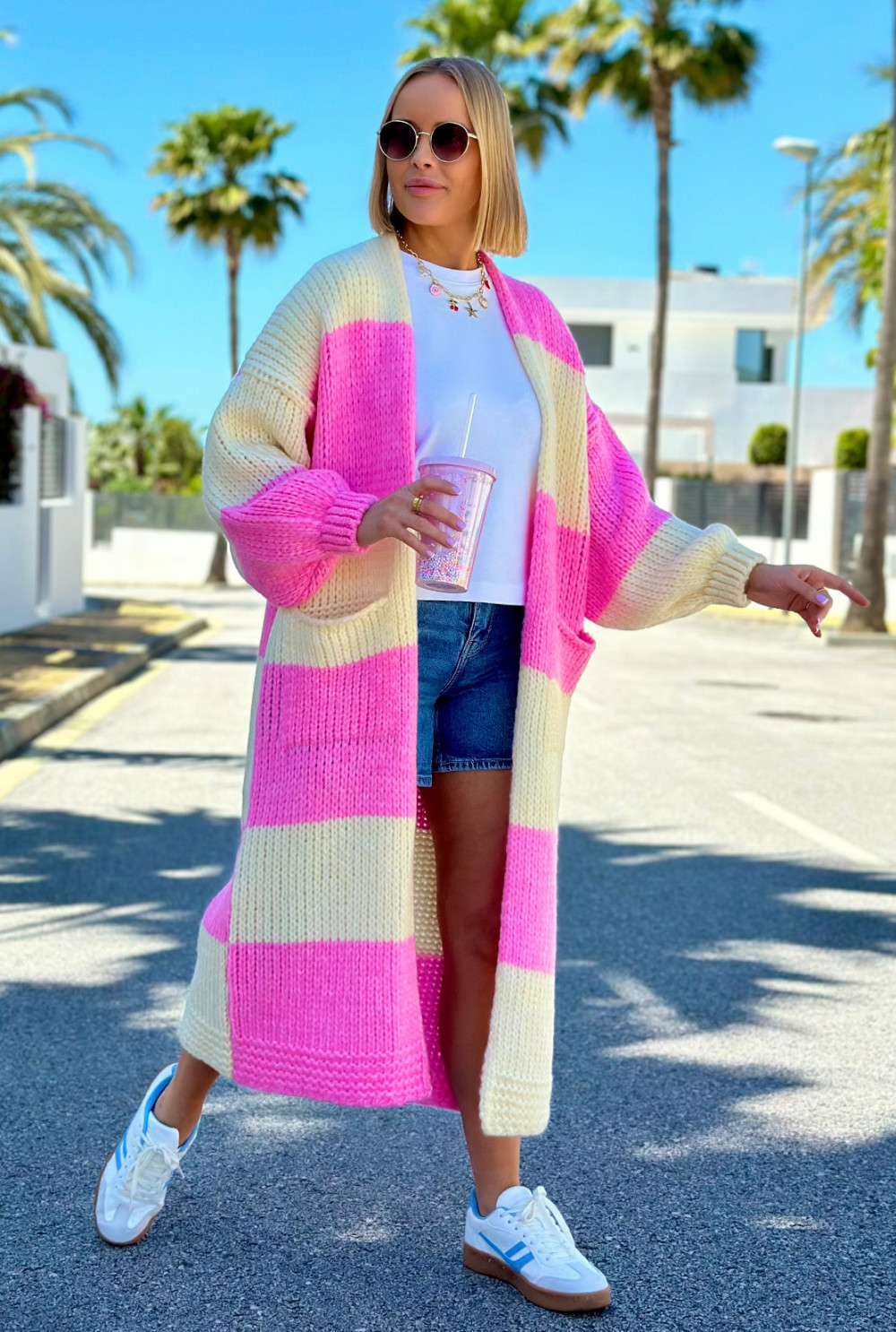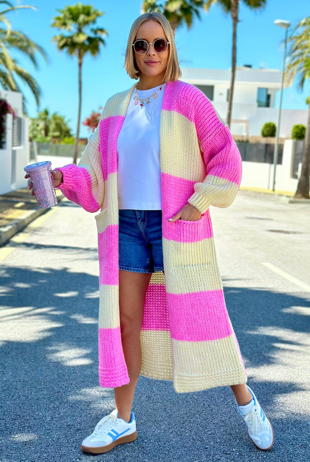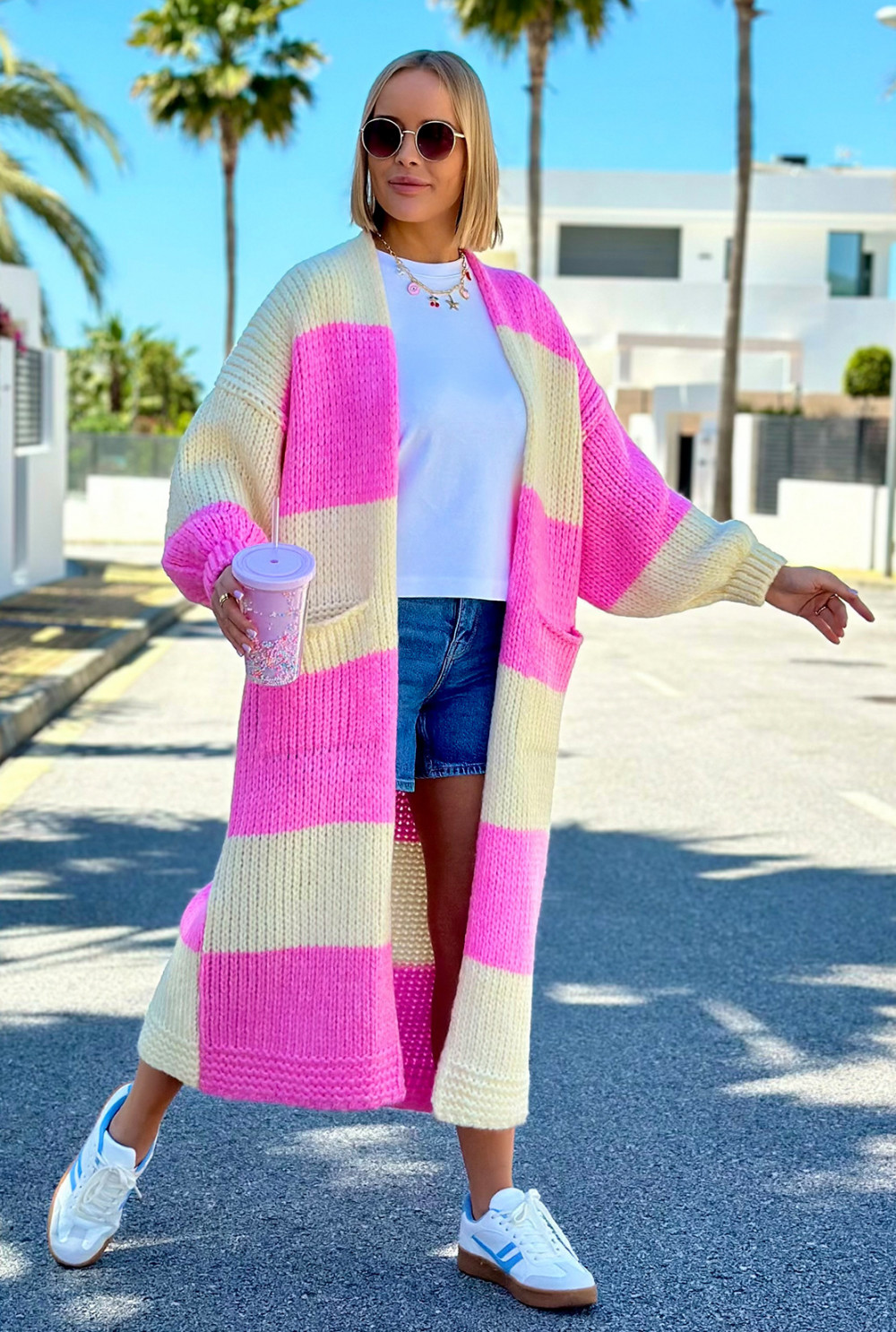 Długi kardigan oversize Agnes Baby róż-wanilia