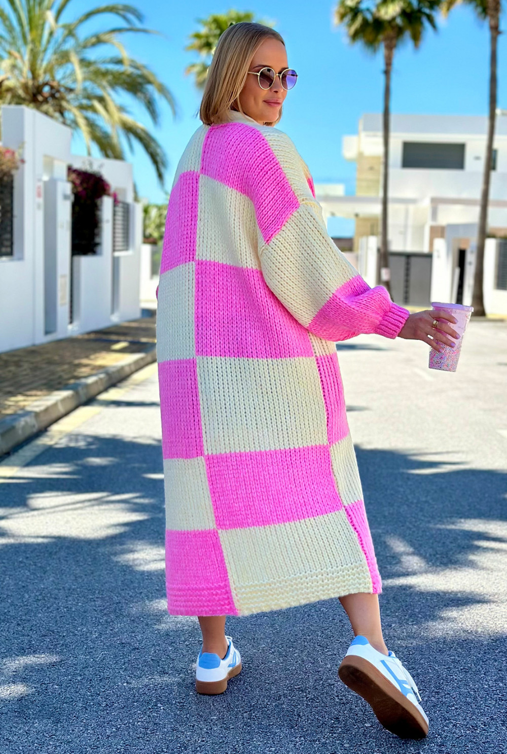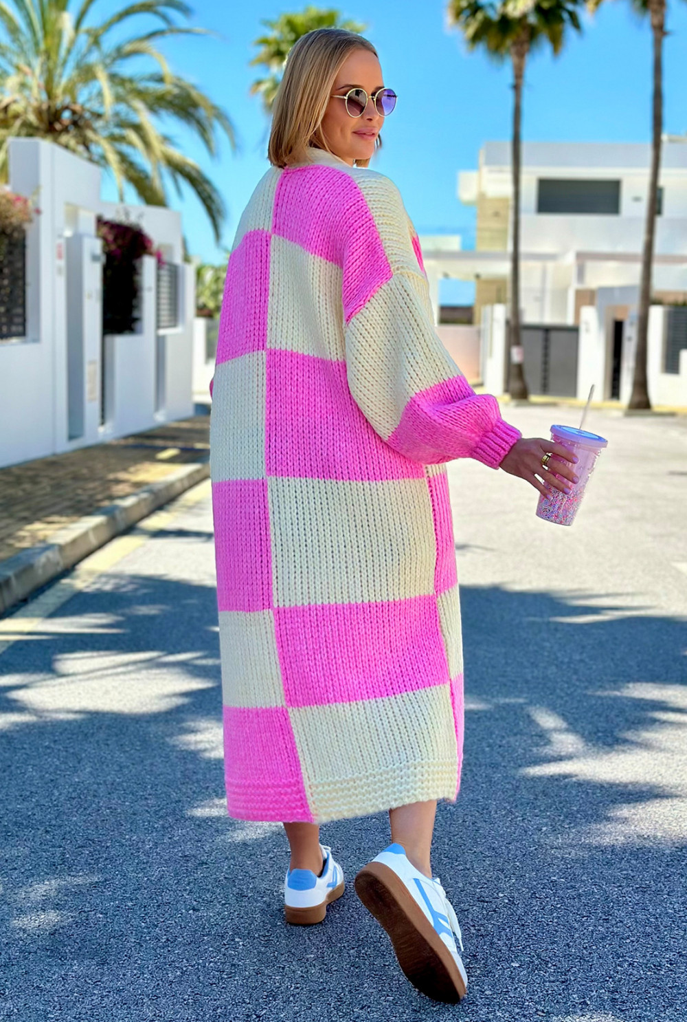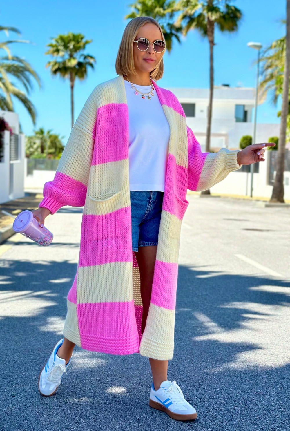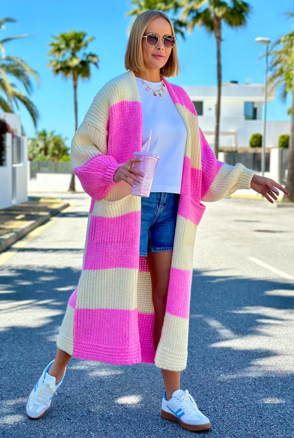 Długi kardigan oversize Agnes Baby róż-wanilia