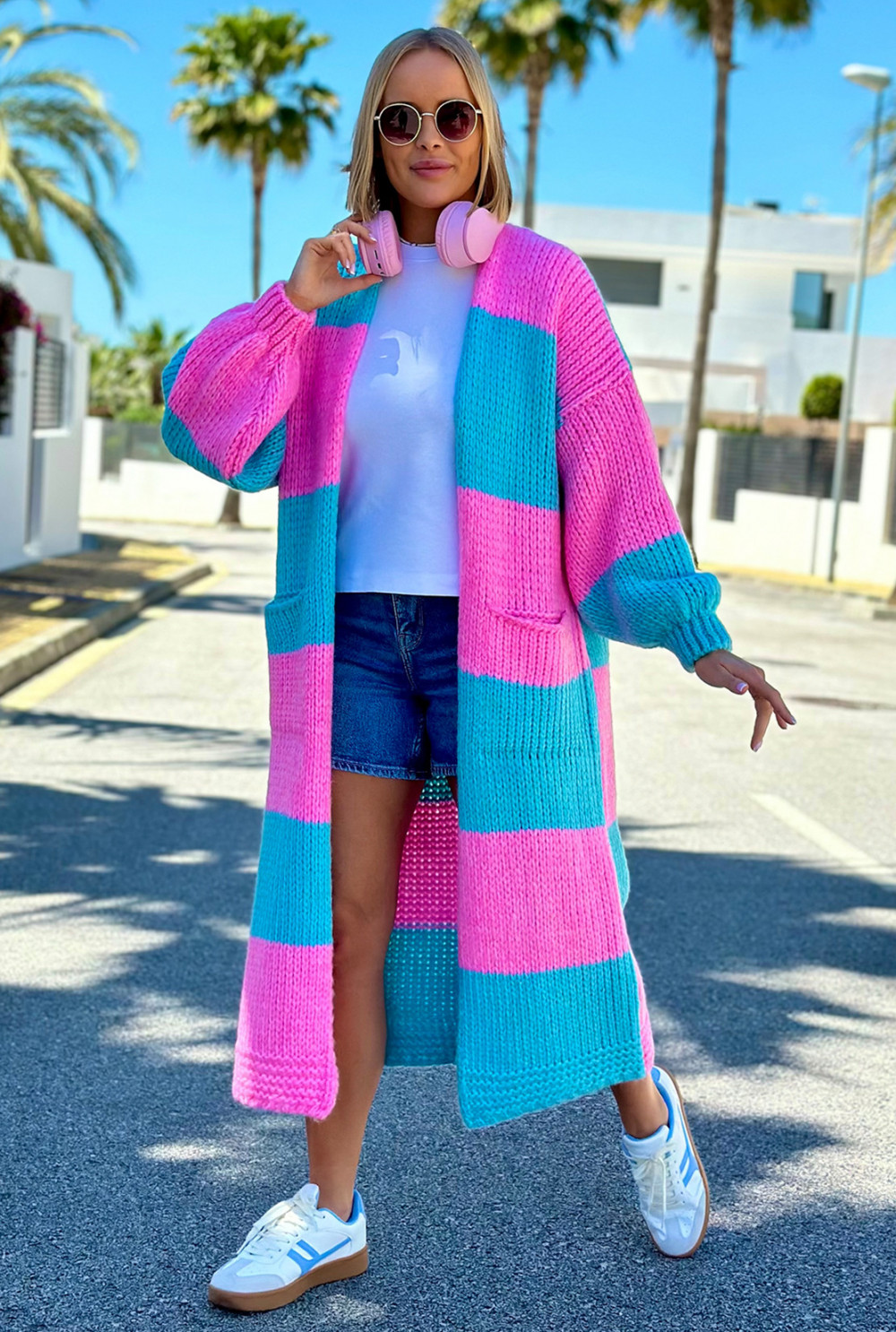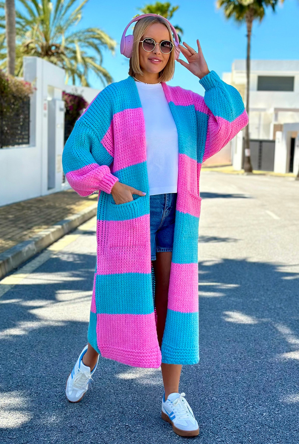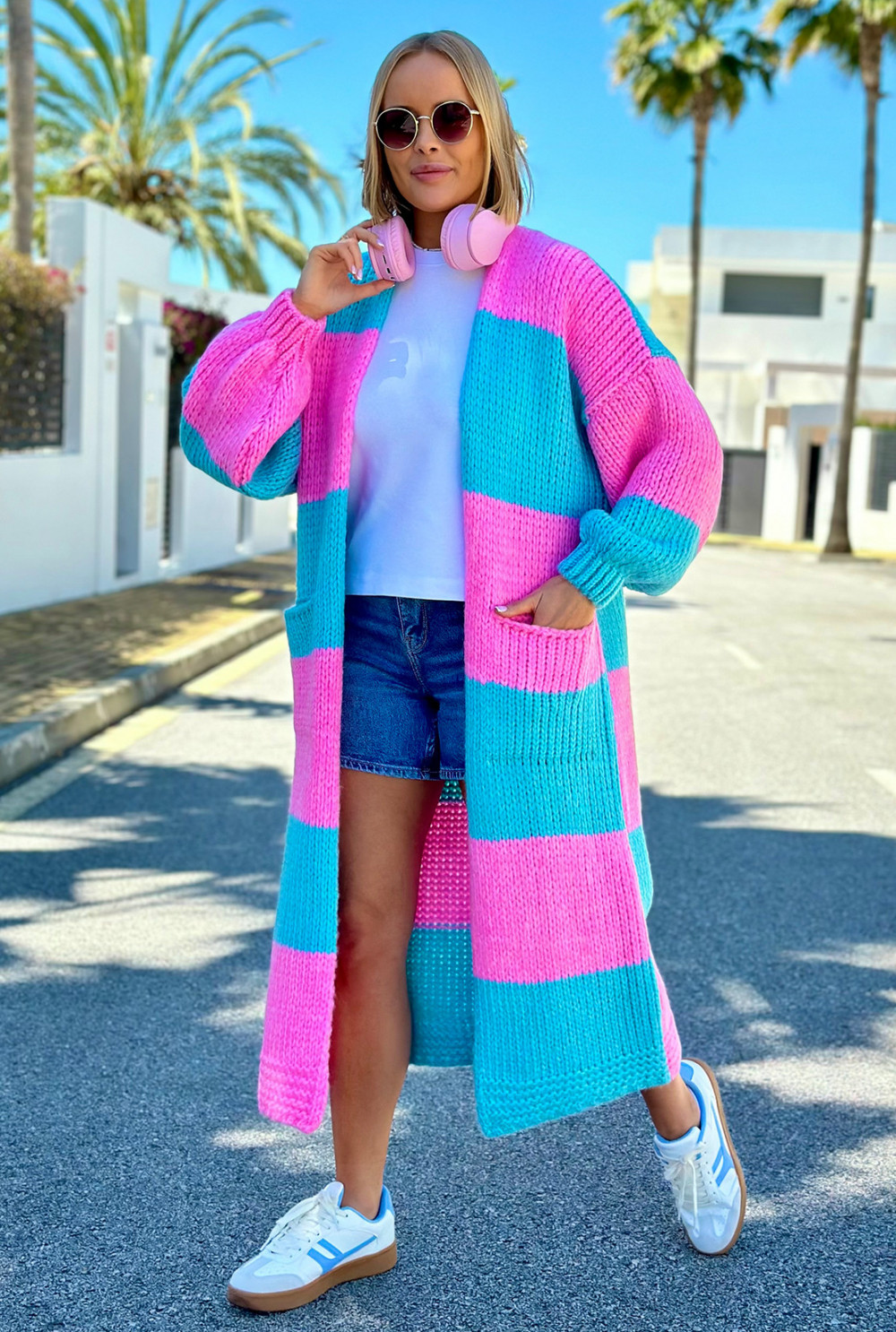 Długi kardigan oversize Agnes Baby róż-niebo