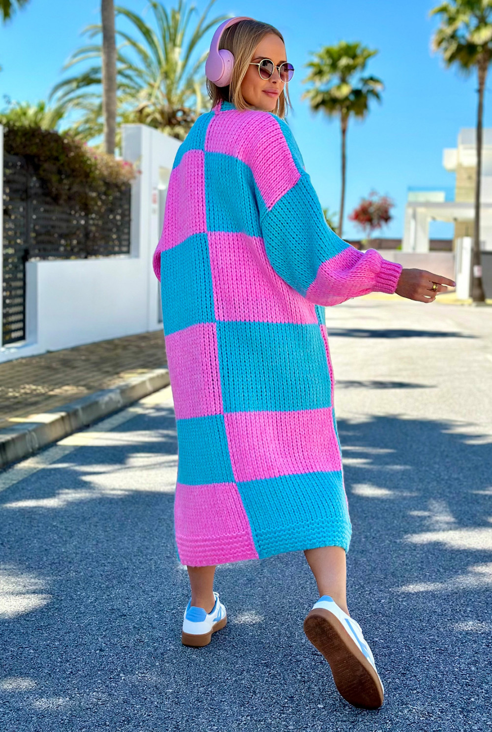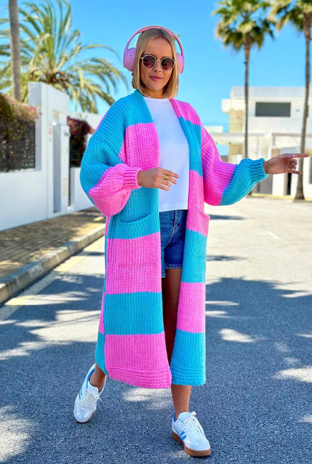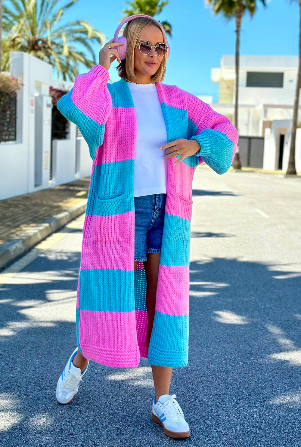 Długi kardigan oversize Agnes Baby róż-niebo