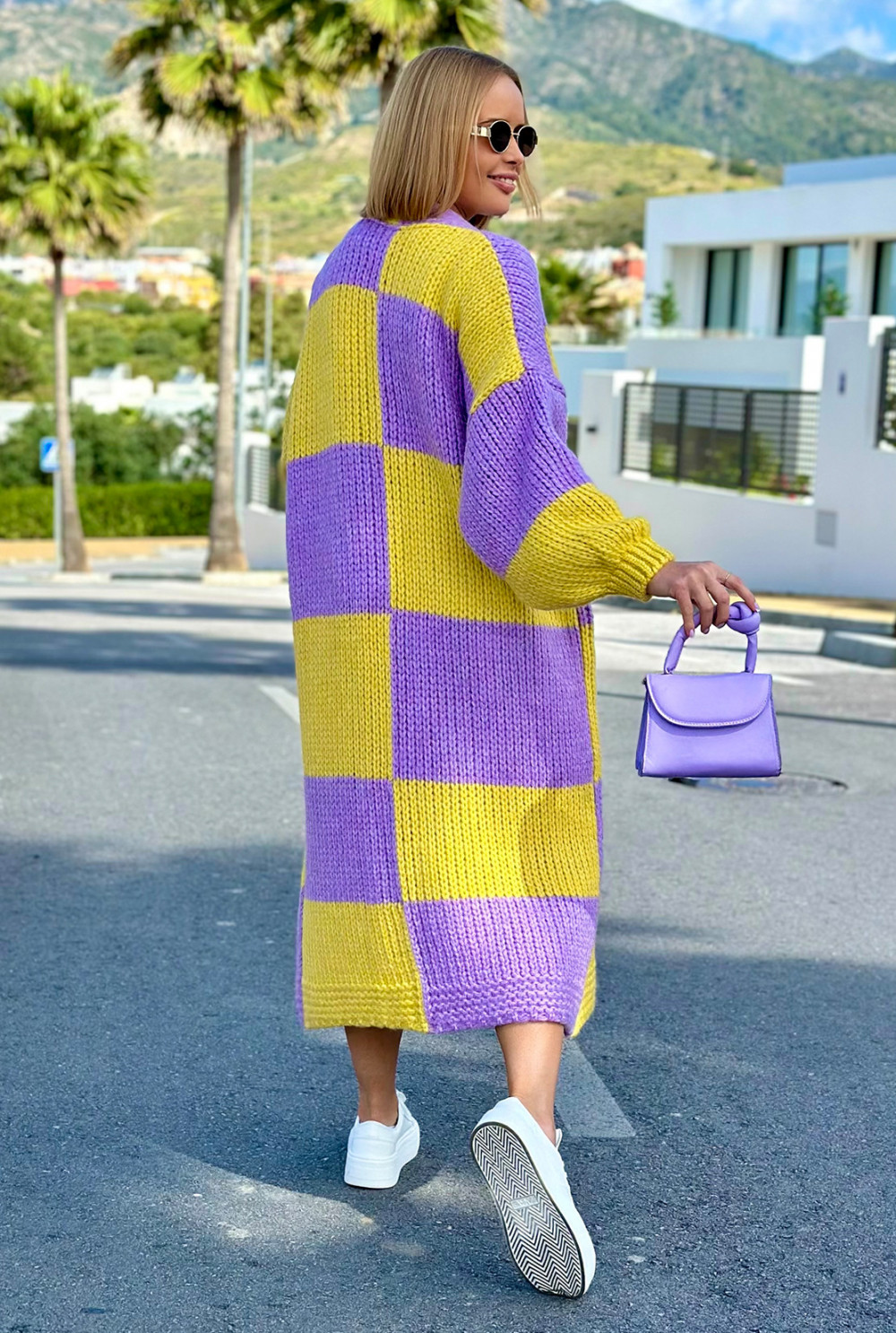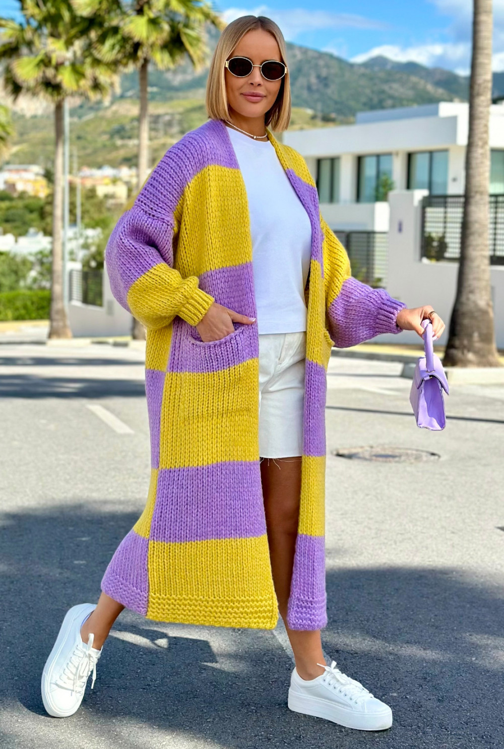 Długi kardigan oversize Agnes Cytryna-lila