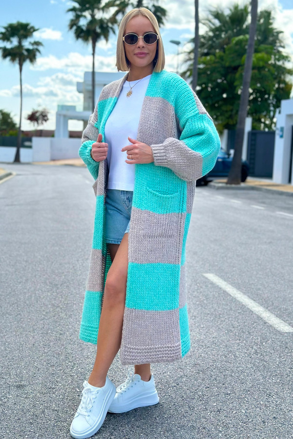 Długi kardigan oversize Agnes Ecru-ciemny szary