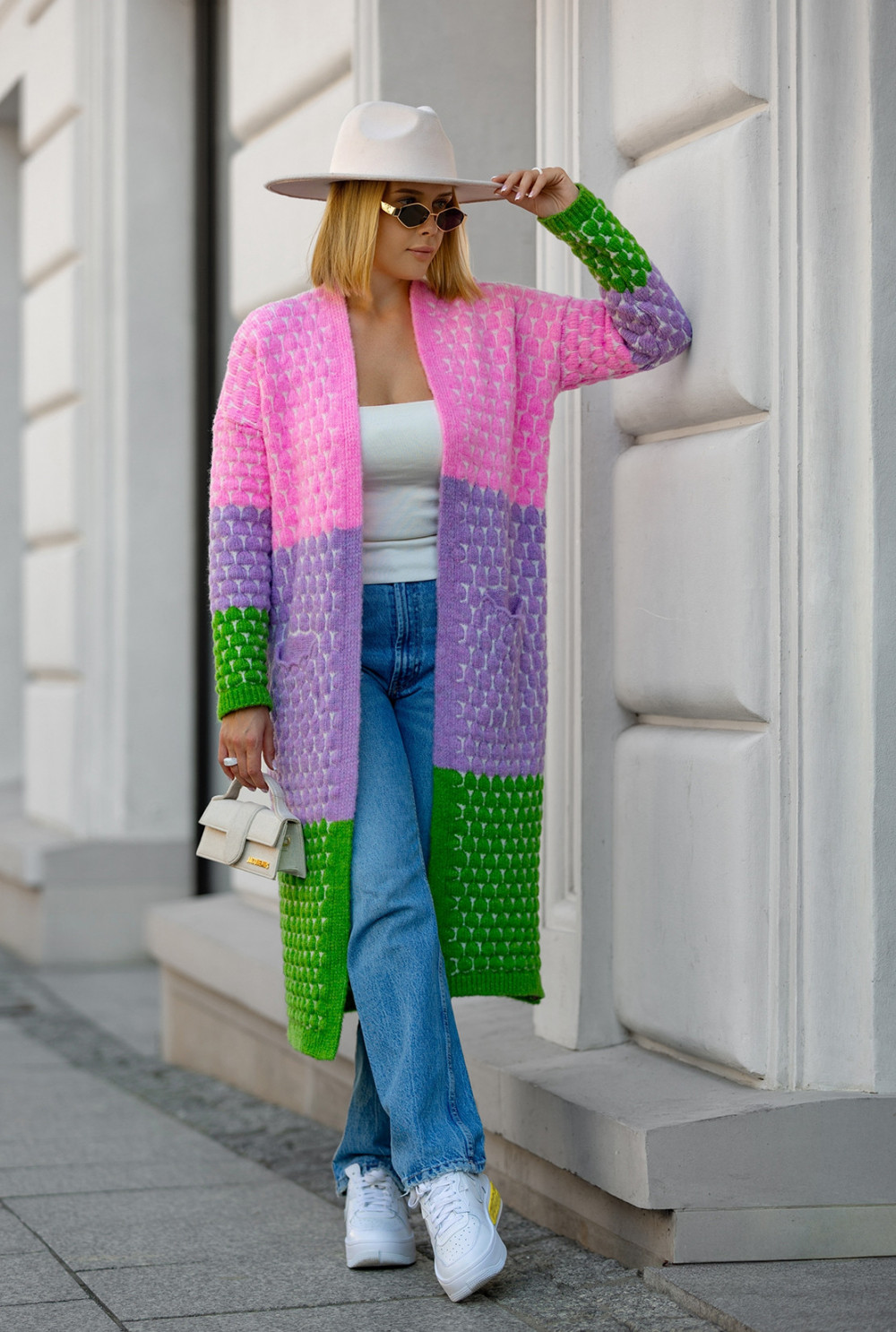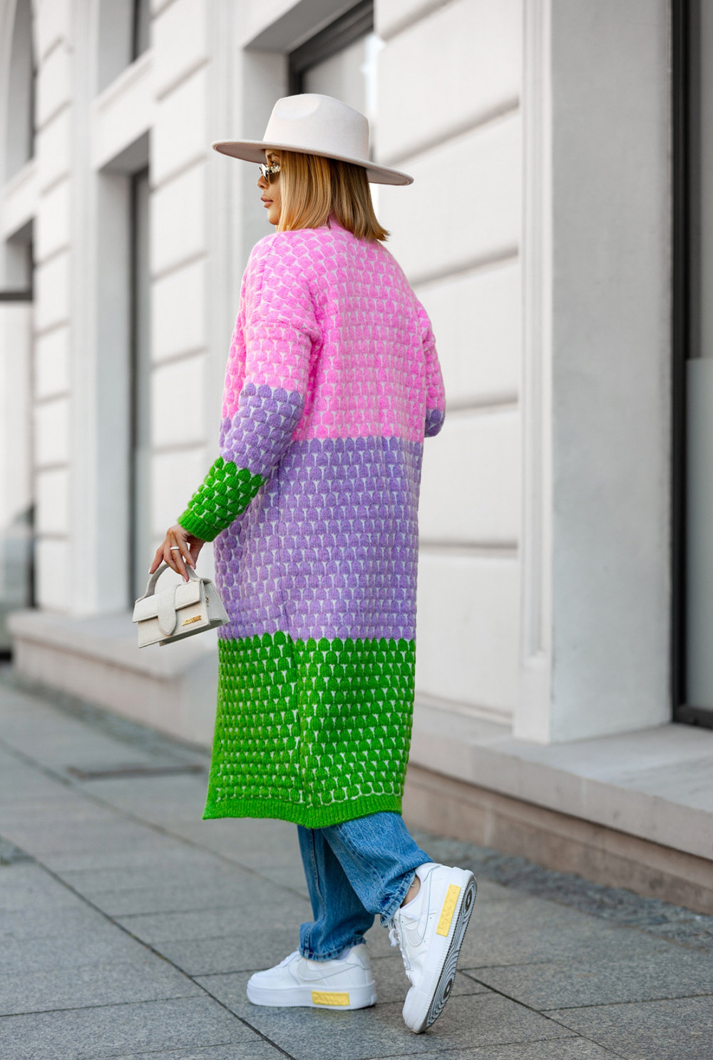 Długi kardigan z kieszeniami Becca Baby róż-lila-trawa
