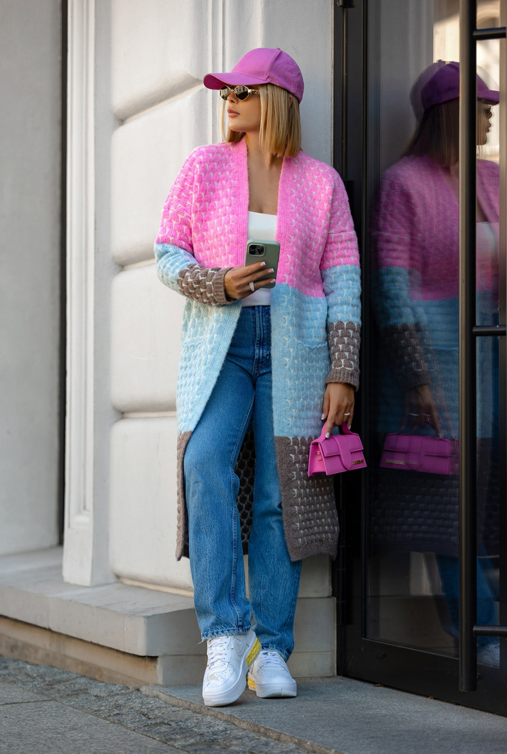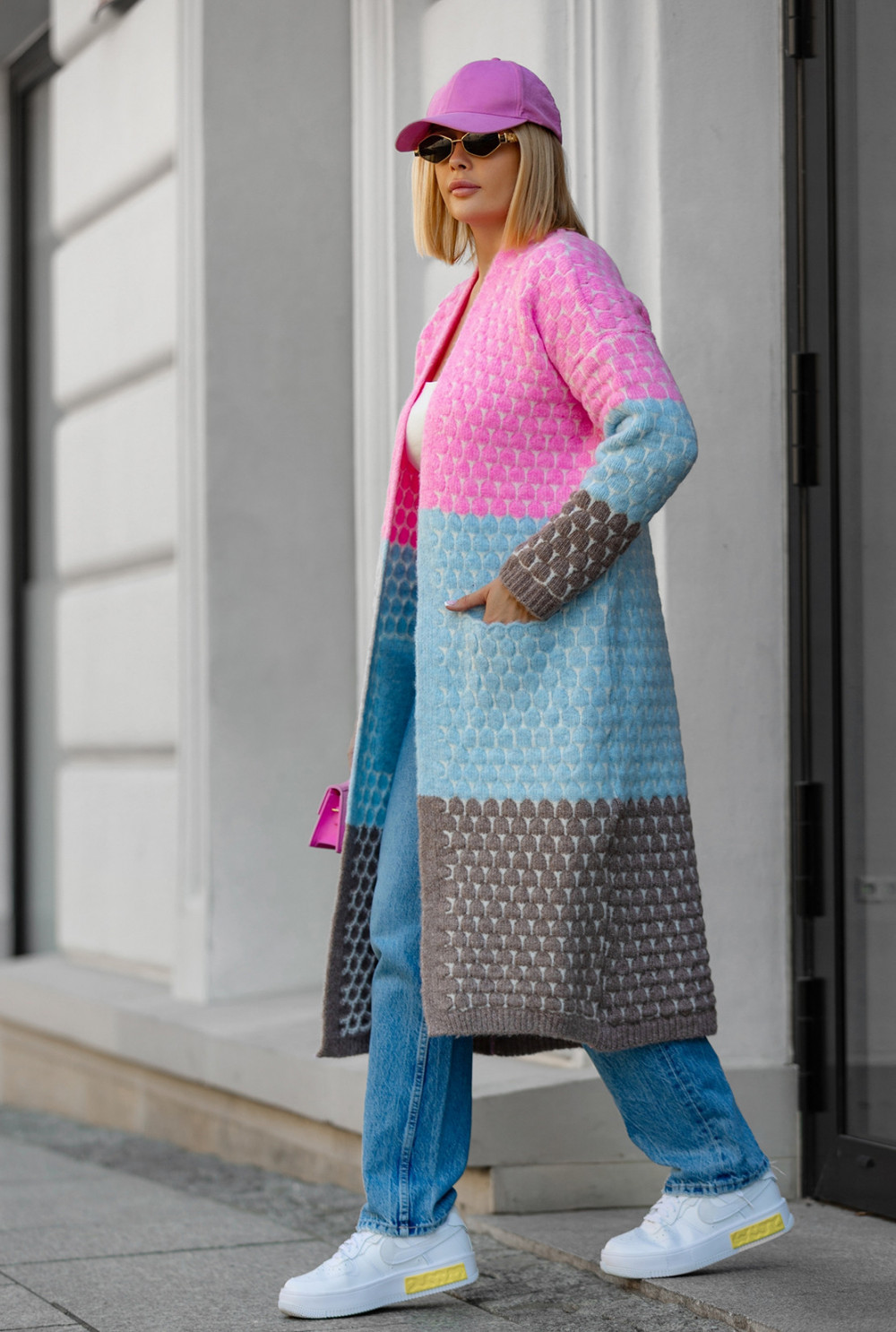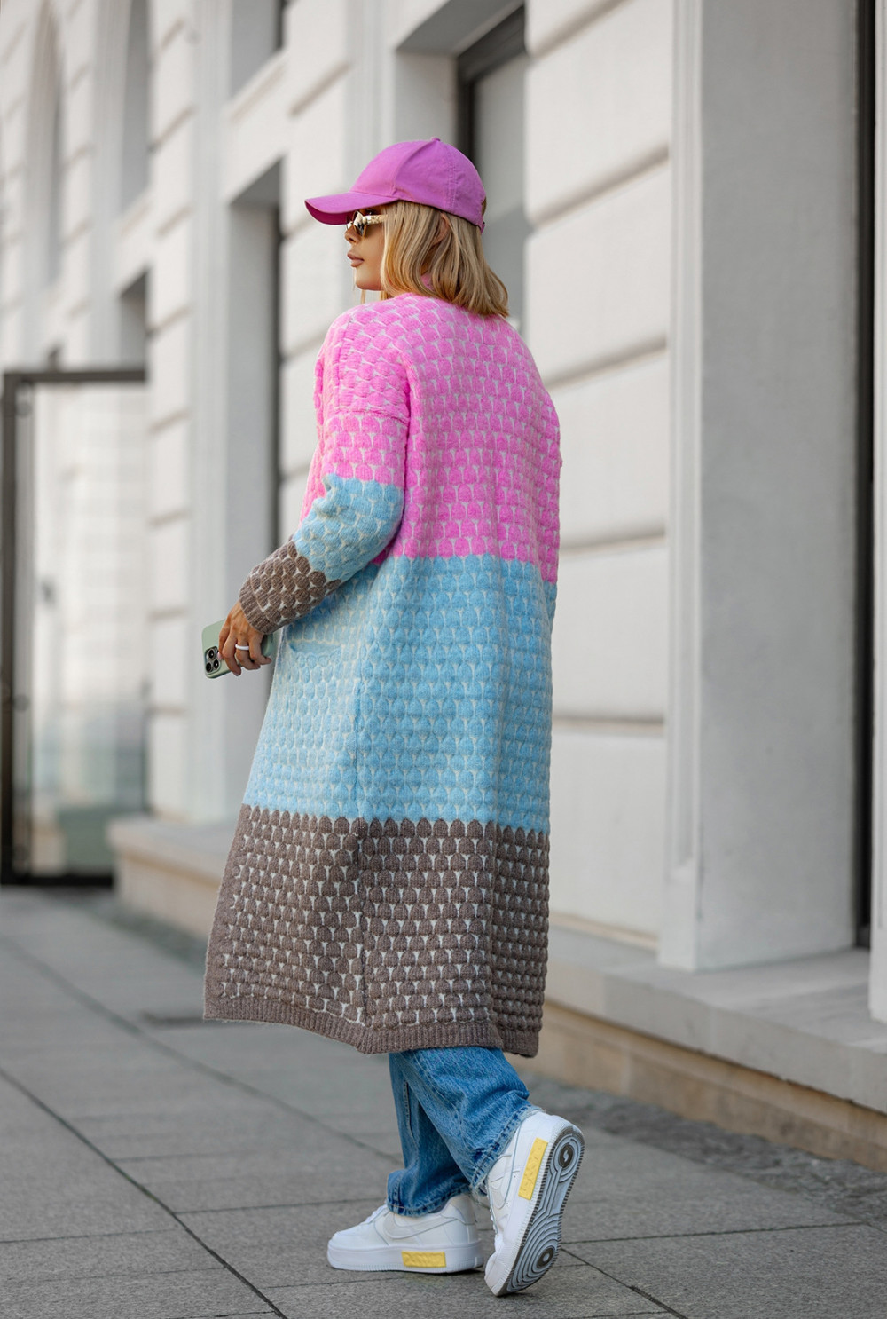 Długi kardigan z kieszeniami Becca Baby róż-błękit-kakao