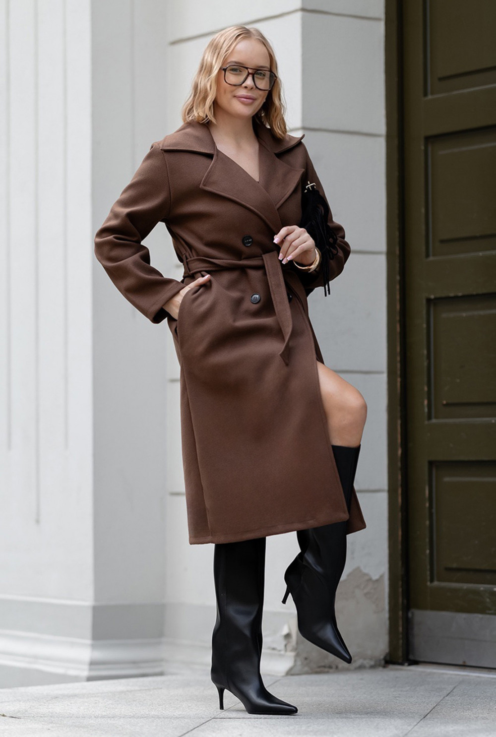 Długi płaszcz Frida Czekolada
