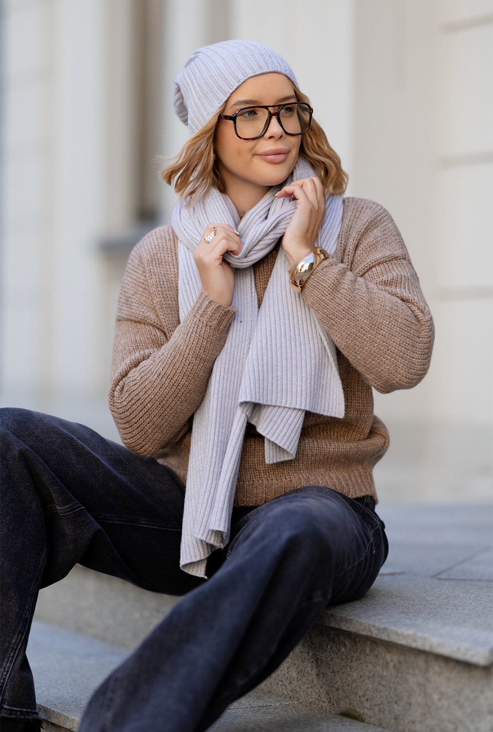 Komplet Elsa Czapka + Szal Szary
