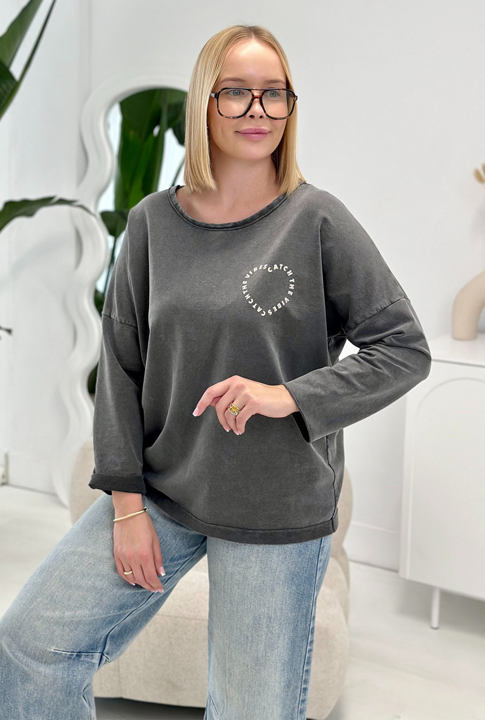 Bluzka z nadrukiem Vibes Ciemny Szary
