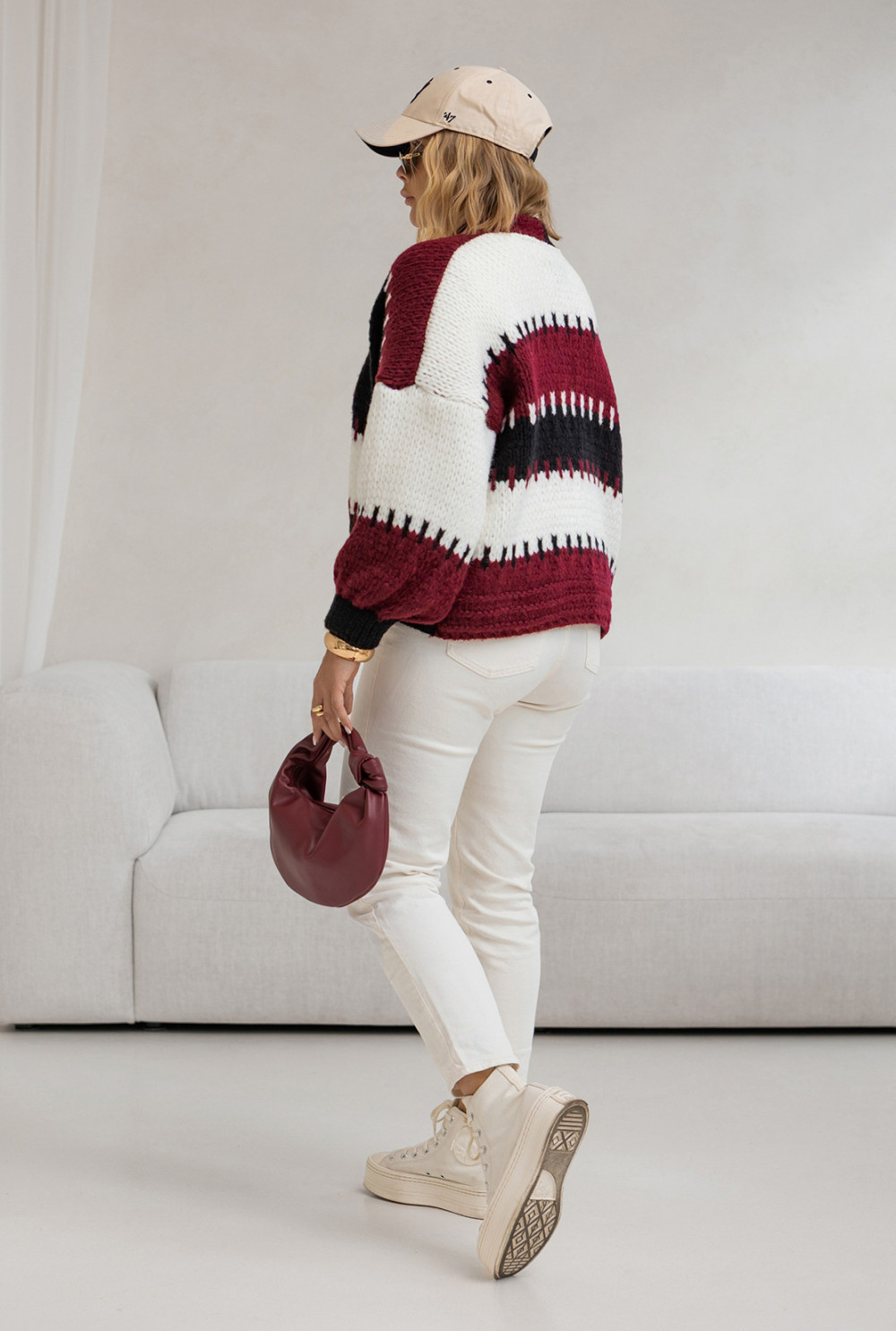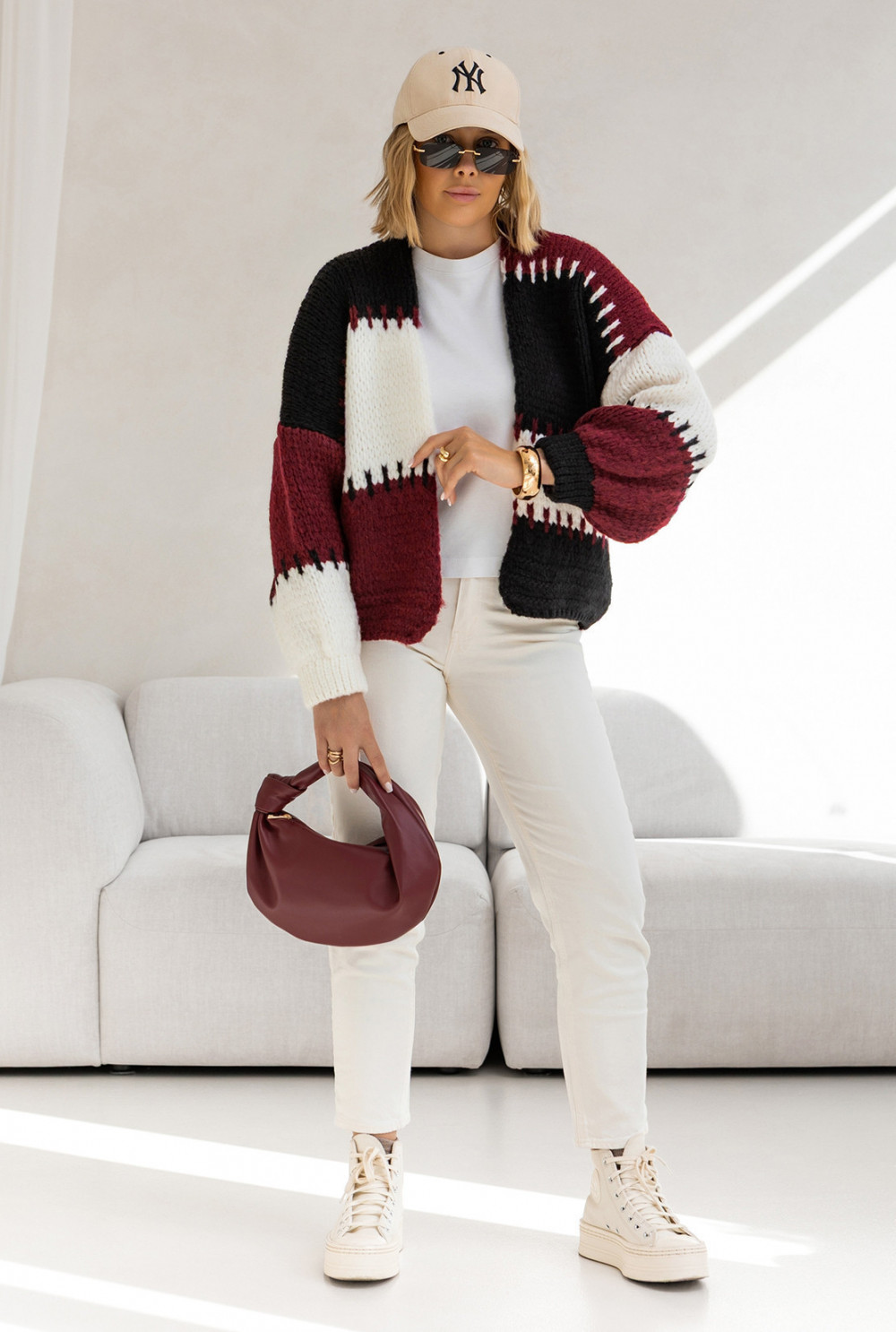 Krótki kardigan oversize Aurora Czarny-burgund-ecru